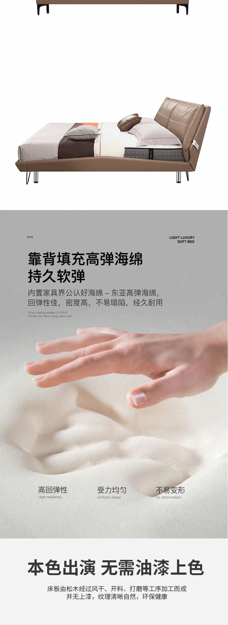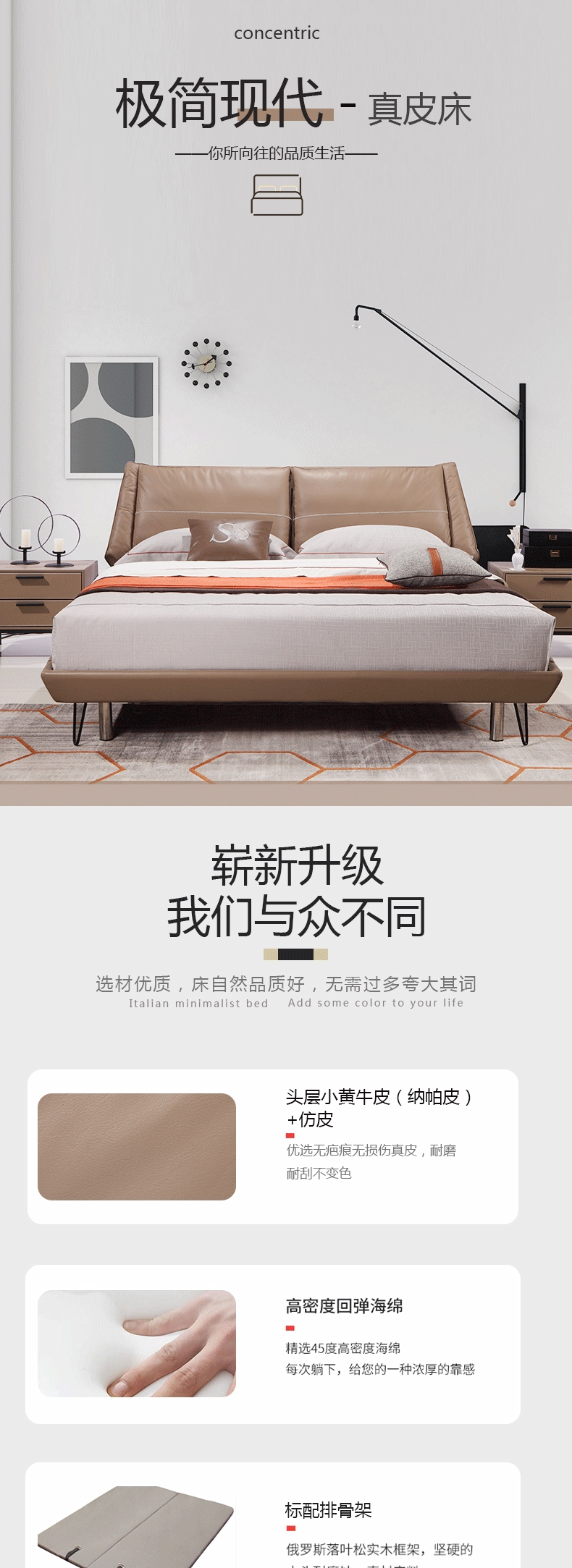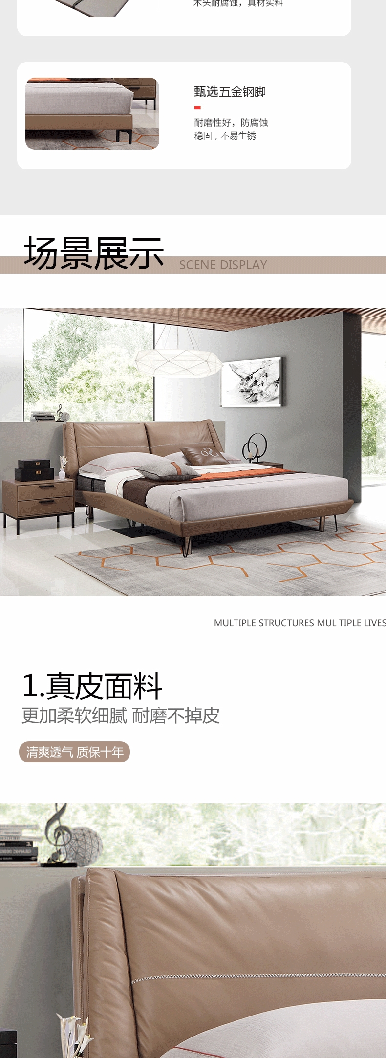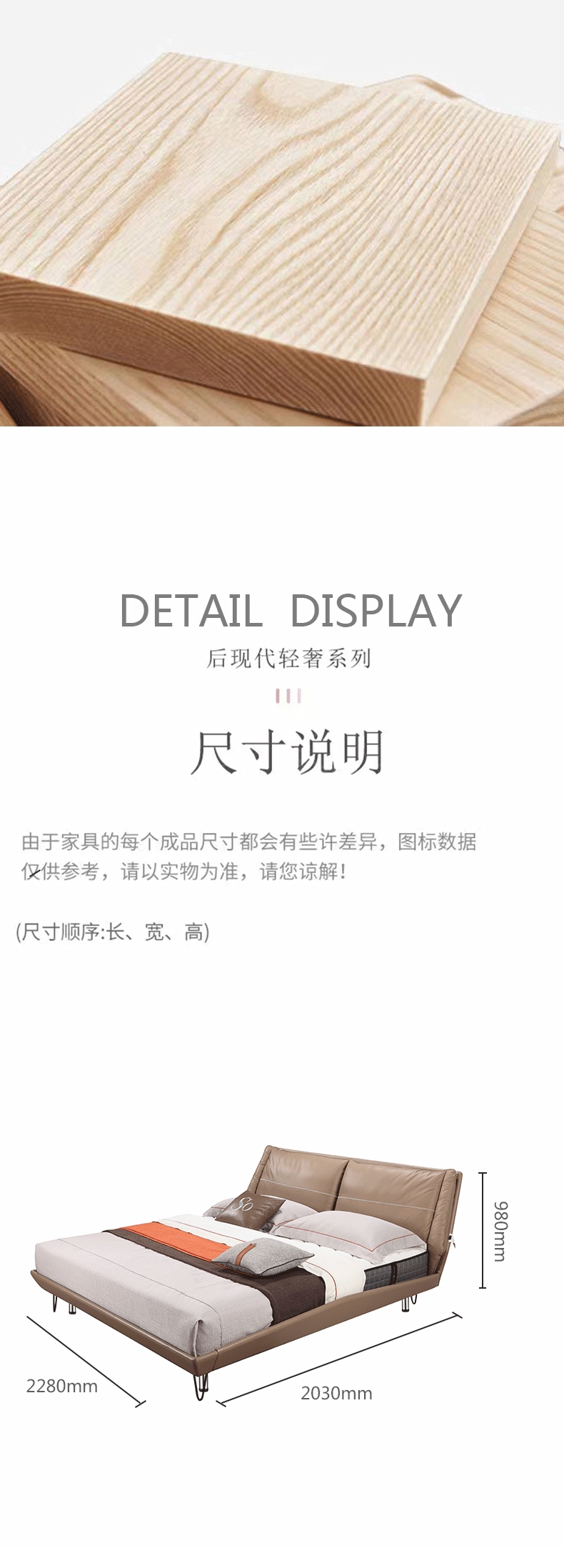 彩家居MF-140皮床1.9米大床木质软床轻奢皮床现代简约双人床主卧婚床意式