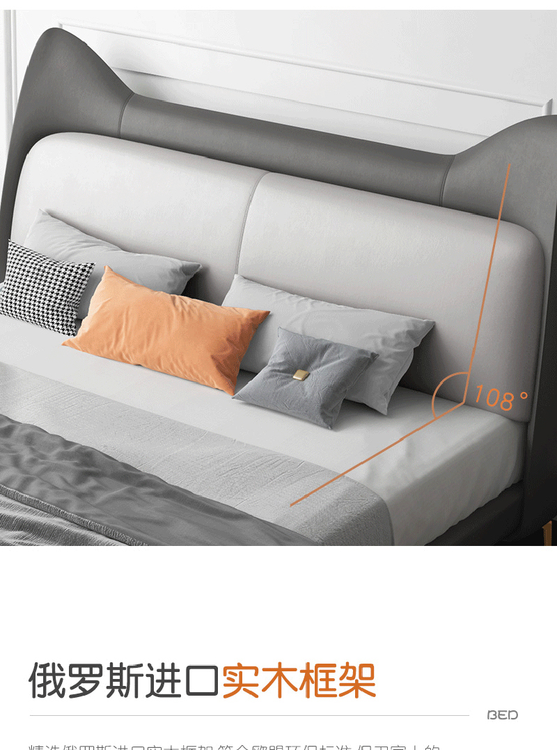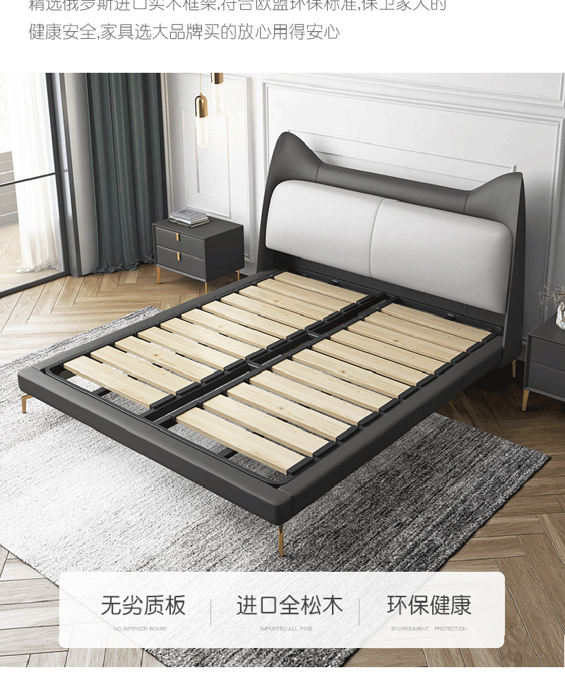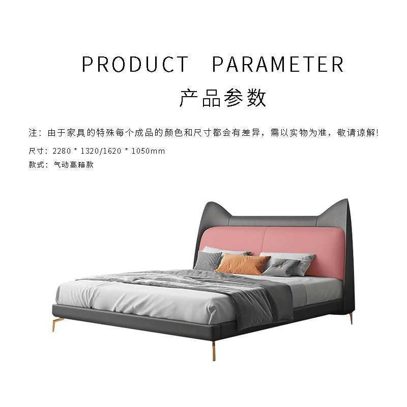 彩家居MYA-猫耳朵床1.2/1.5m气动高箱款 (配实木排骨架条)儿童床