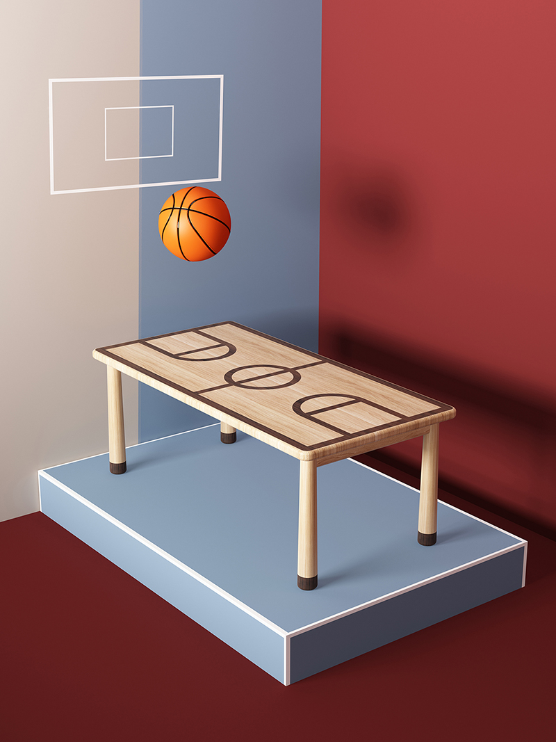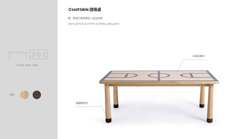 彩家居球球男孩BAL-TE1球场桌儿童专用创意新颖桌子北美白蜡木美国胡桃木