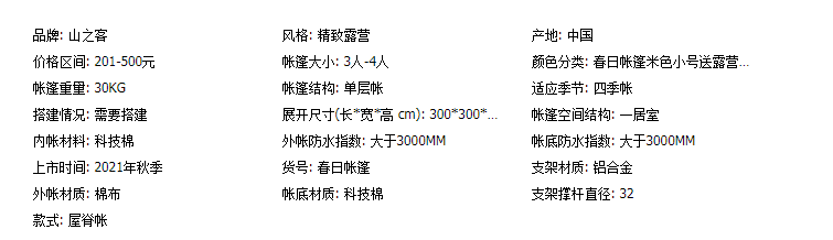 山之客春日帐篷户外露营多人小屋棉布豪华营地大型防雨加厚春帐