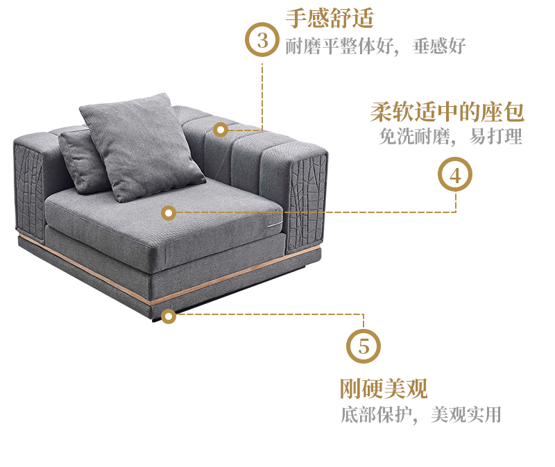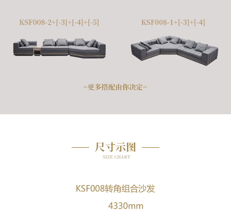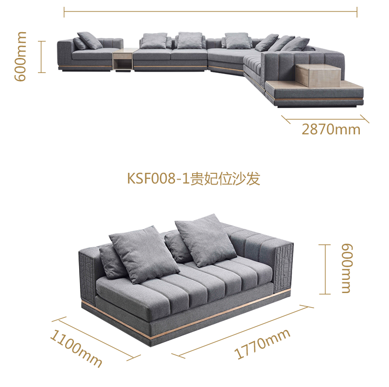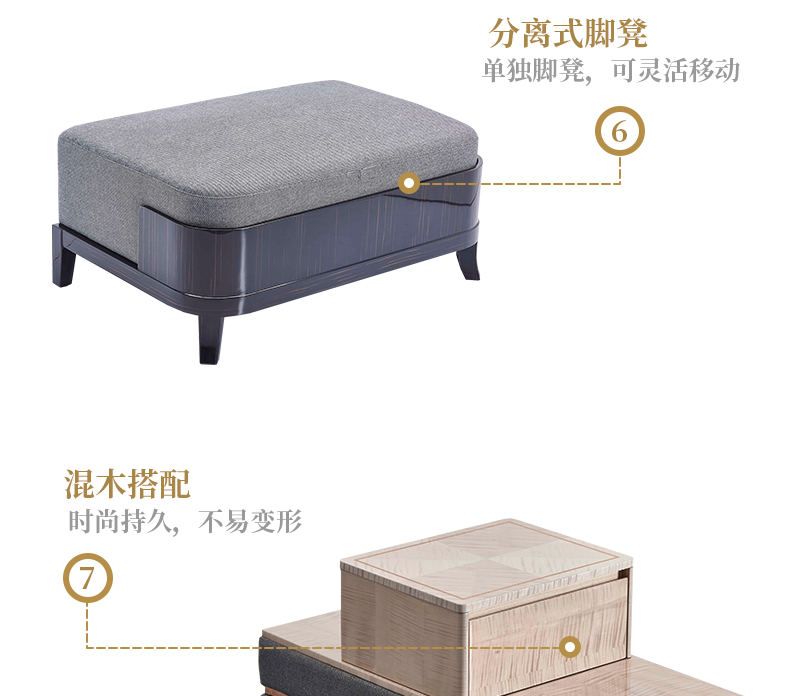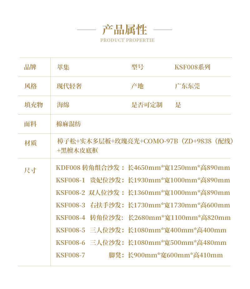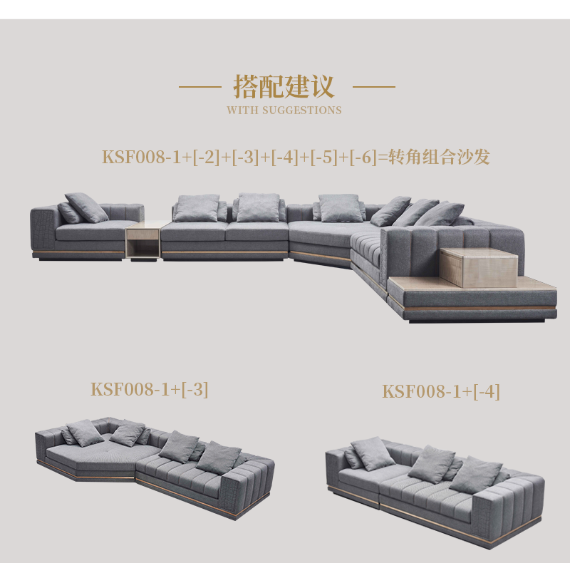 萃集KSF008系列组合沙发单人双人三人四人贵妃椅沙发椅脚蹬现代轻奢风格实木