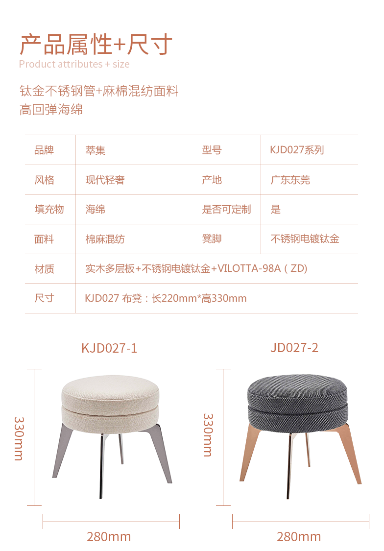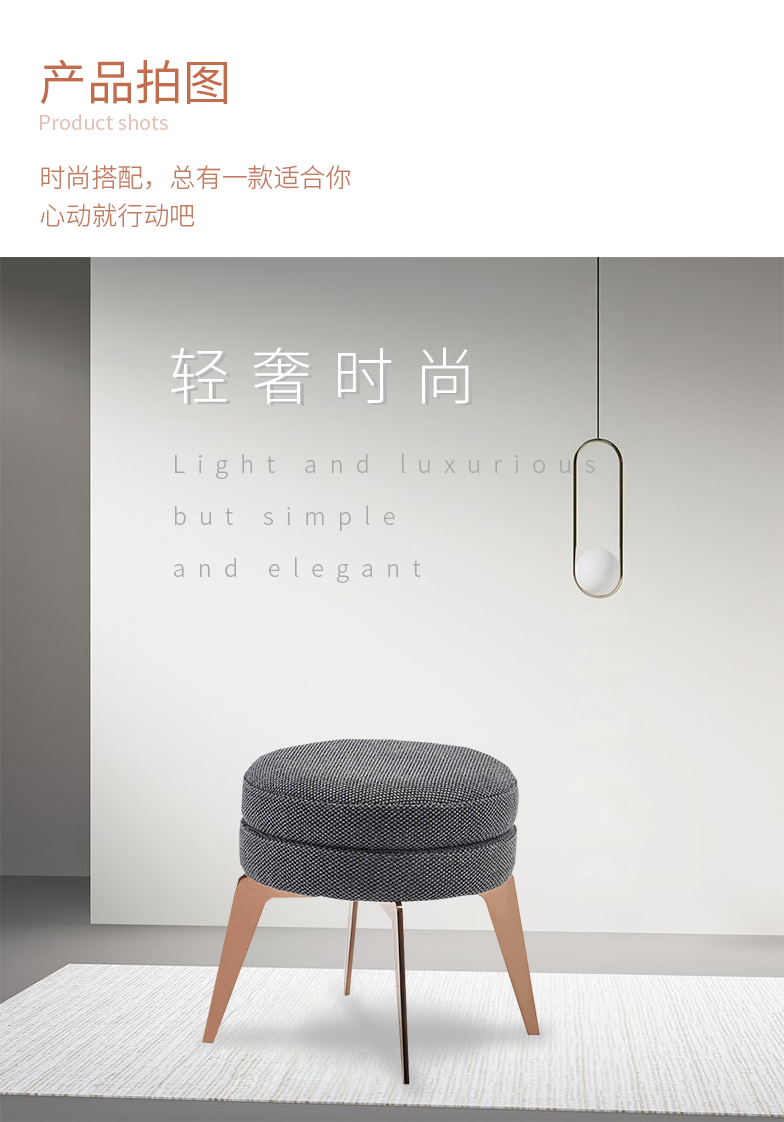 萃集KJD027系列时尚小布凳沙发搭配单人布凳现代轻奢风格