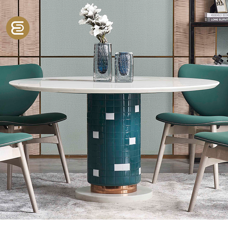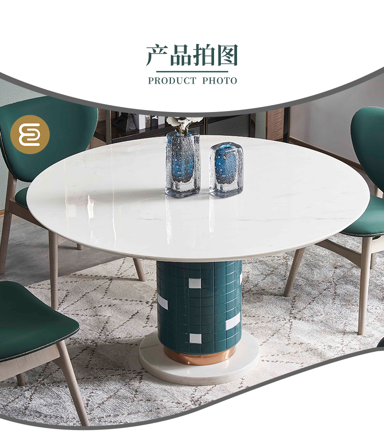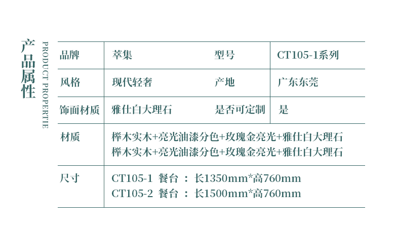 萃集CT105雅仕白大理石餐桌餐厅餐台饭桌现代轻奢风格