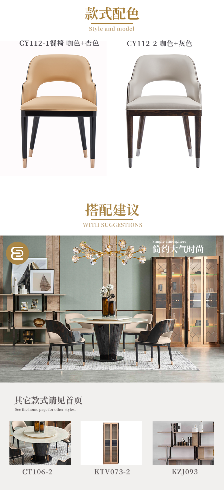 萃集CY112实木餐椅双色可选椅餐厅椅现代轻奢风格实木椅