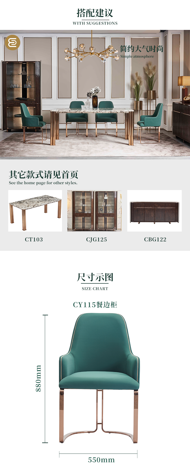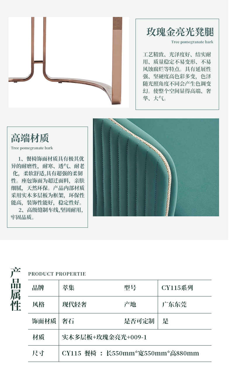 萃集CY115简绿色餐椅餐厅椅子现代轻奢风格椅子简约大气时尚餐椅