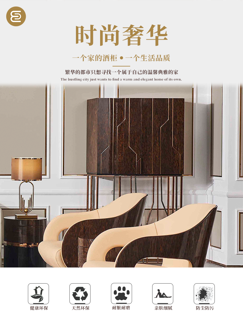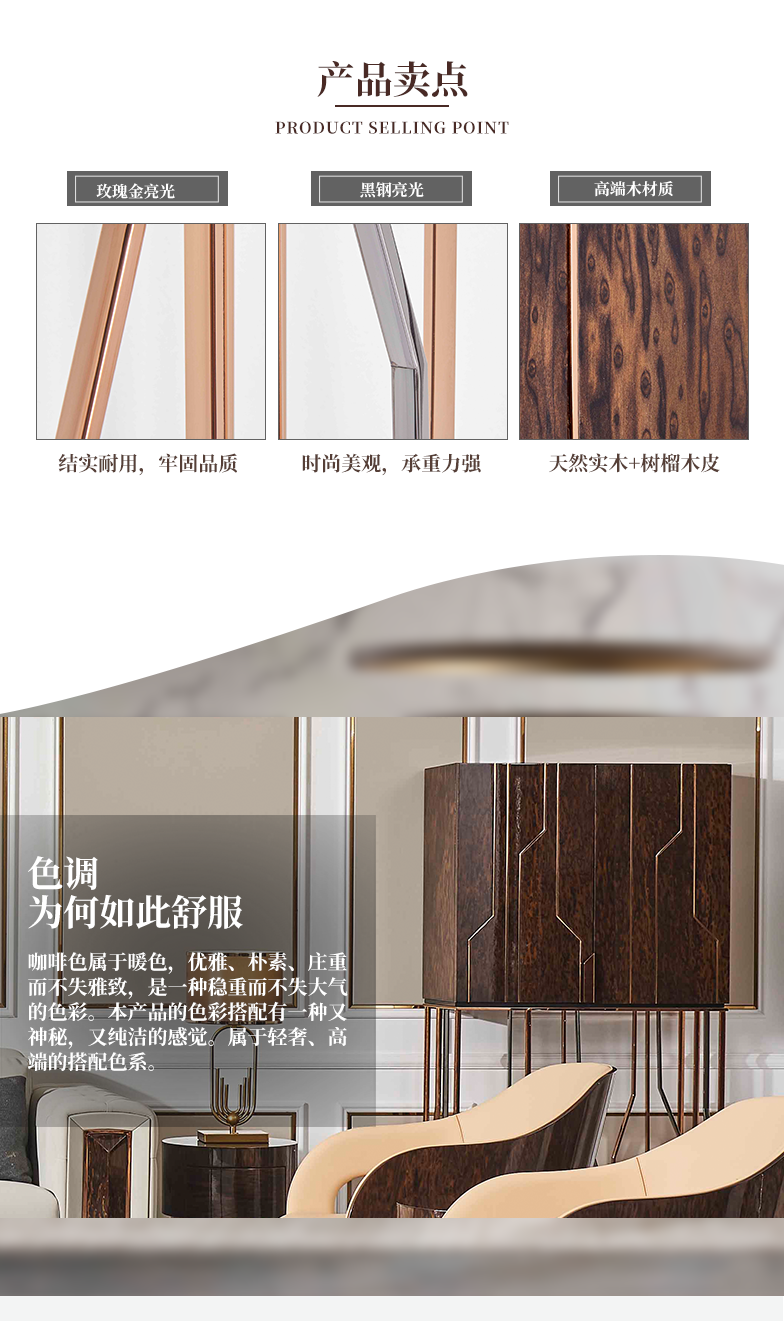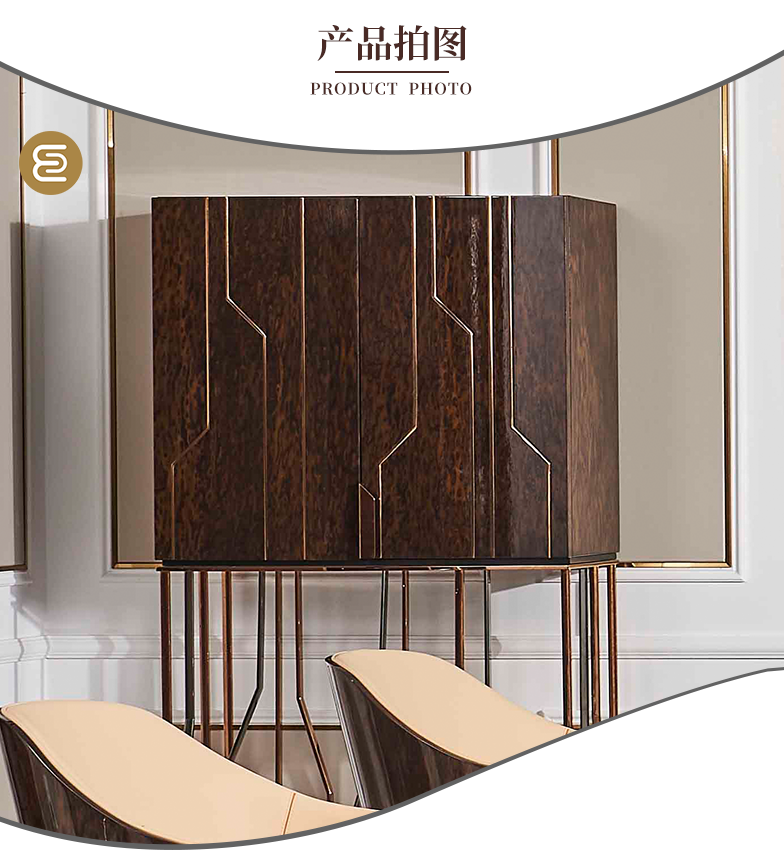 萃集CZG124咖啡色装饰柜现代轻奢风格柜子木柜时尚简约大气
