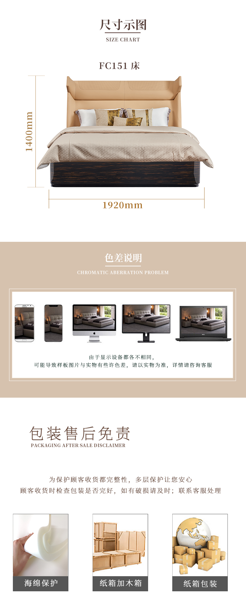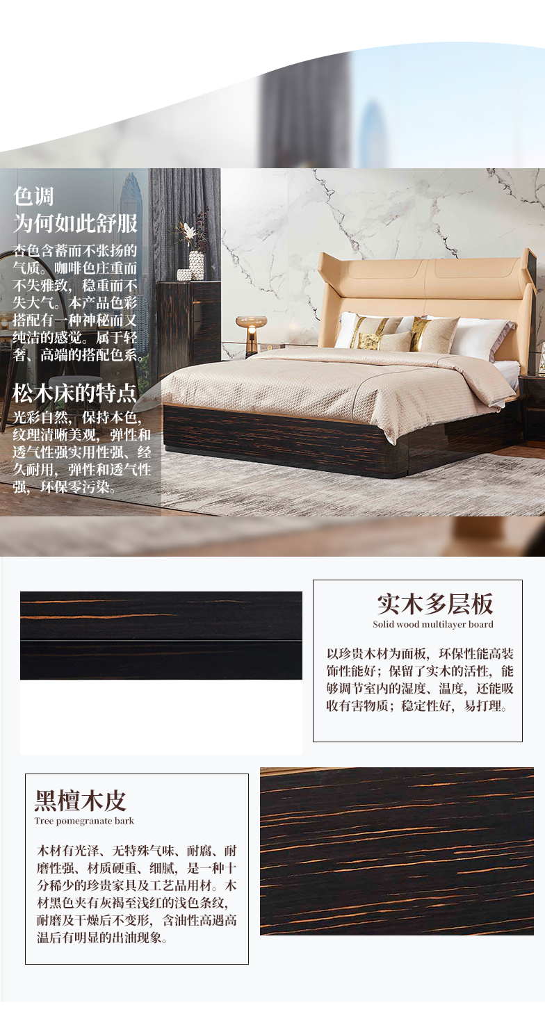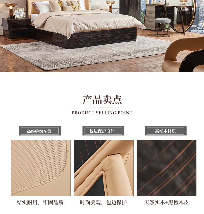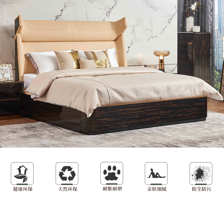 萃集FC151咖啡米色双人床实木床现代轻奢风格双人床