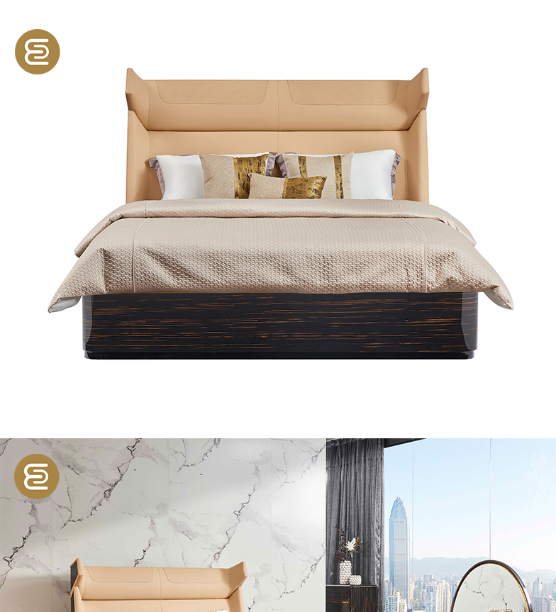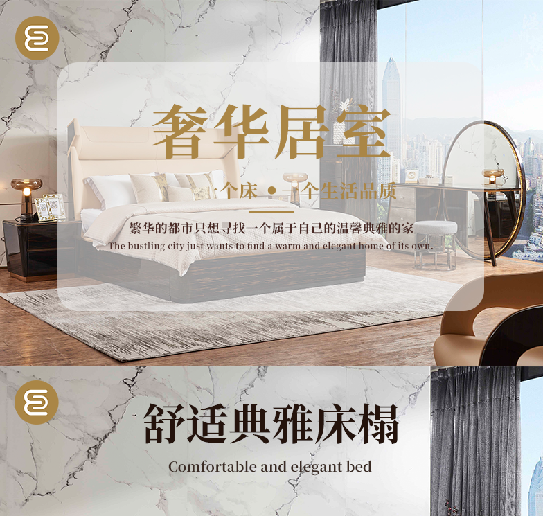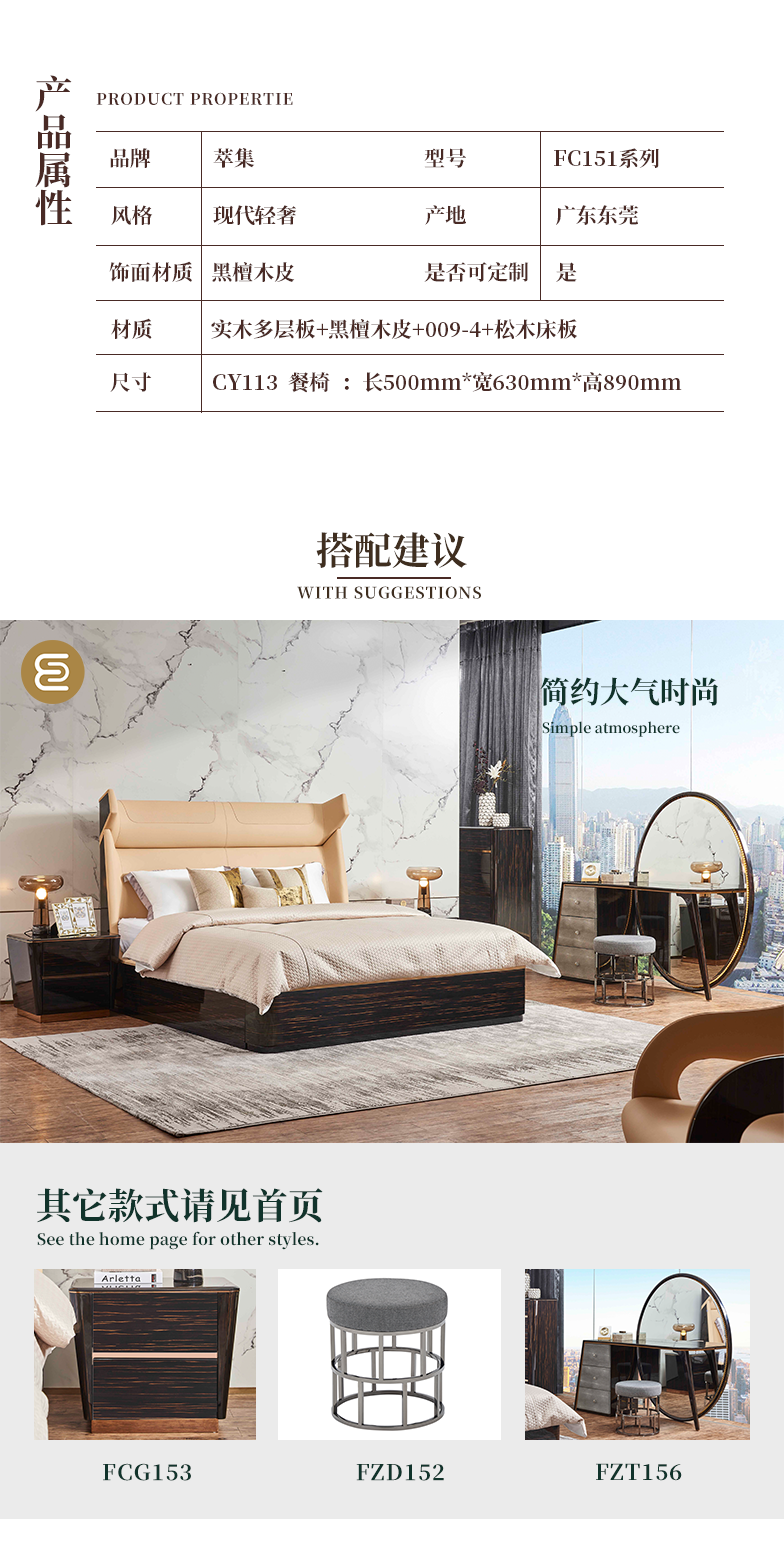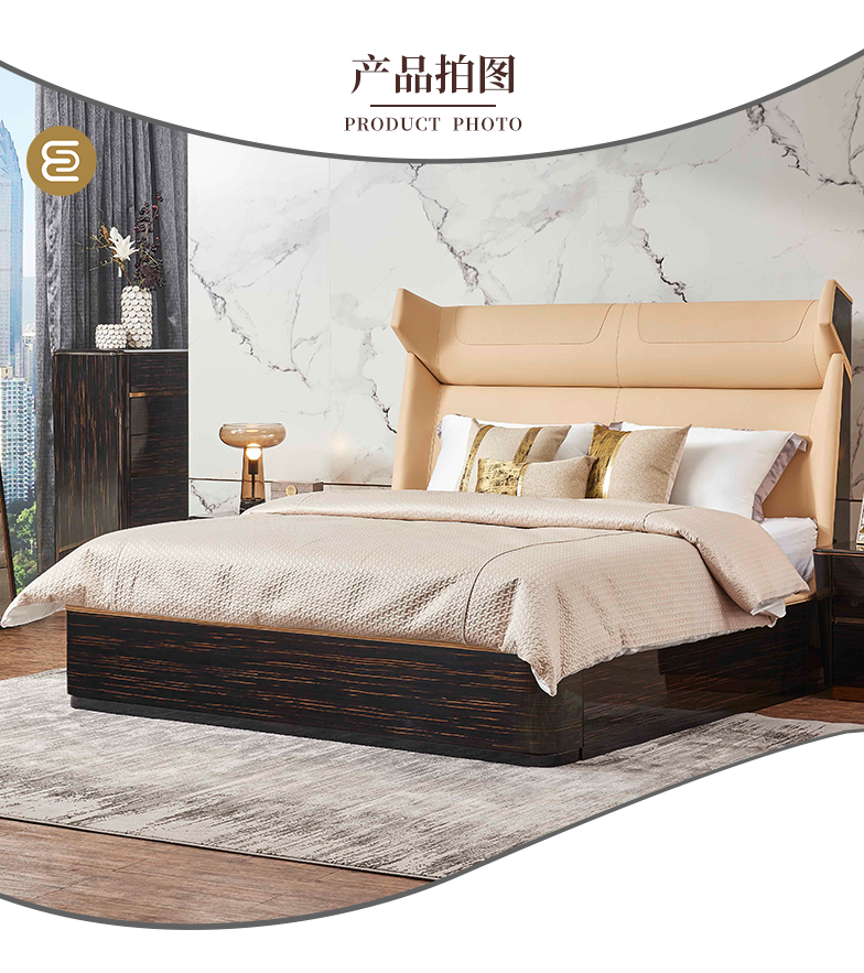 萃集FC151咖啡米色双人床实木床现代轻奢风格双人床