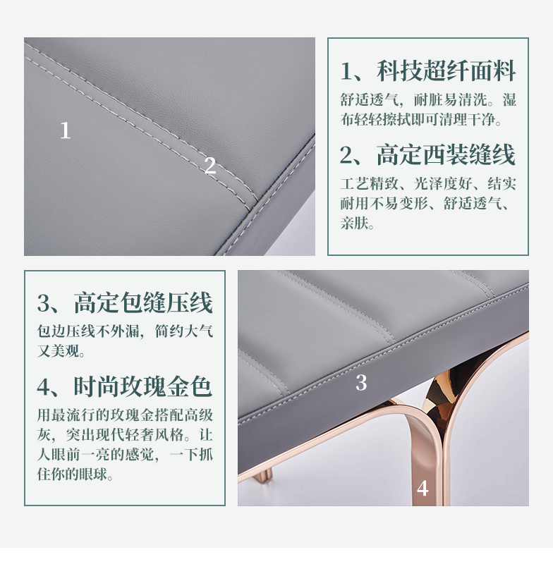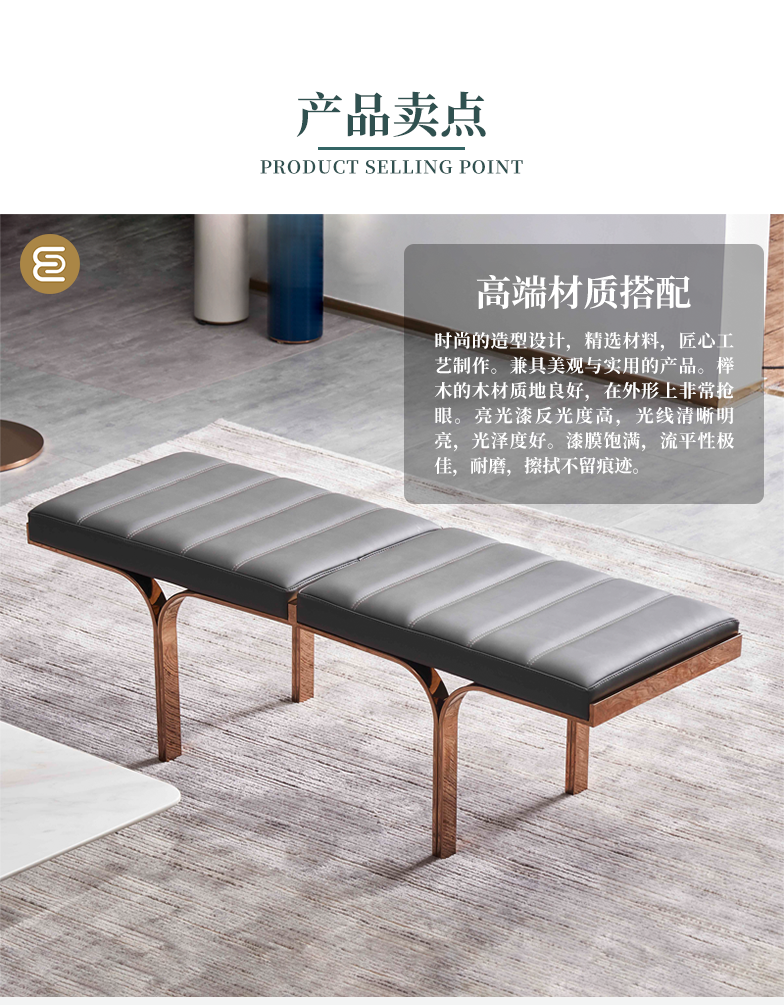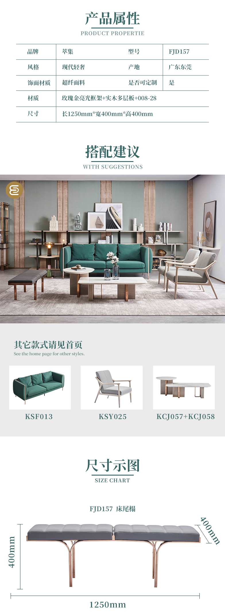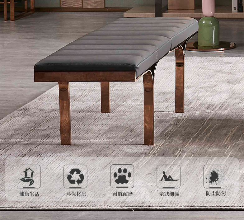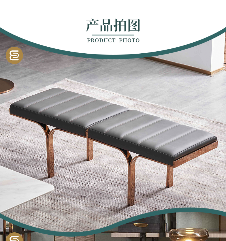 萃集FJD157床尾榻灰色玫瑰金床尾凳现代轻奢风格躺凳
