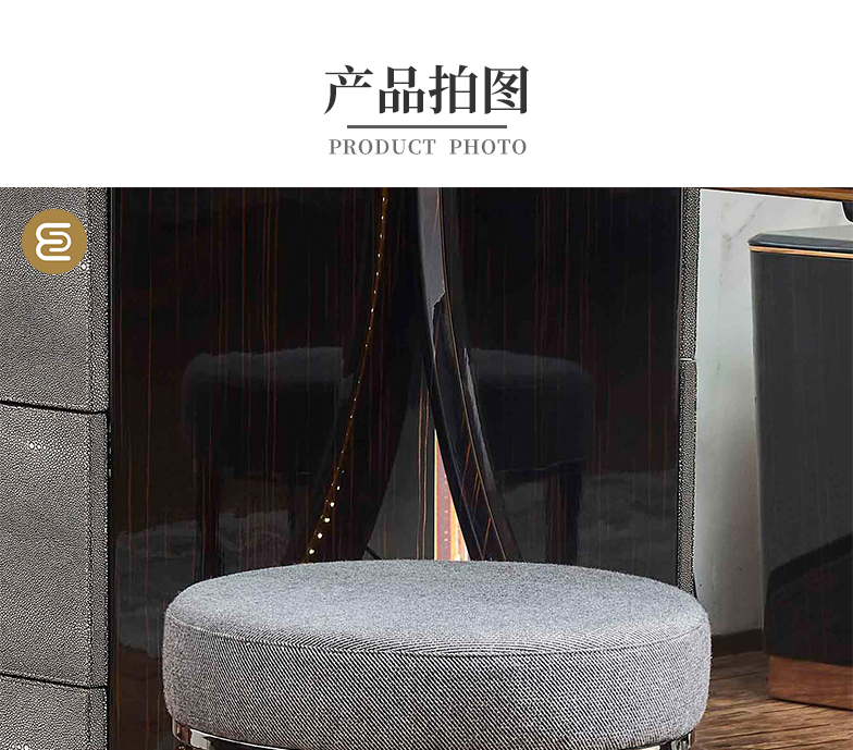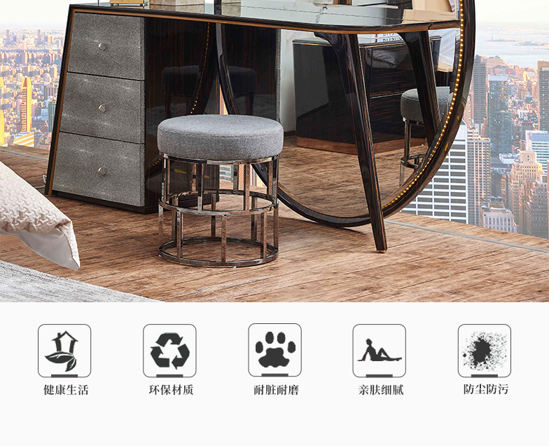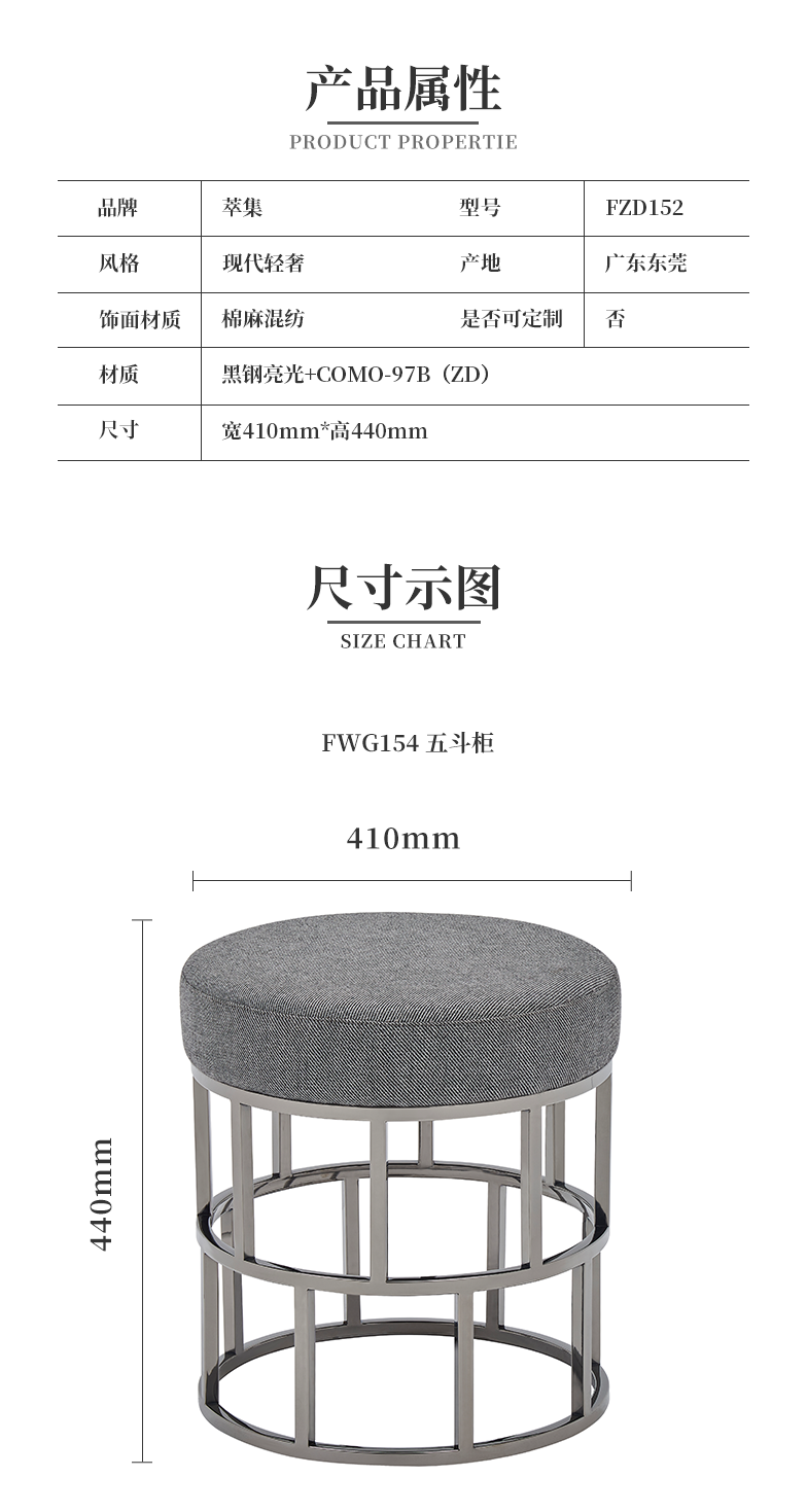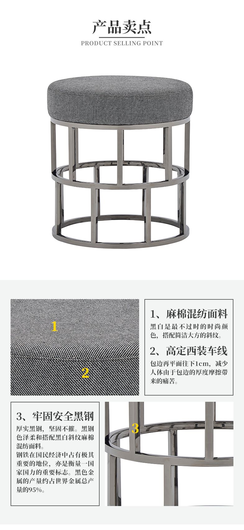 萃集FZD152妆凳灰色黑钢凳子化妆台凳现代轻奢风格小凳子