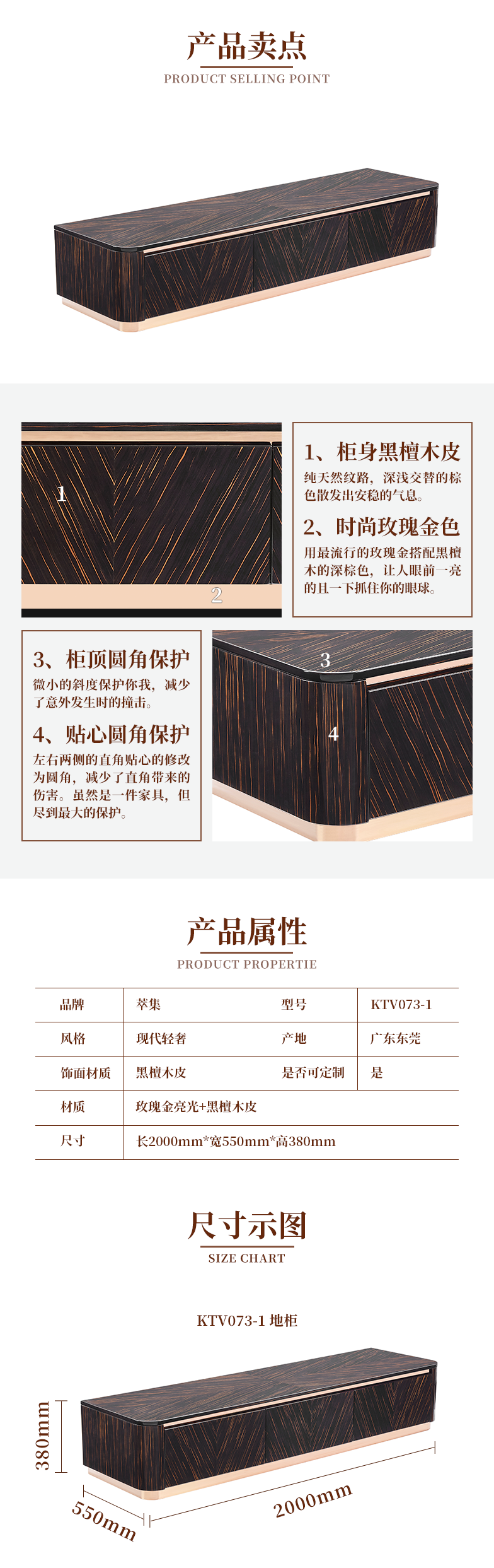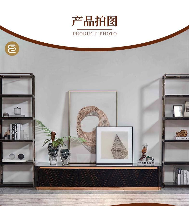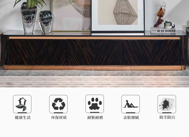萃集KTV073-1地柜黑金色电视柜实木柜子现代轻奢风格木柜