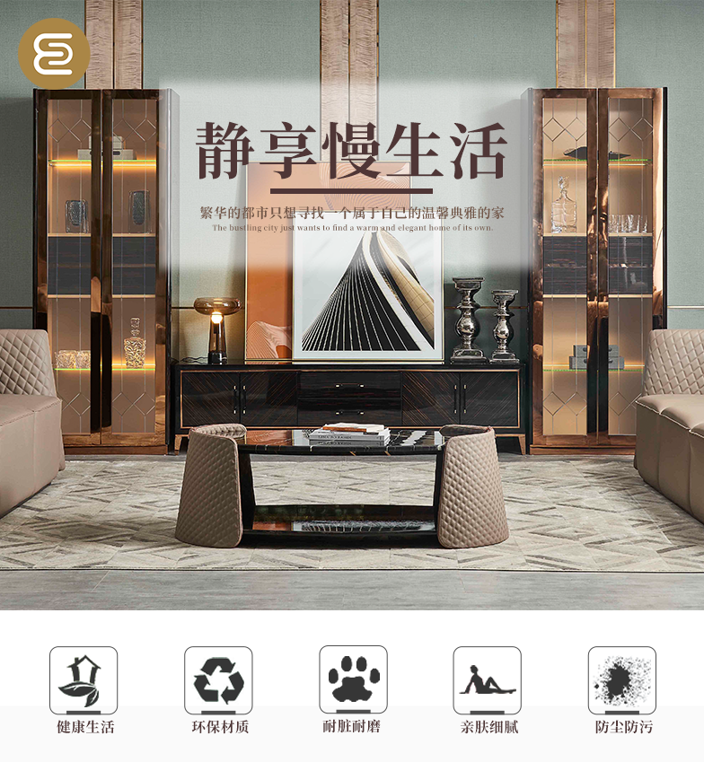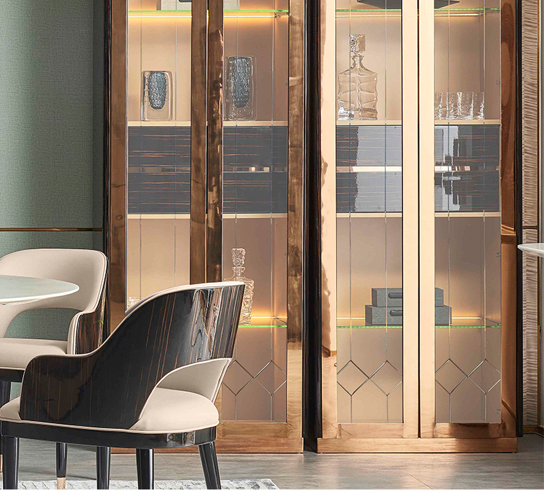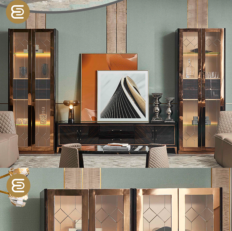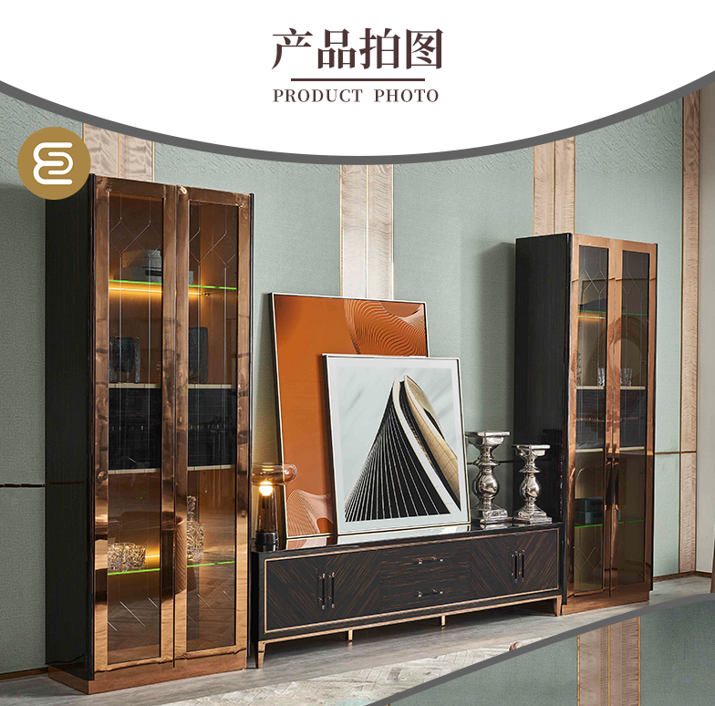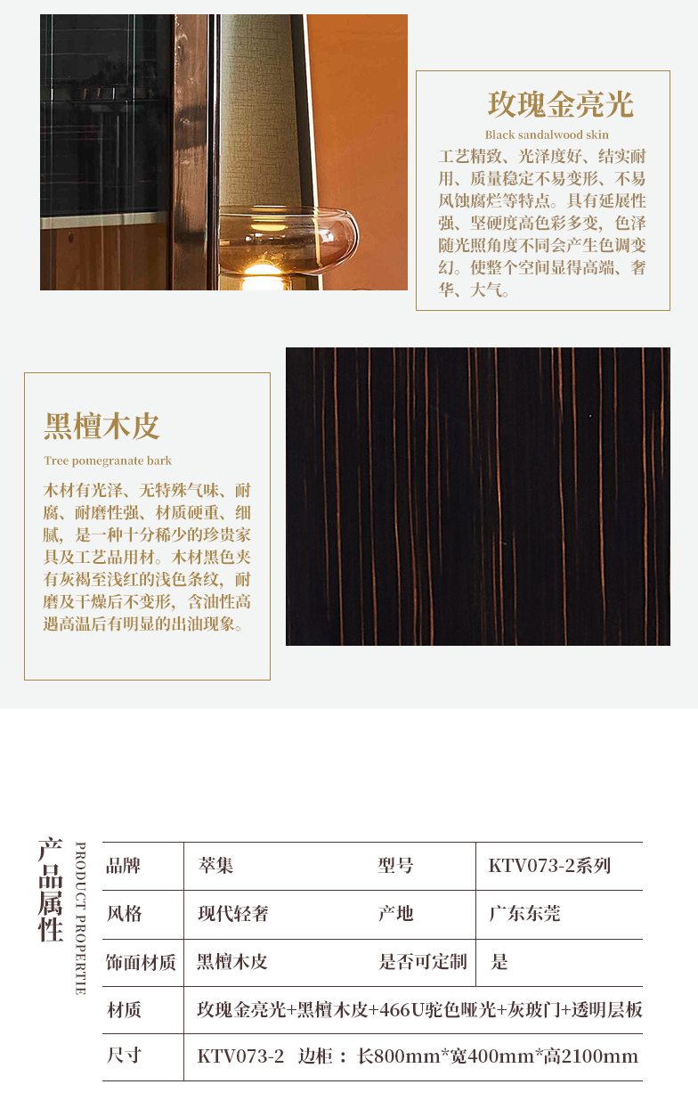 萃集KTV073-2边柜黑金色置物柜玻璃门柜子现代轻奢风格透明门