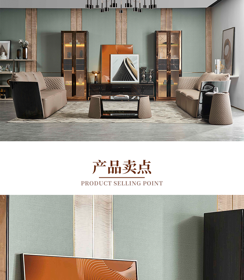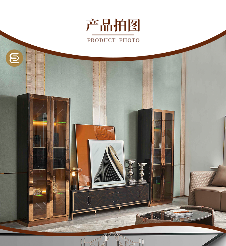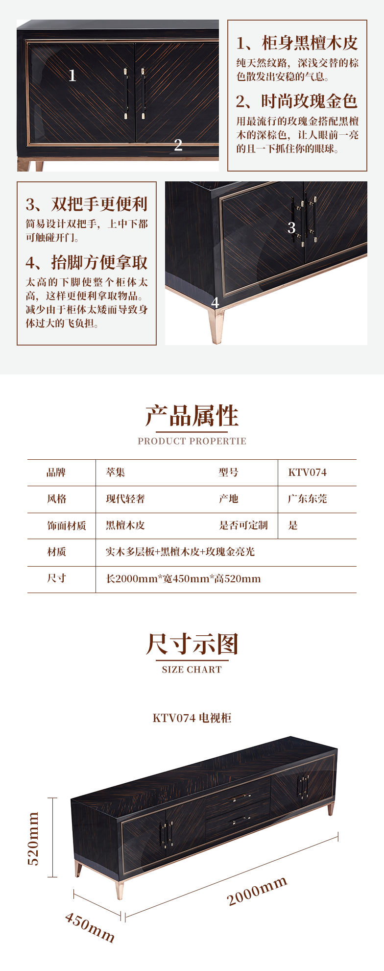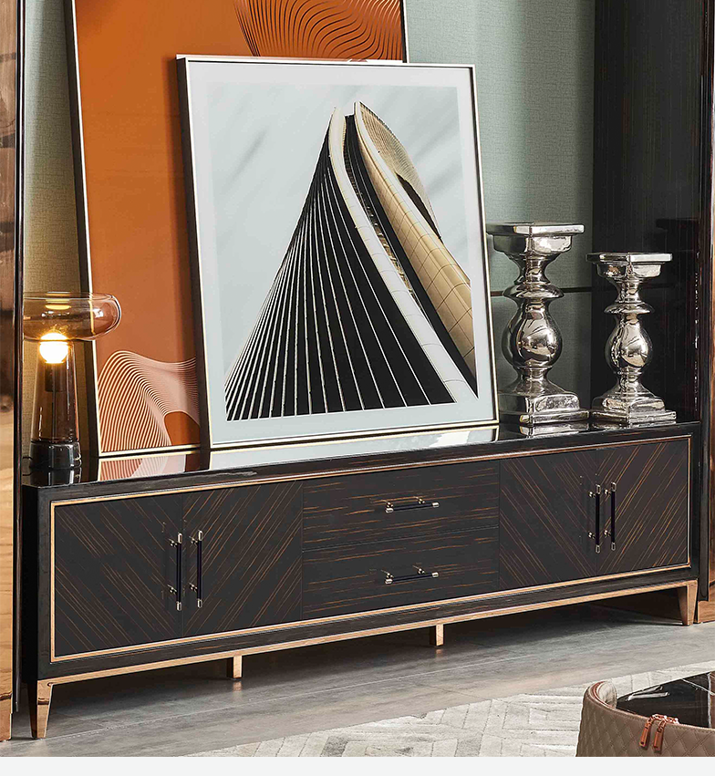 萃集KTV074电视柜黑金色木柜地柜实木柜子现代轻奢风格