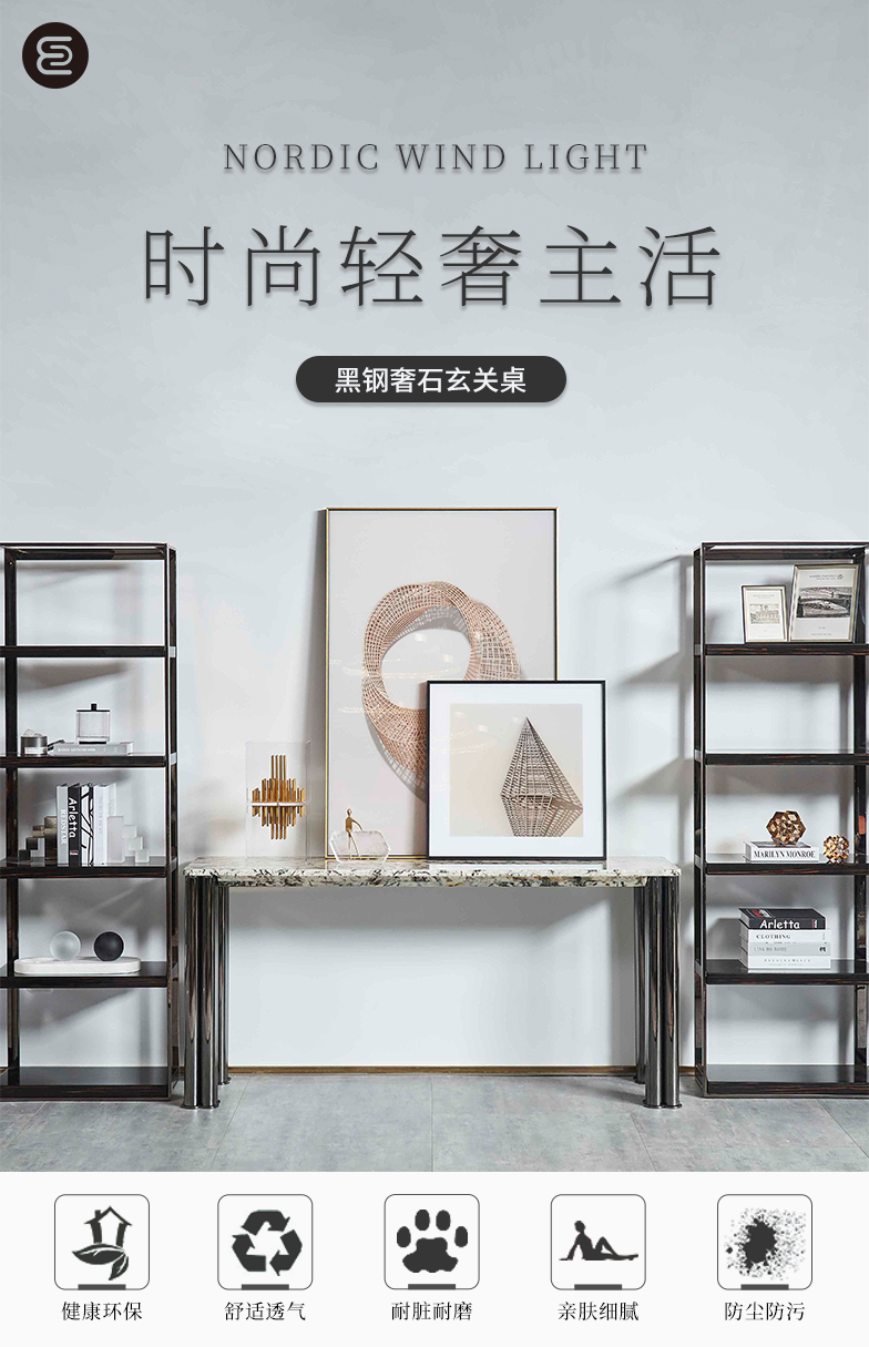 萃集KXG082玄关桌黑钢色桌子置物桌现代轻奢风格