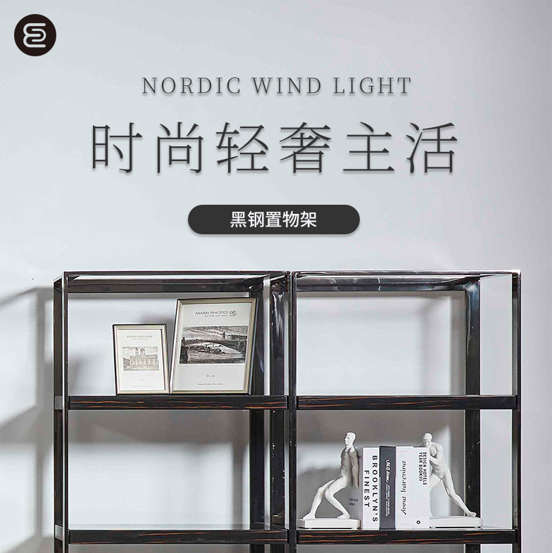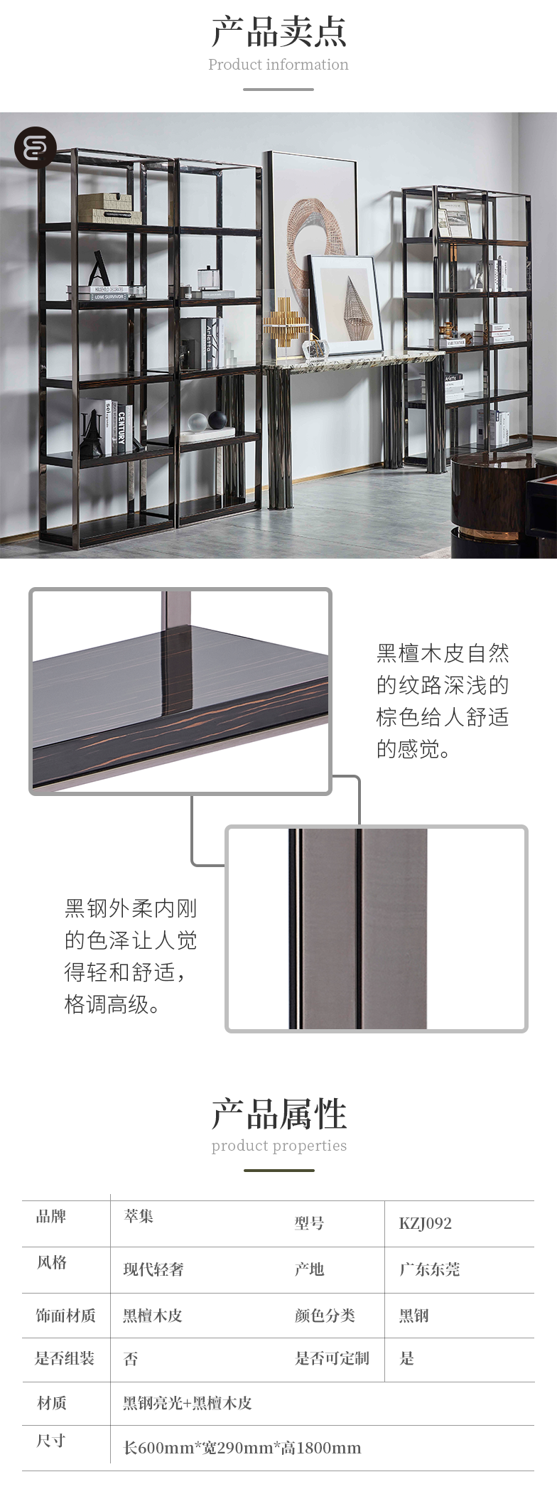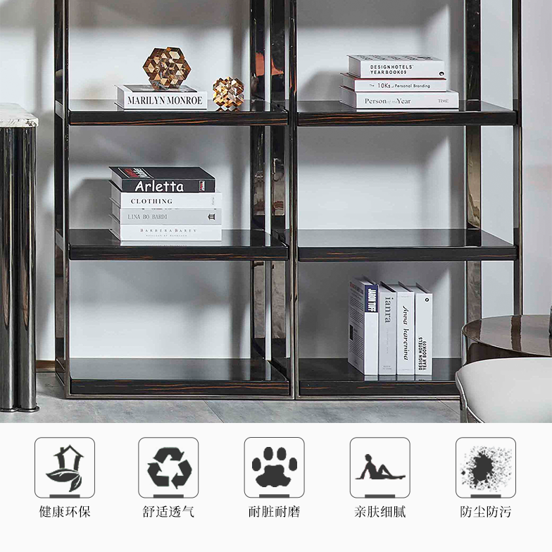 萃集KZJ092装饰架黑钢书架置物架架子实木现代轻奢风格