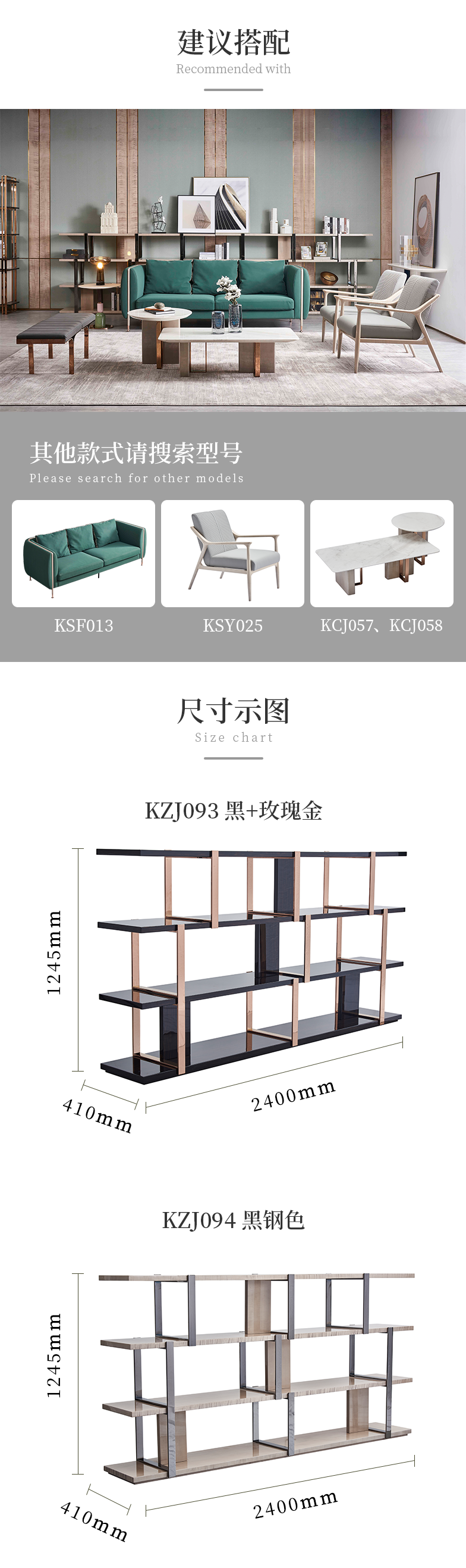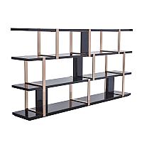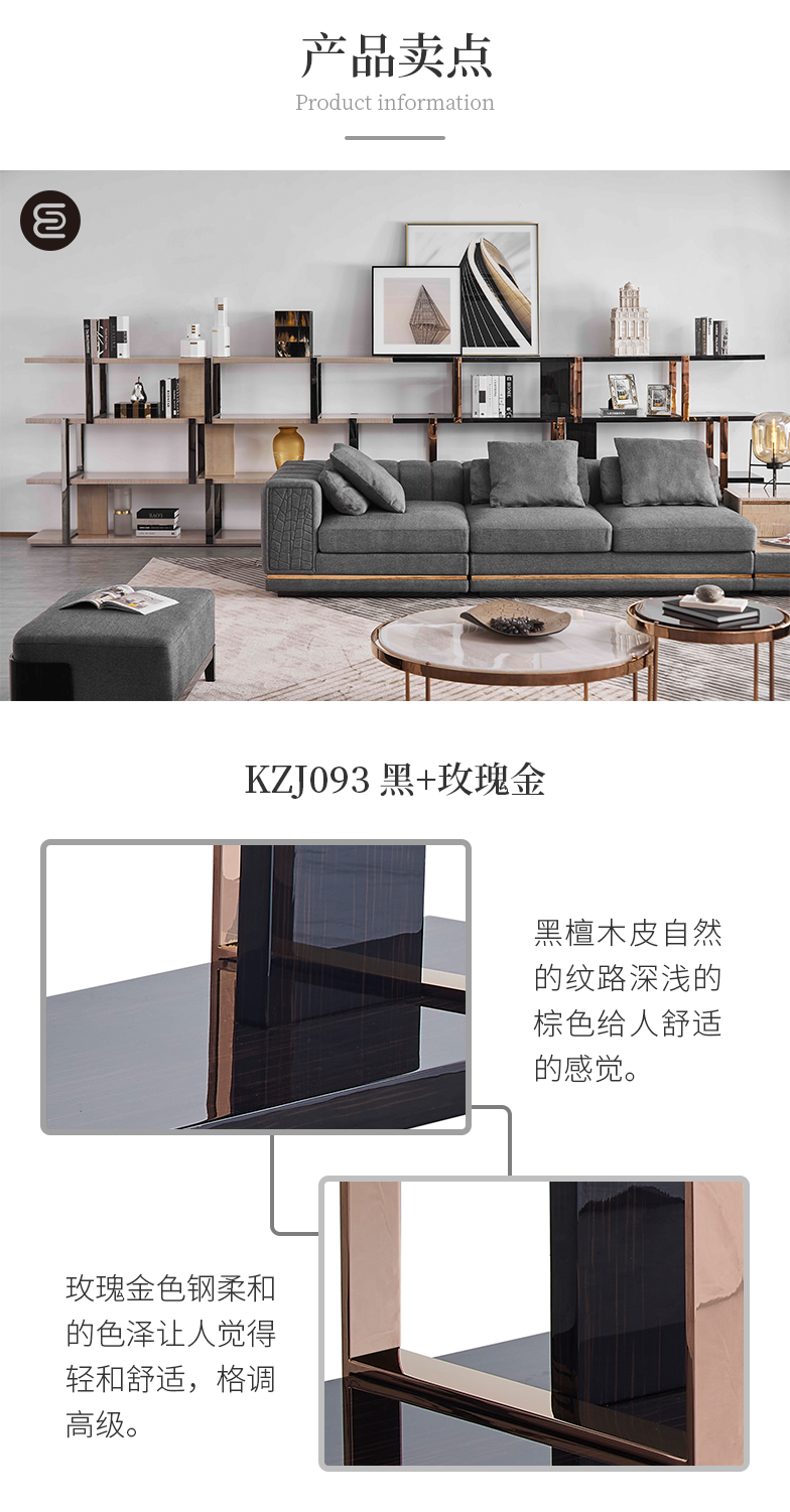 萃集KZJ093装饰架黑玫瑰金KZJ094置物架黑钢书架实木架子现代轻奢风格