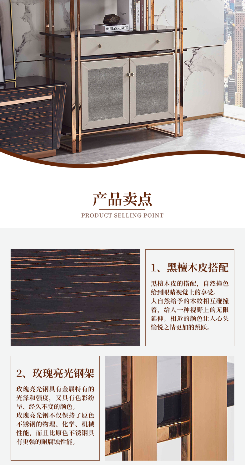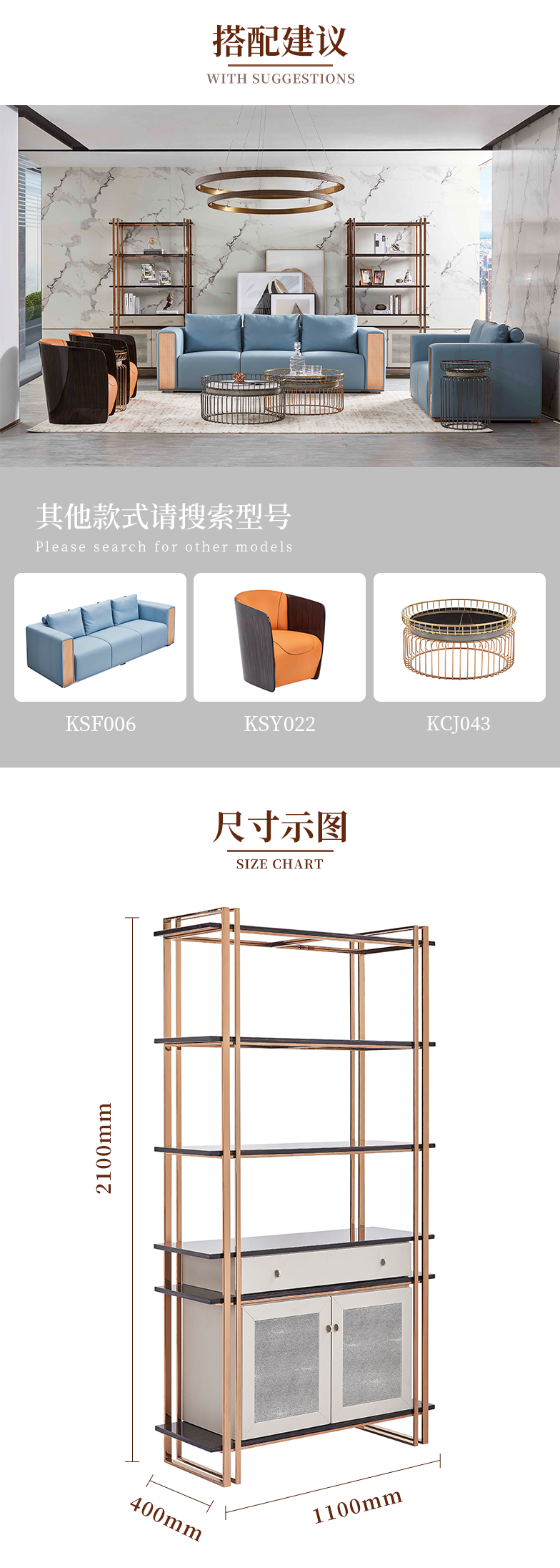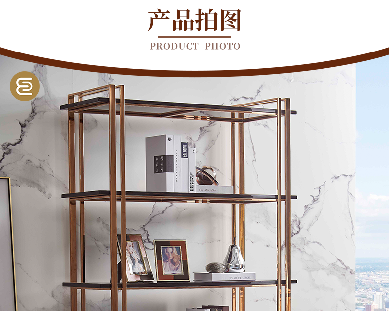 萃集SJ141装饰架玫瑰金+米色书架置物架置酒架现代轻奢风格架子