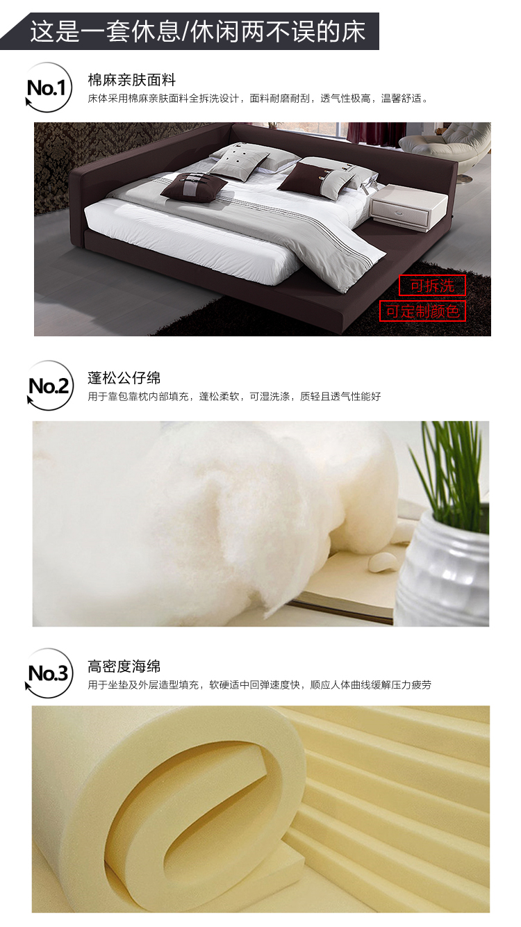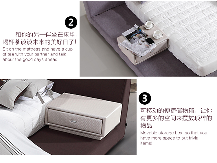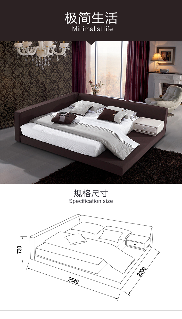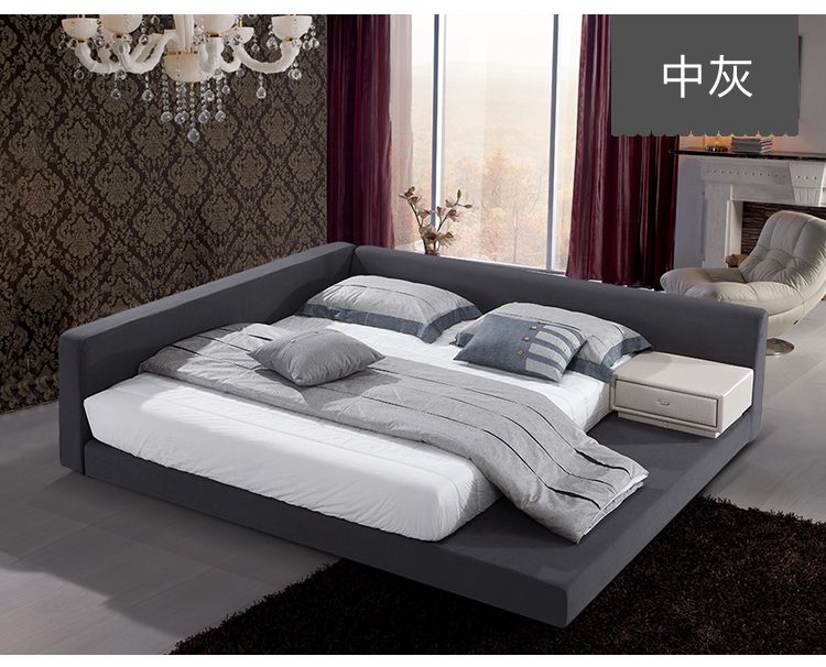 彩家居MF026现代简约轻奢婚床2.2米榻榻米床多功能双人主卧大床极简大气床
