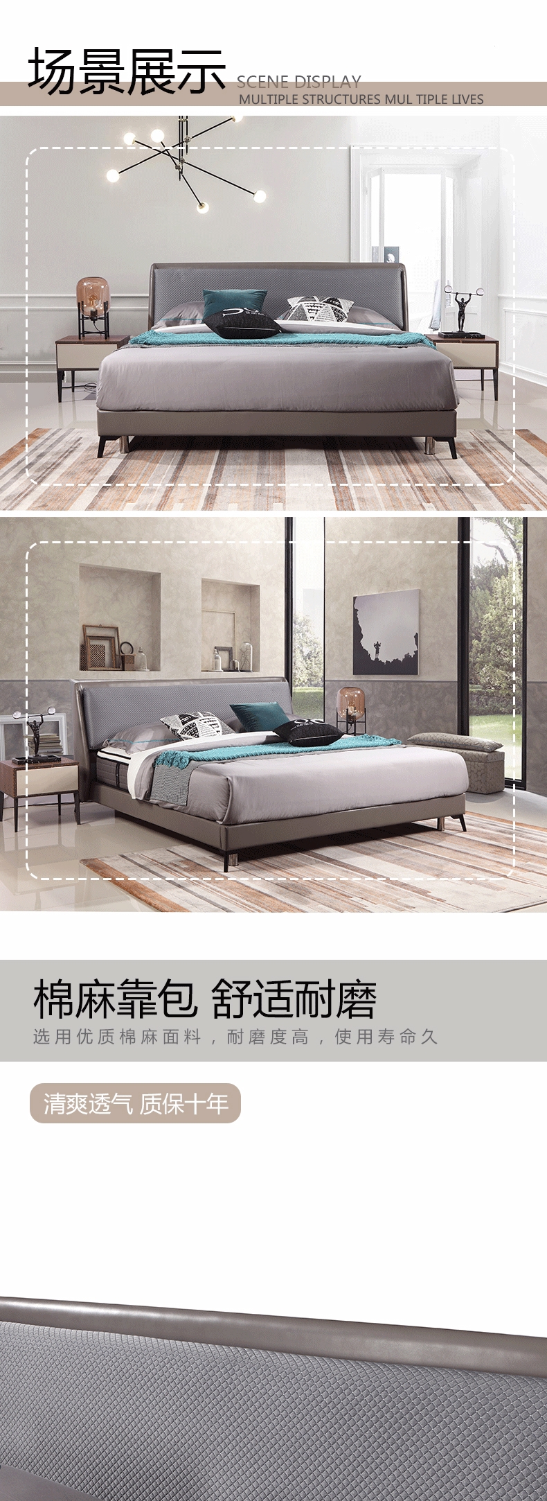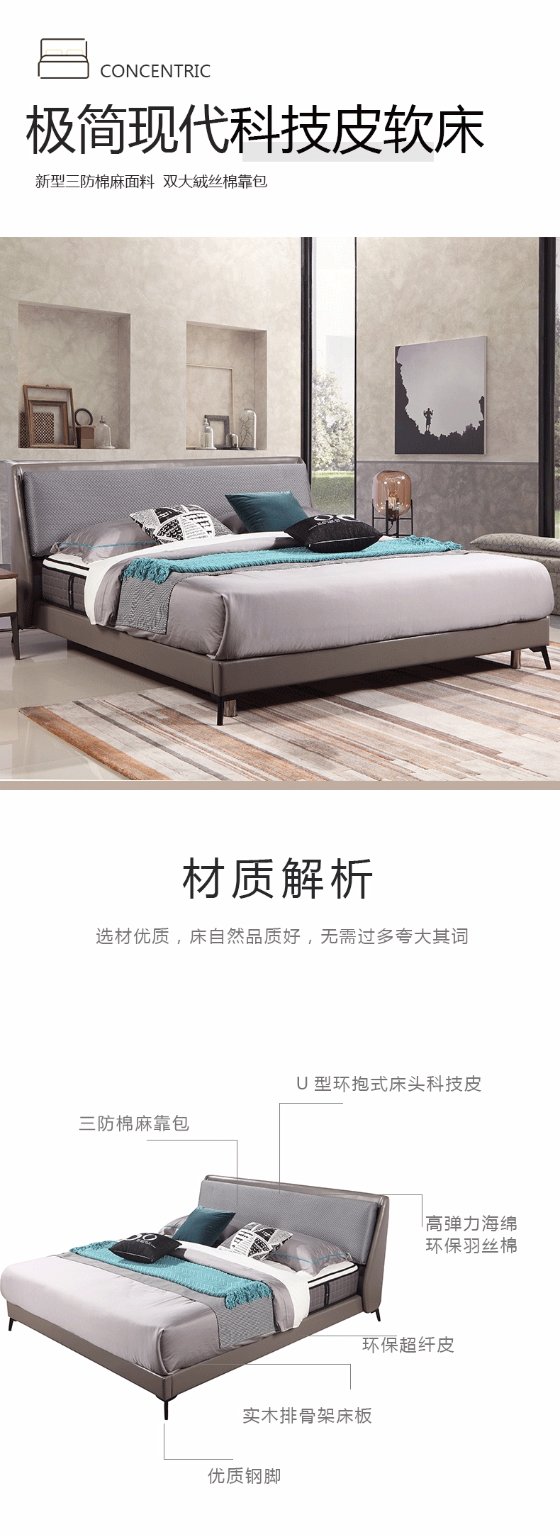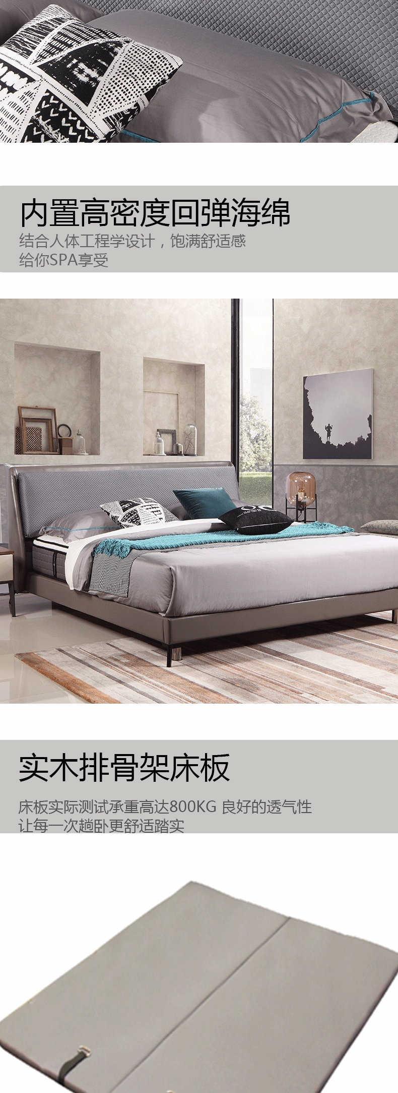 彩家居MF-141意式极简皮床1.9米主卧现代简约双人床婚床轻奢皮床
