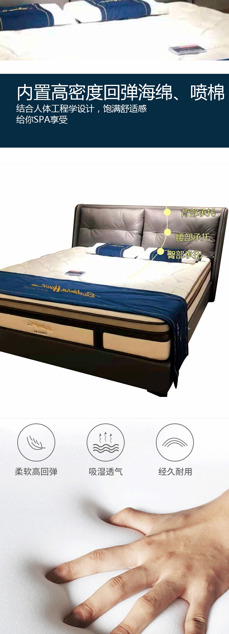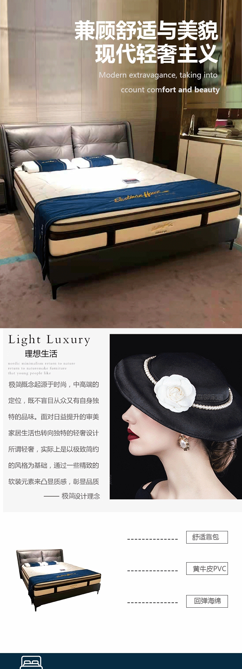 彩家居MYEH-6603卧室婚床1.5米1.8米双人床轻奢简易大床时尚真皮可靠背