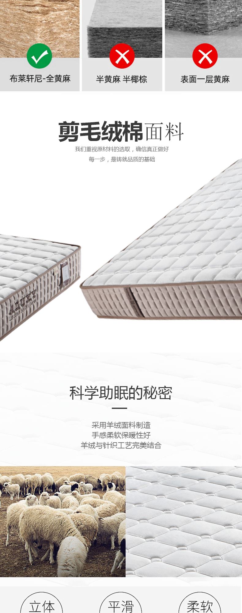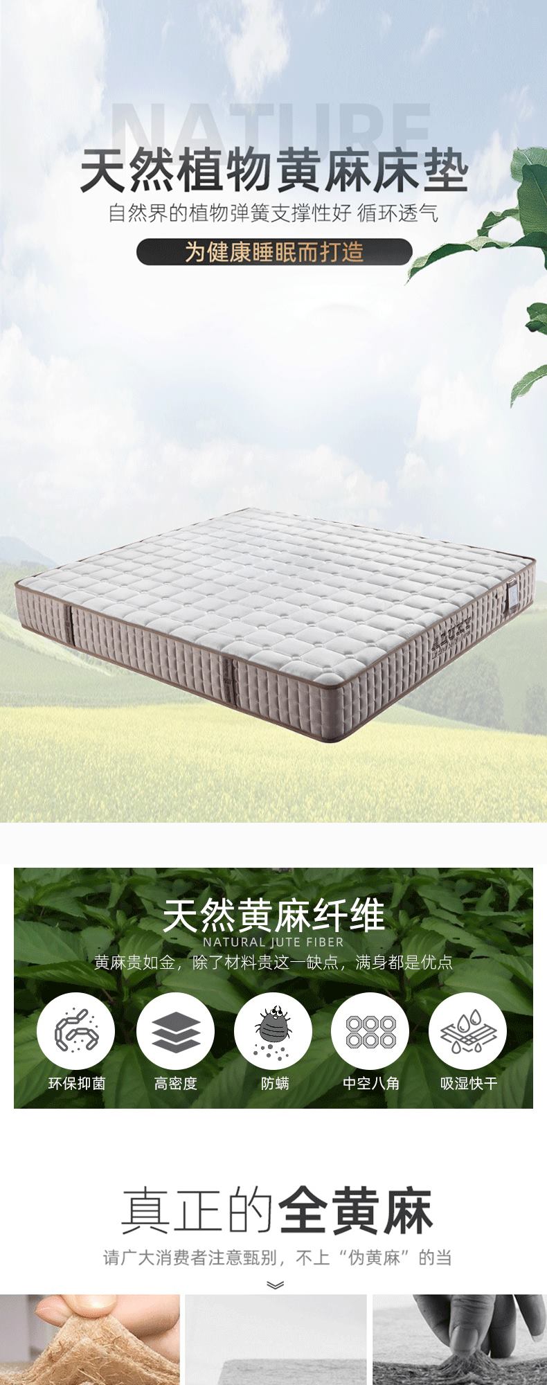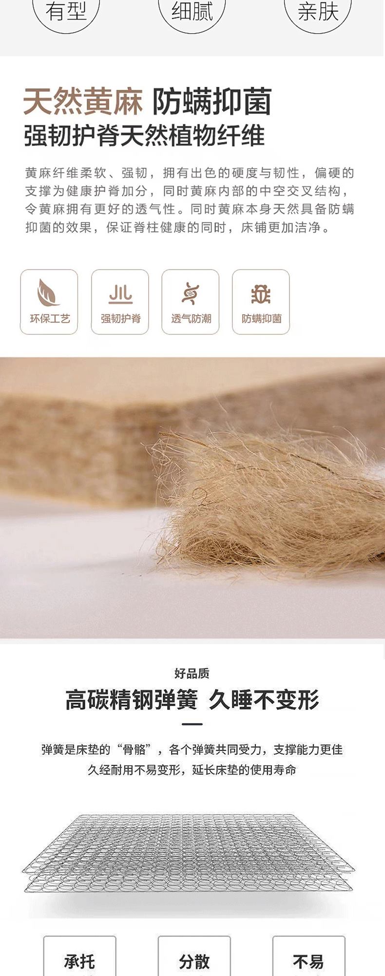 彩家居Y2弹簧黄麻床垫天然黄麻纤维卧室双人床垫绒毛面料护颈椎腰椎