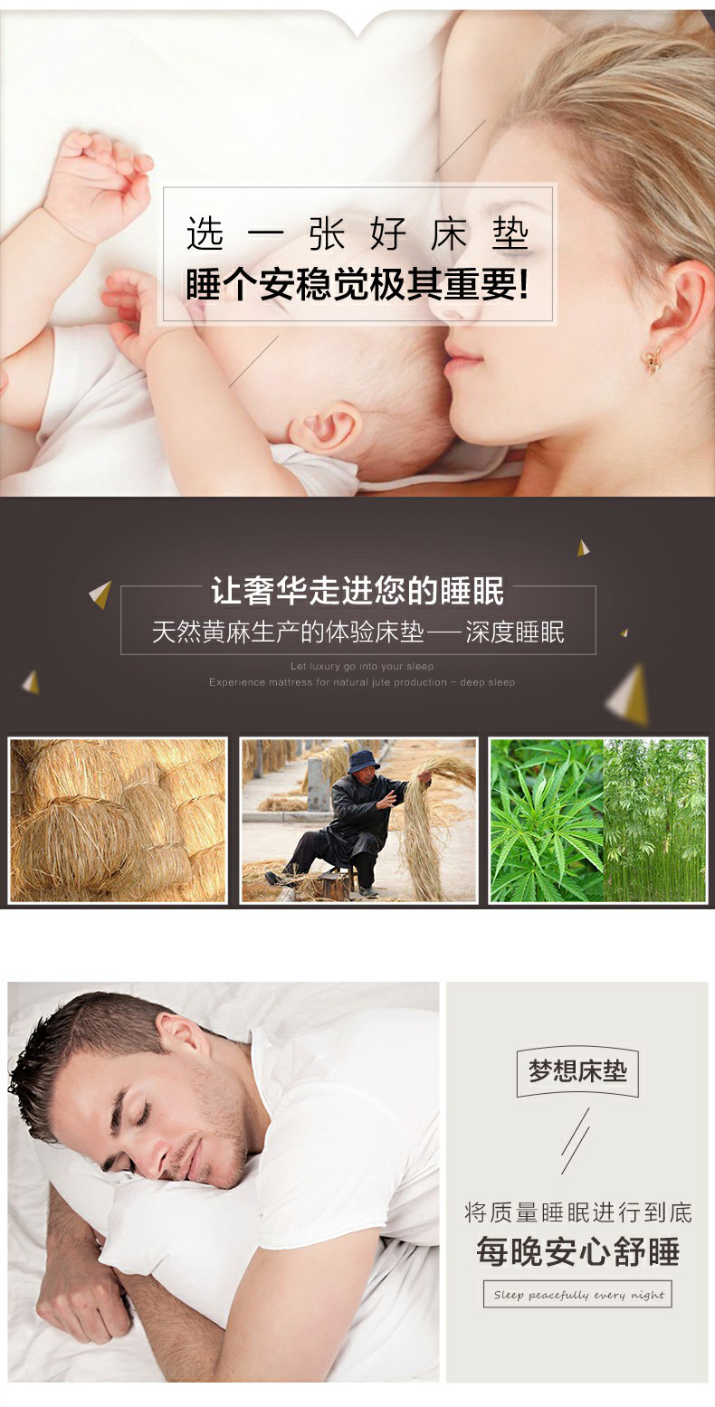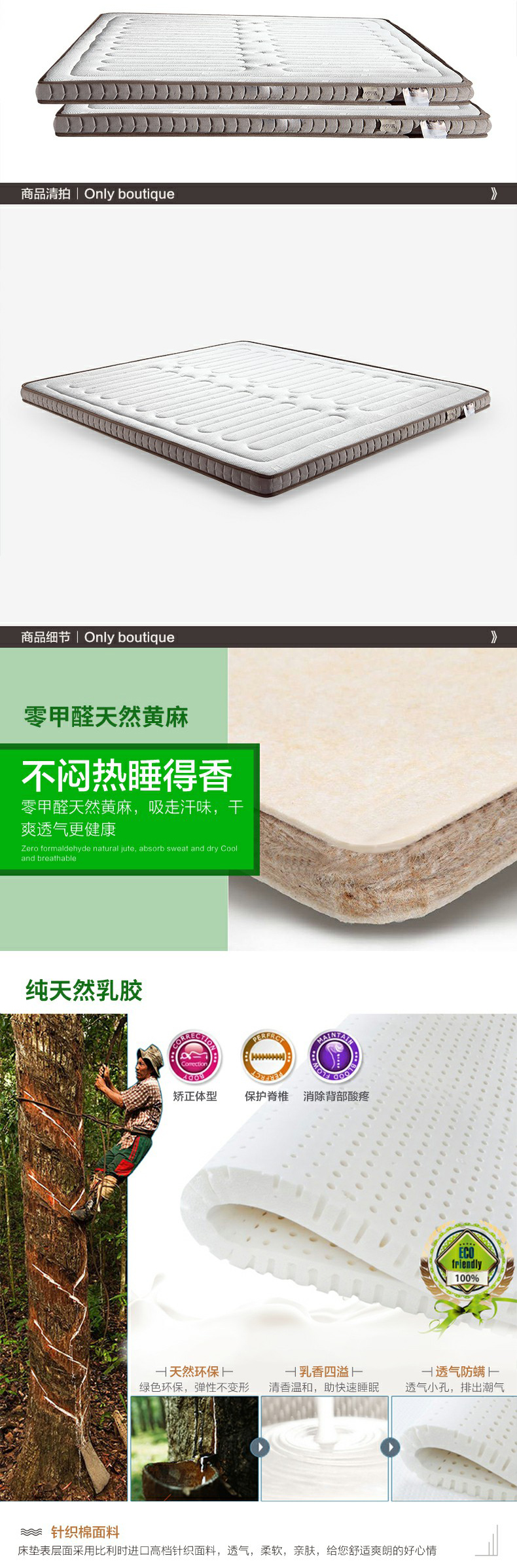 彩家居Y10纯天然黄麻乳胶床垫卧室大中小床垫户颈椎腰椎