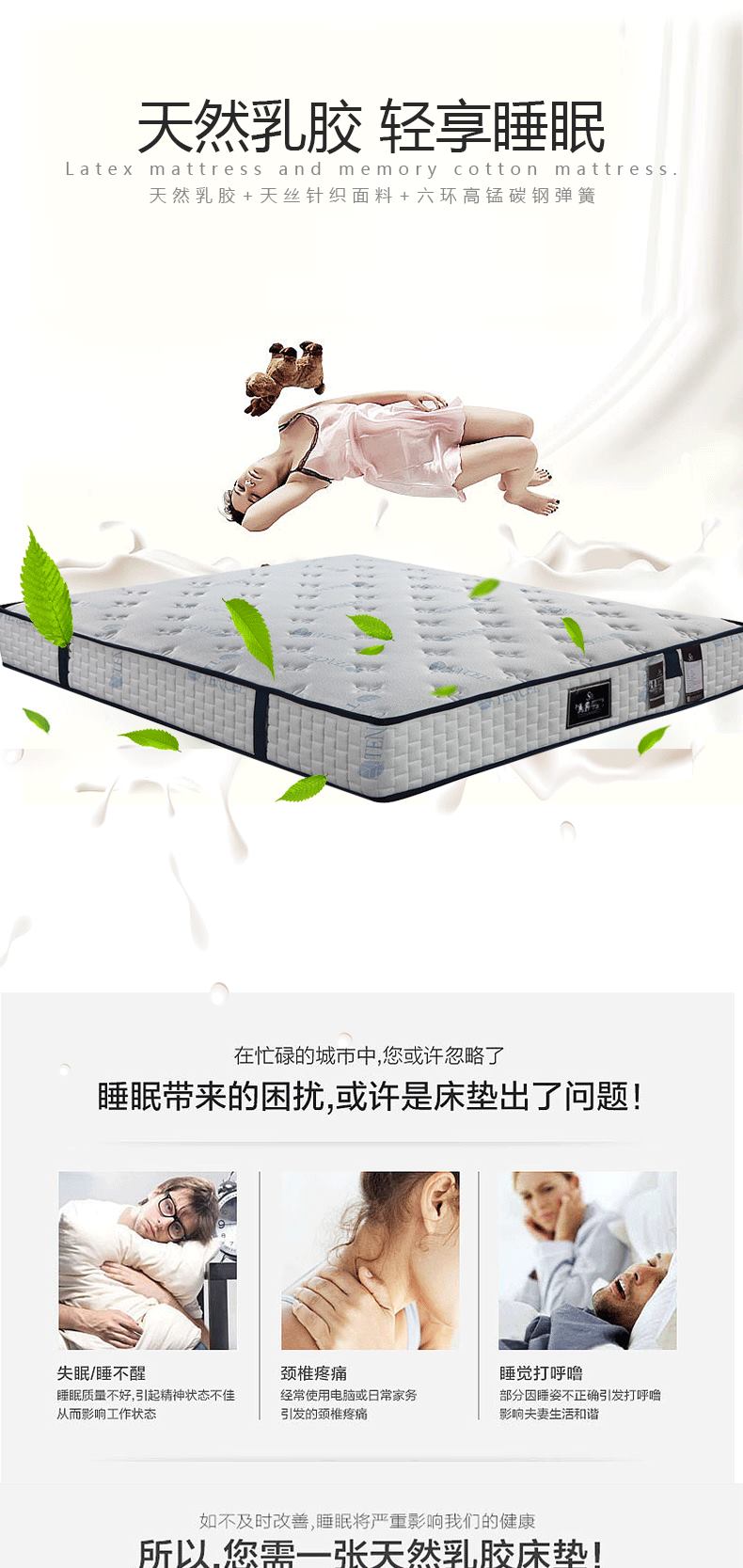 彩家居M700高弹天然乳胶床垫卧室双人床垫天丝针织面料保护颈椎腰椎