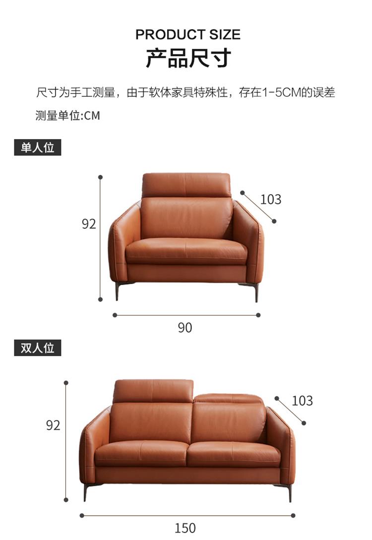 彩家居MYF-P33-MD现代简约轻奢真皮沙发小户型极简意式头层皮沙发组合北欧风客厅皮沙发