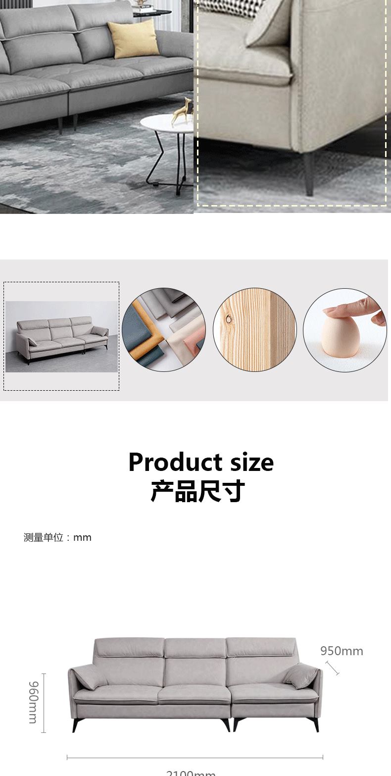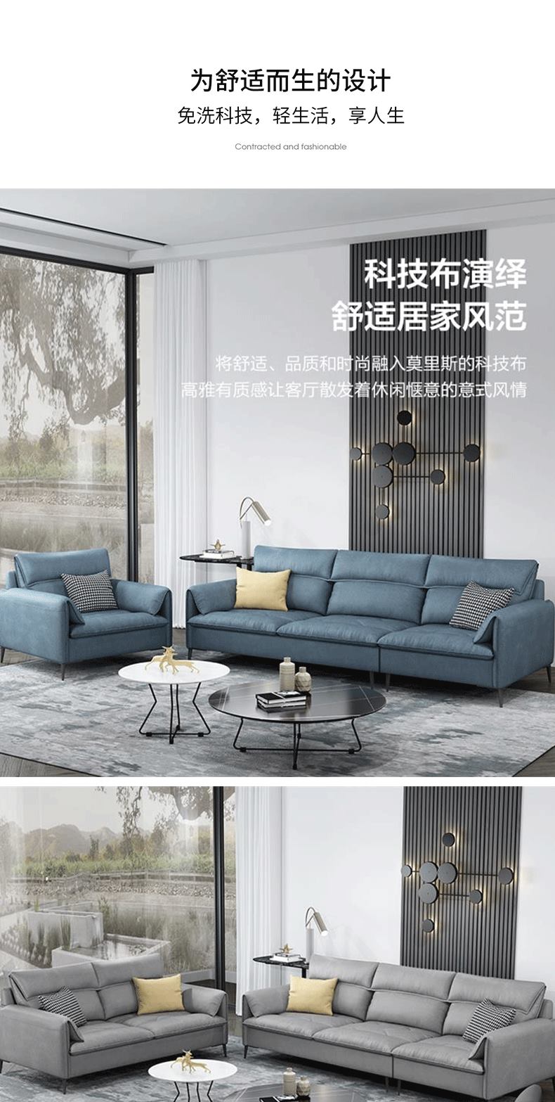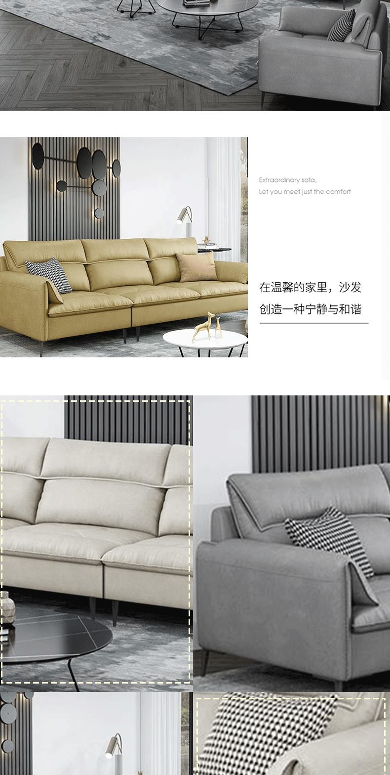 彩家居MYF-P-K56北欧极简意式真皮沙发客厅沙发组合现代简约轻奢沙发
