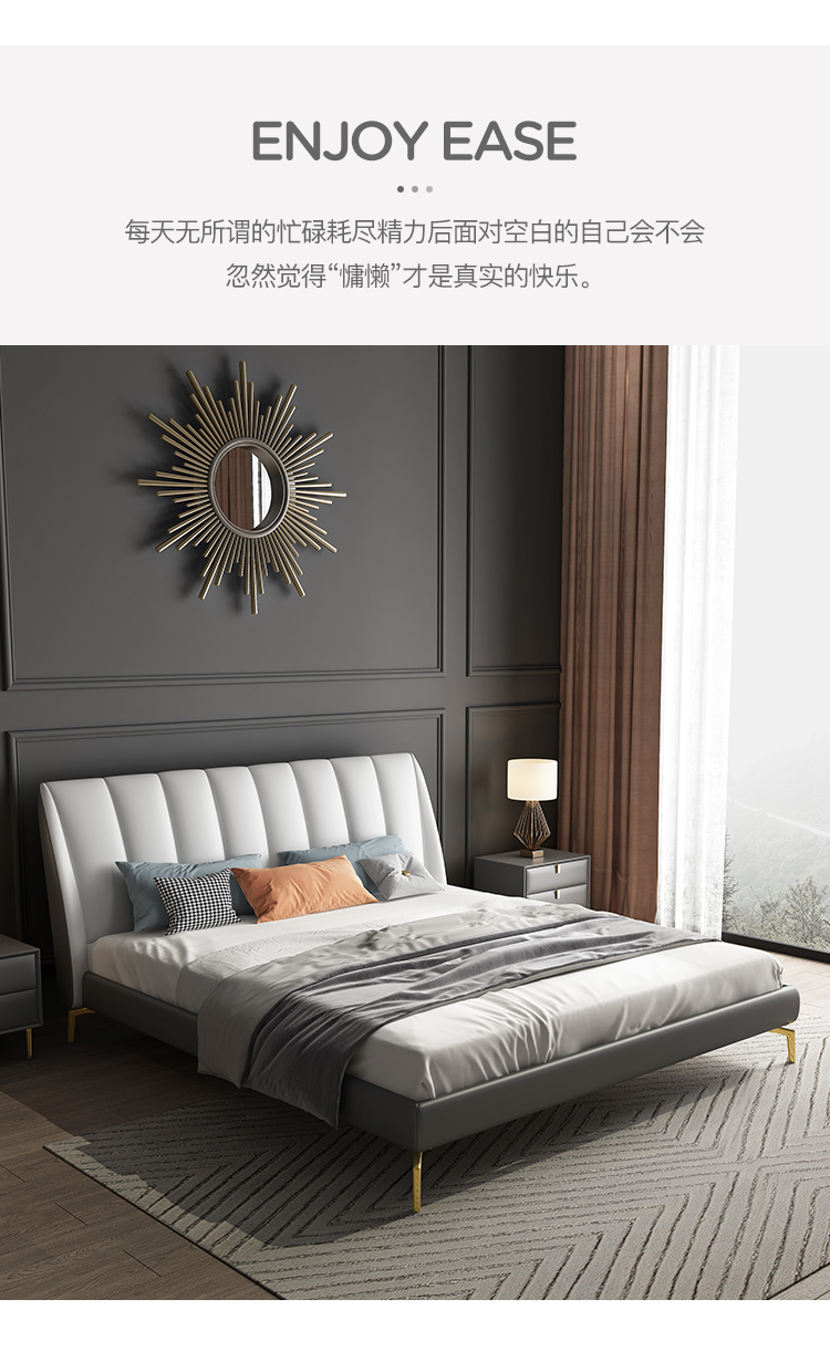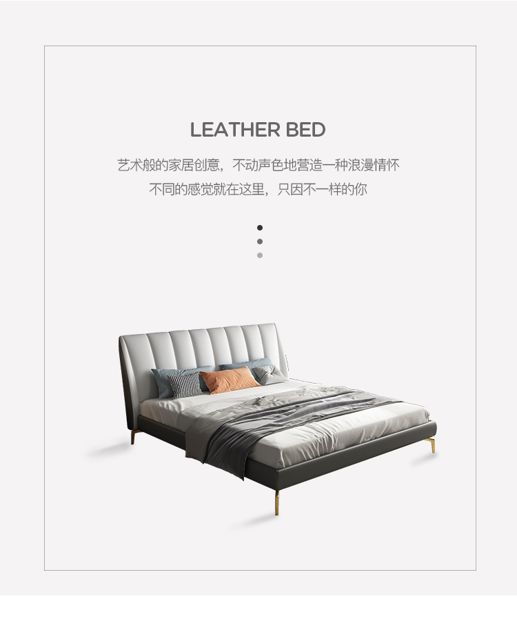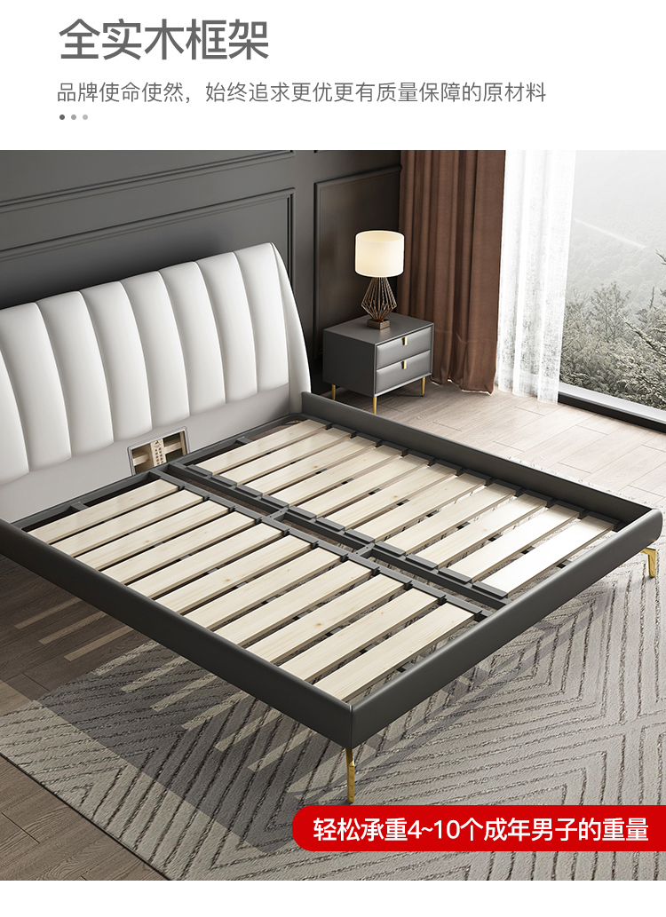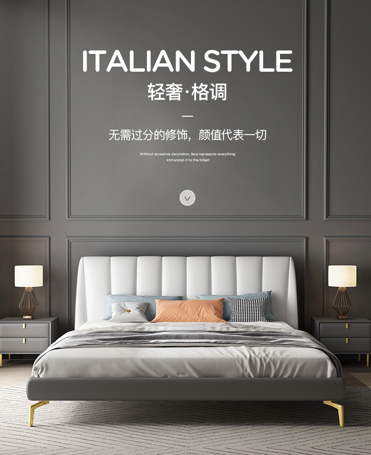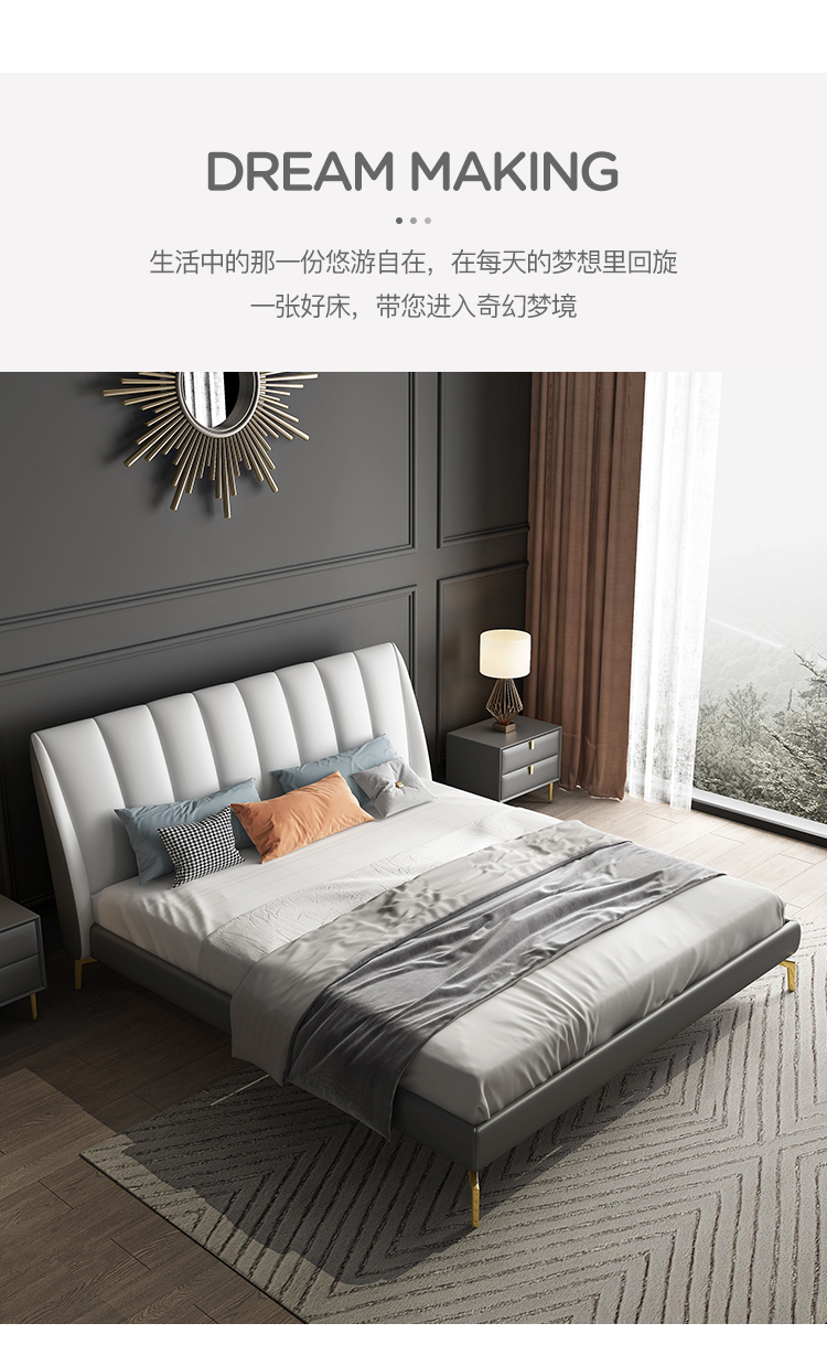 彩家居MYA-GC62-BS现代轻奢床 简约大气ins主卧大床轻奢皮床双人床真皮皮质床
