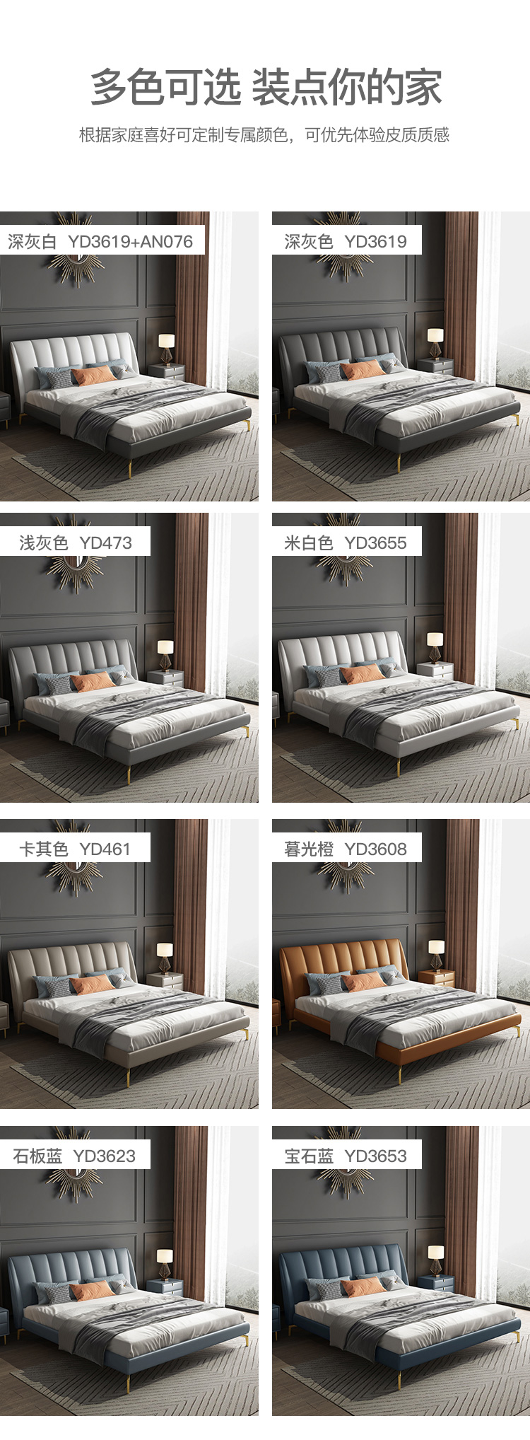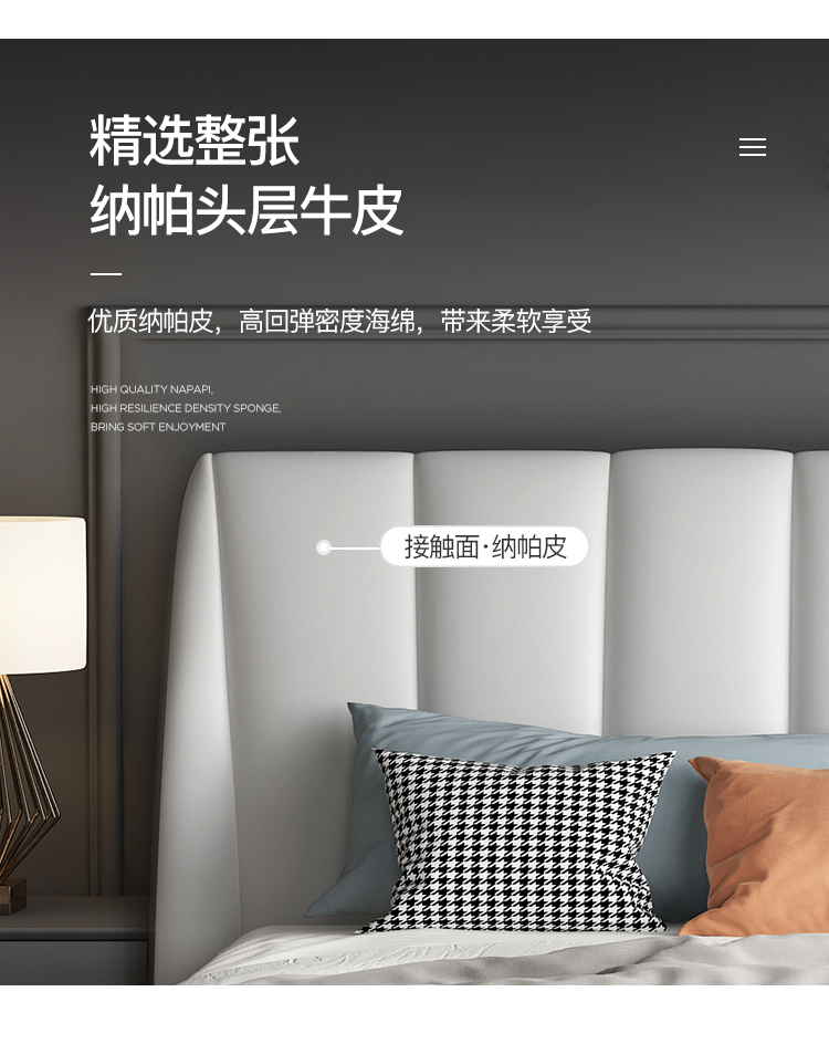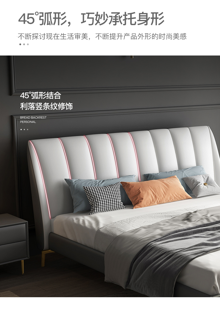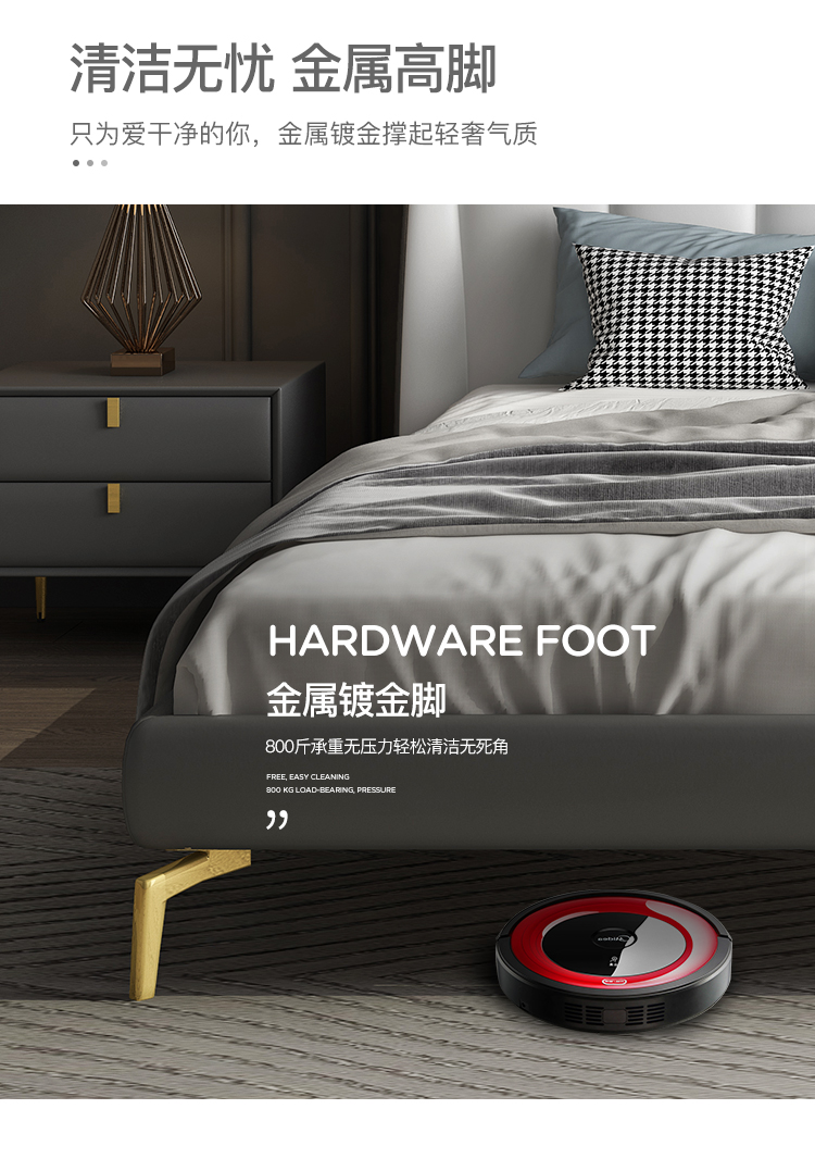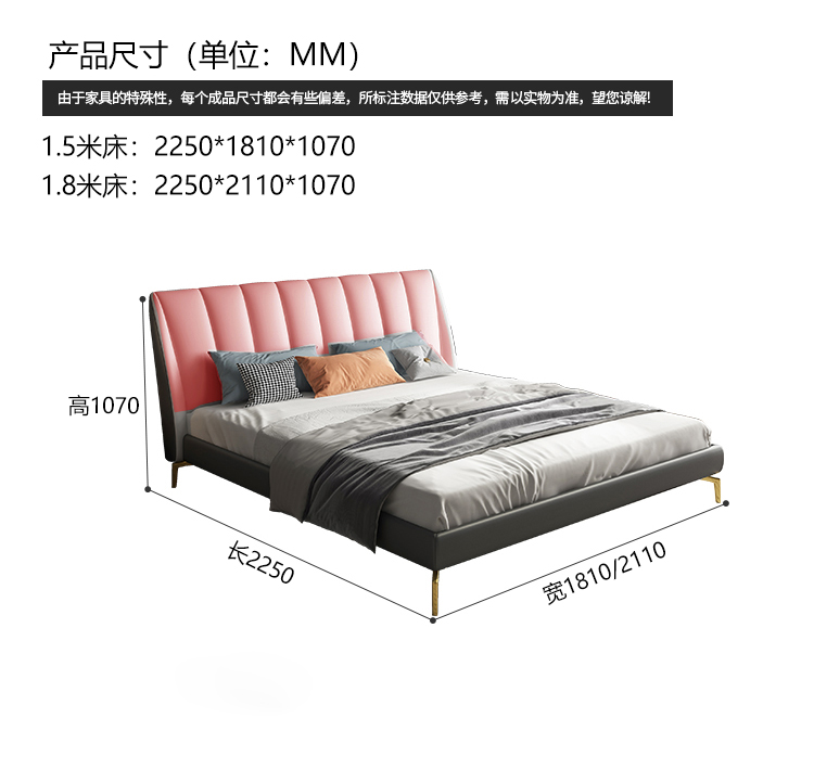 彩家居MYA-GC62-BS现代轻奢床 简约大气ins主卧大床轻奢皮床双人床真皮皮质床