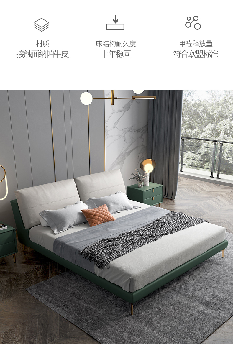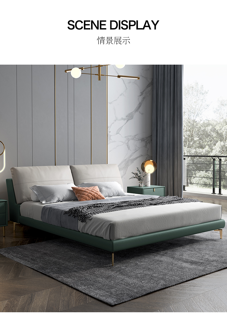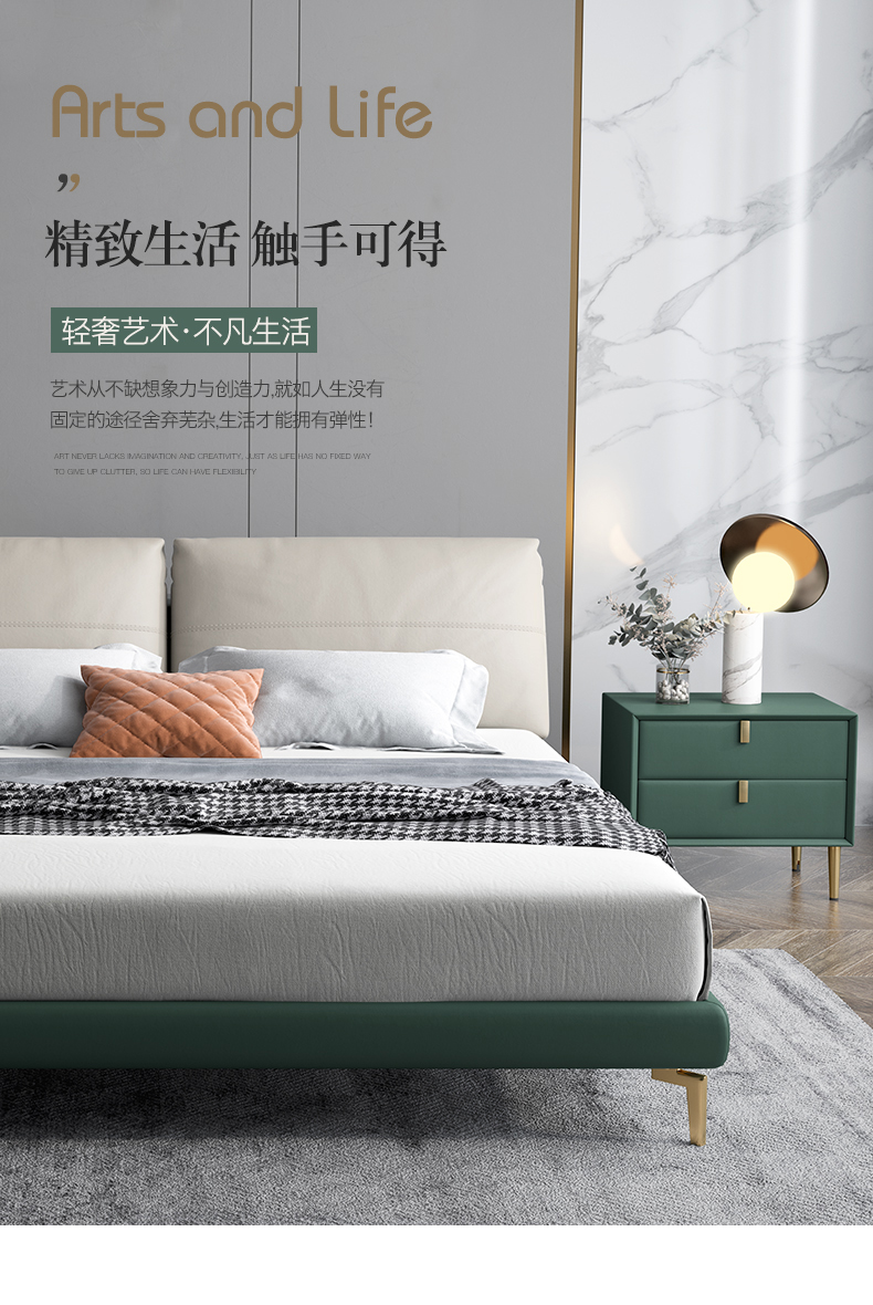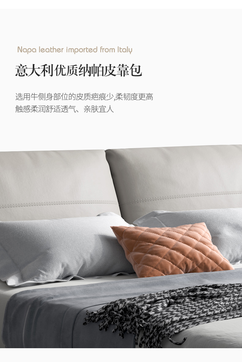 彩家居MYA-GC14PS-BS极简轻奢真皮1.5/1.8米双人床主卧简约现代