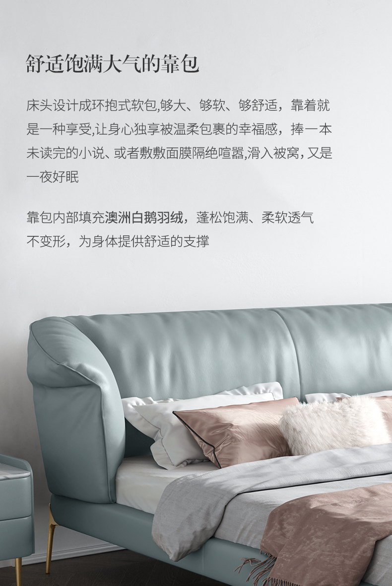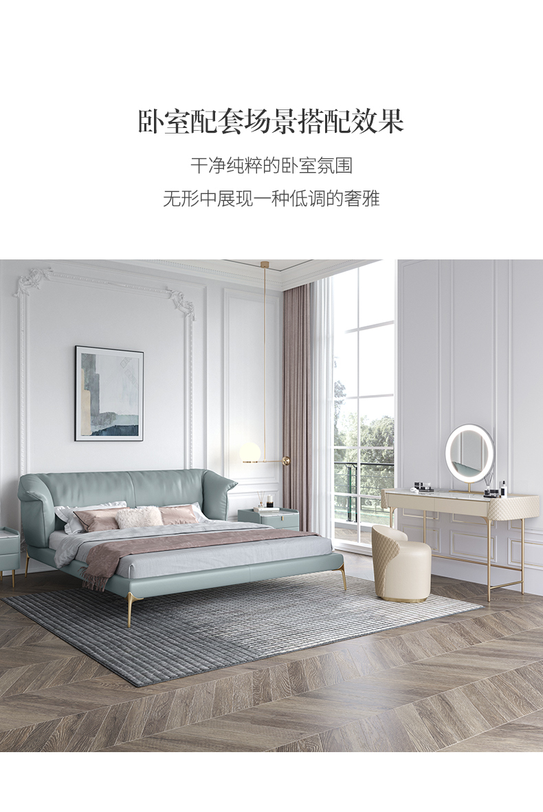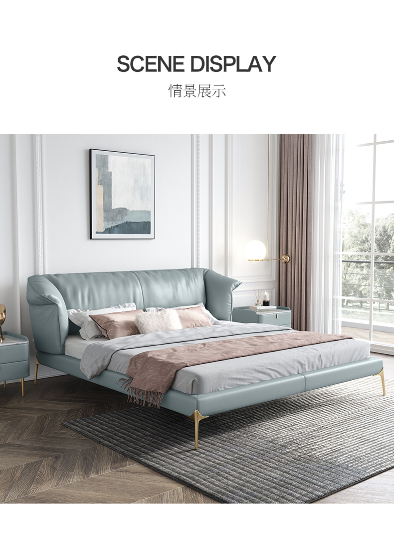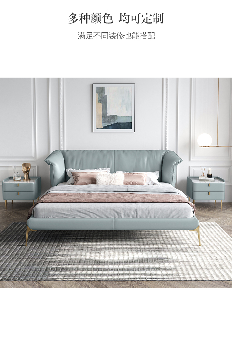 彩家居MYA-C010-BS皮床真皮床双人床轻奢现代简约高档1.8米主卧