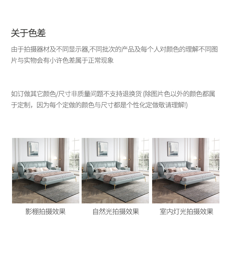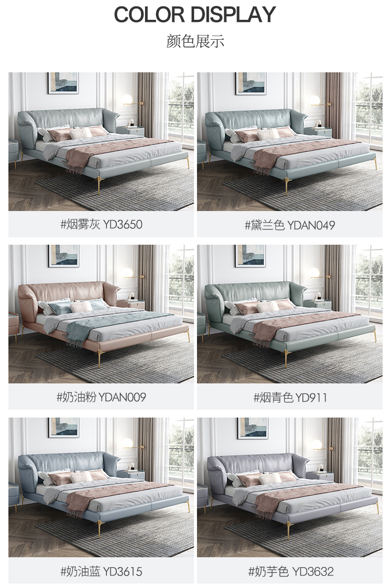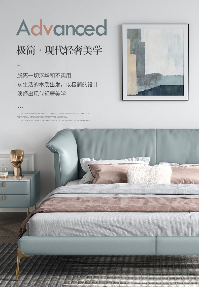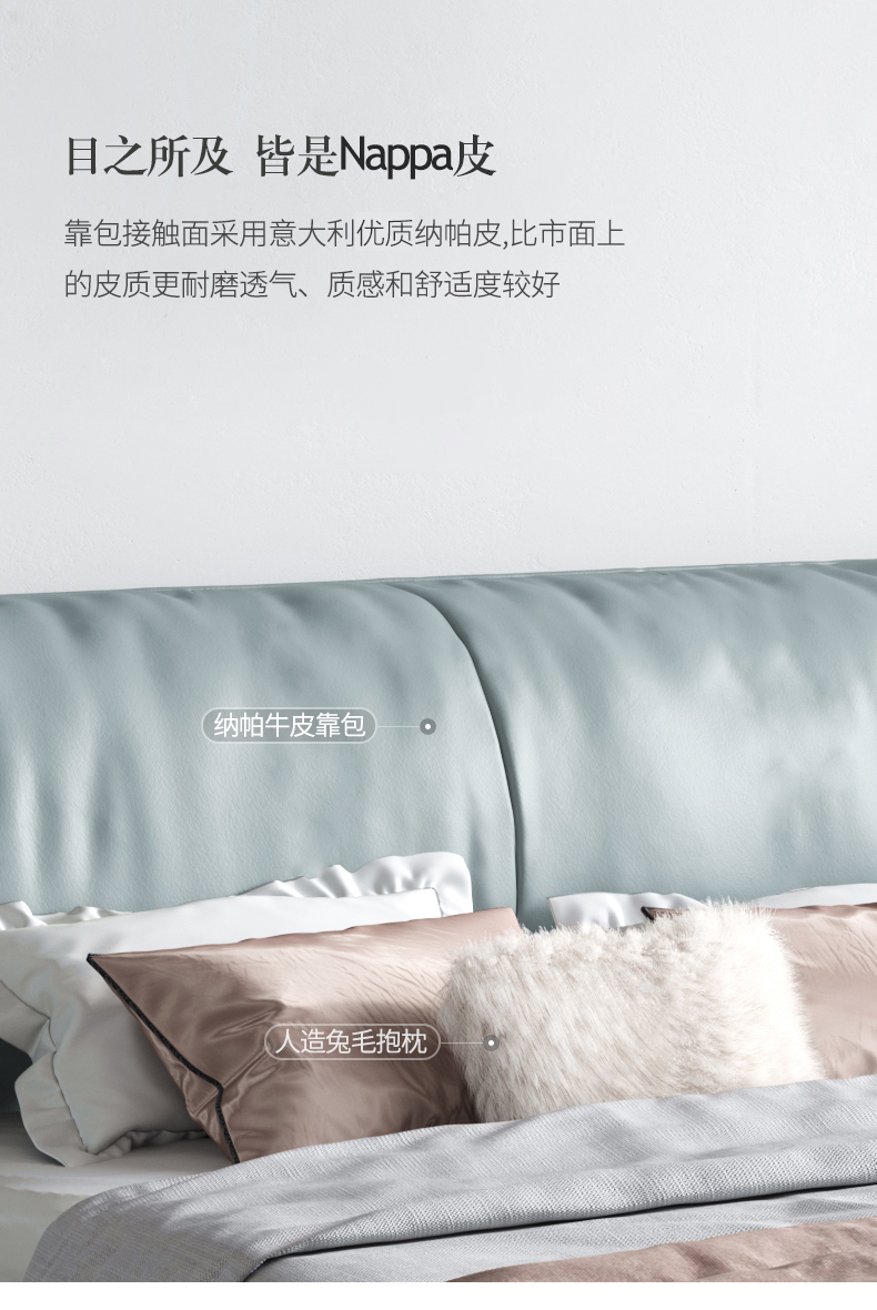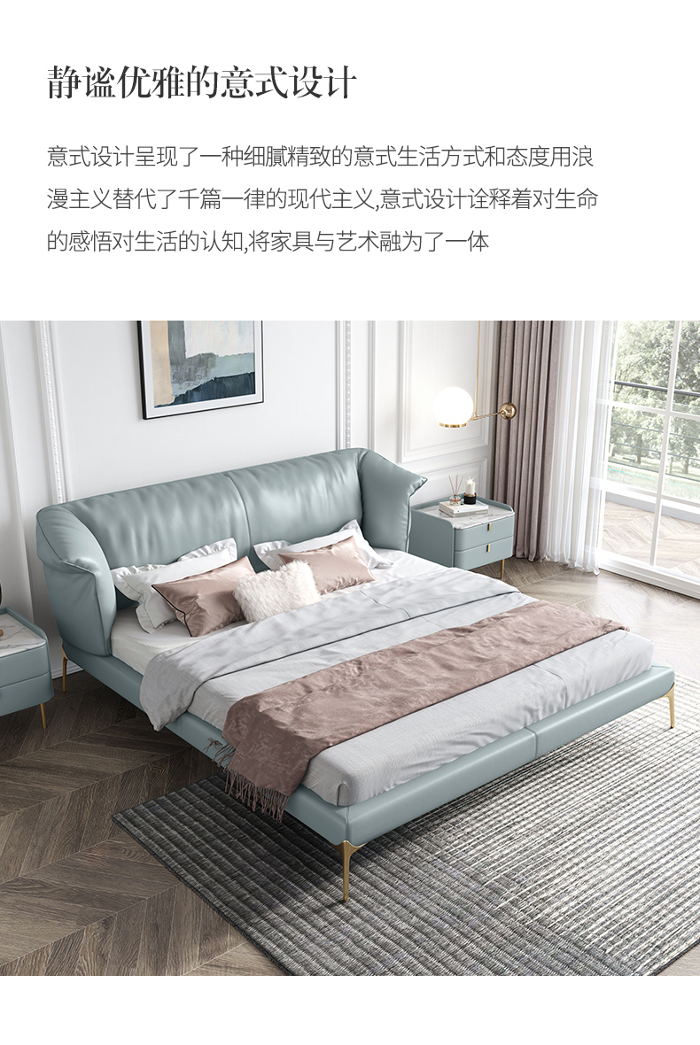 彩家居MYA-C010-BS皮床真皮床双人床轻奢现代简约高档1.8米主卧