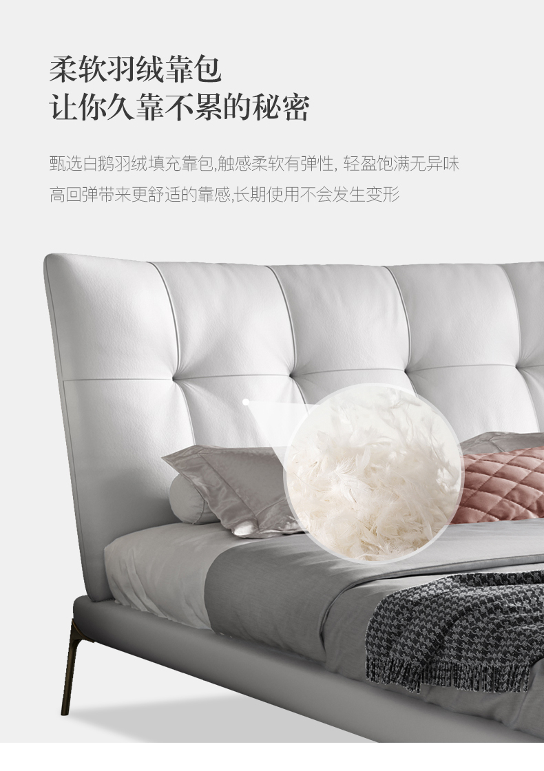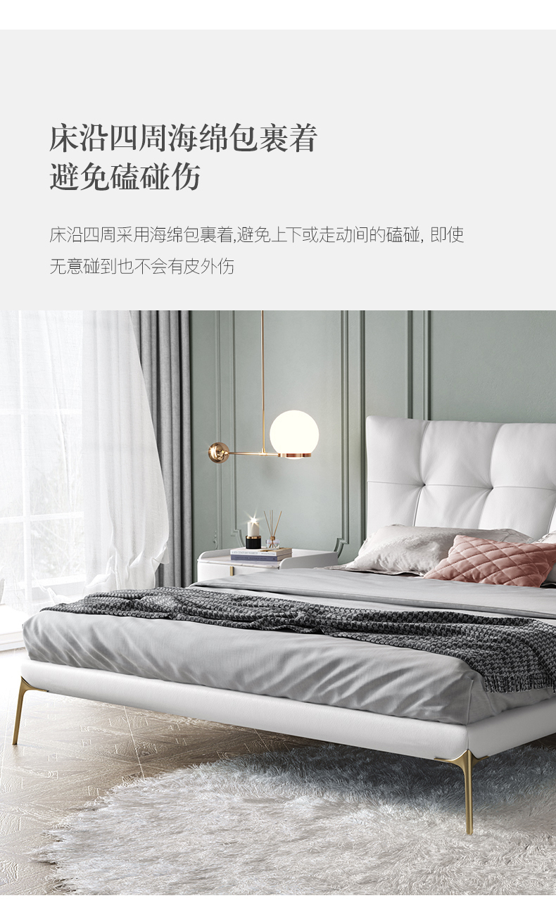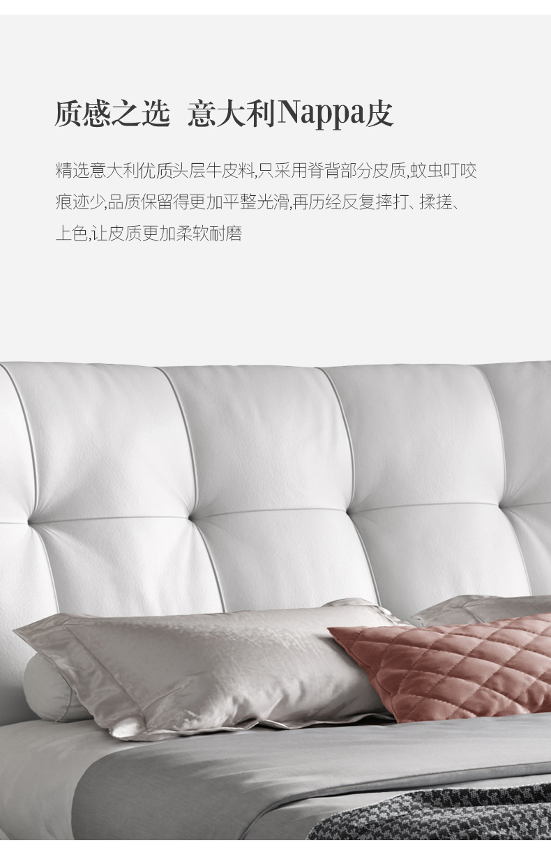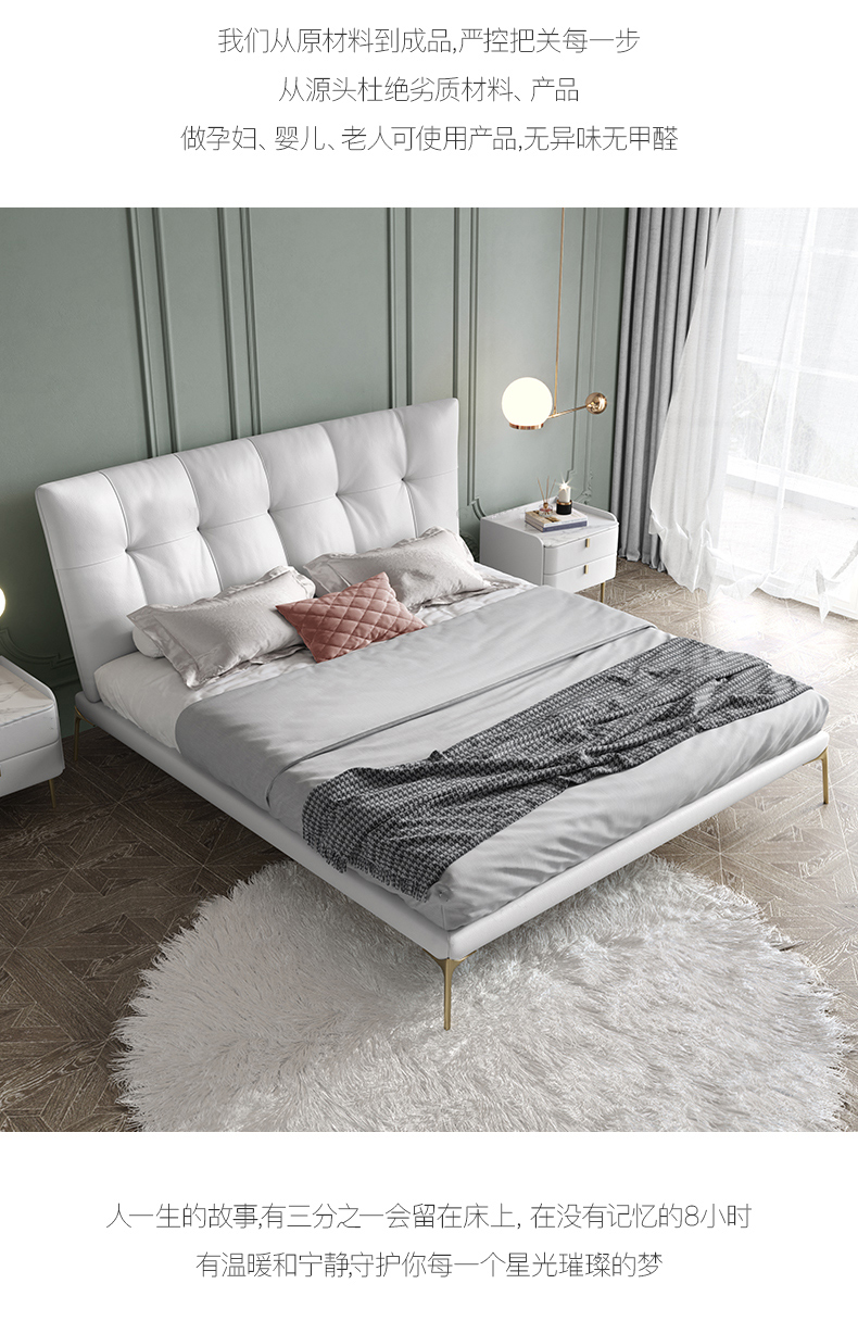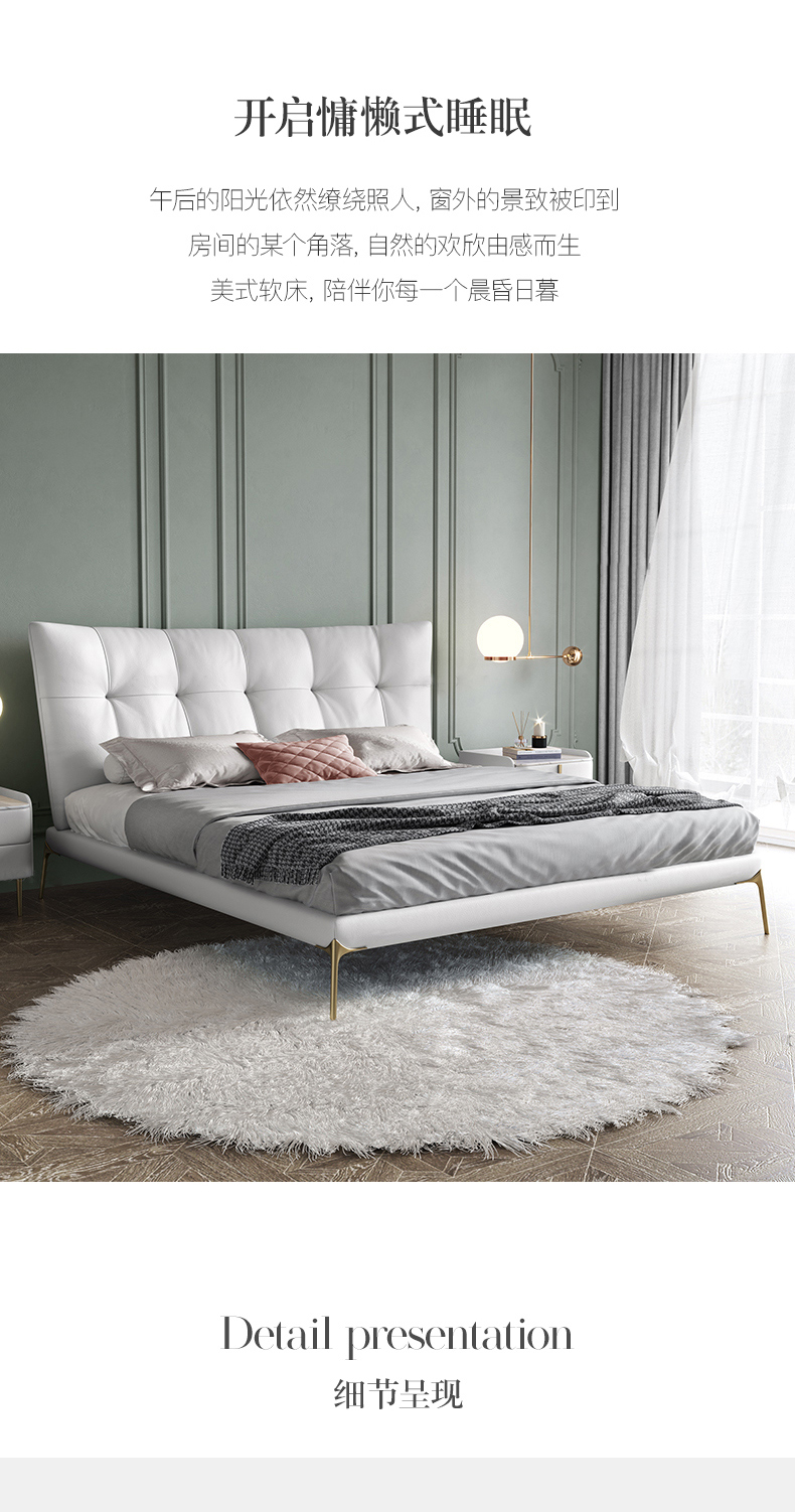 彩家居MYA-C013BY-BS真皮床现代主卧室双人床1.8米