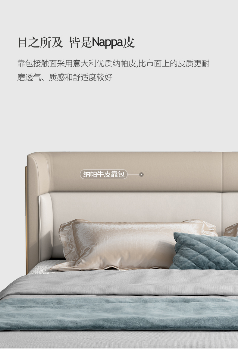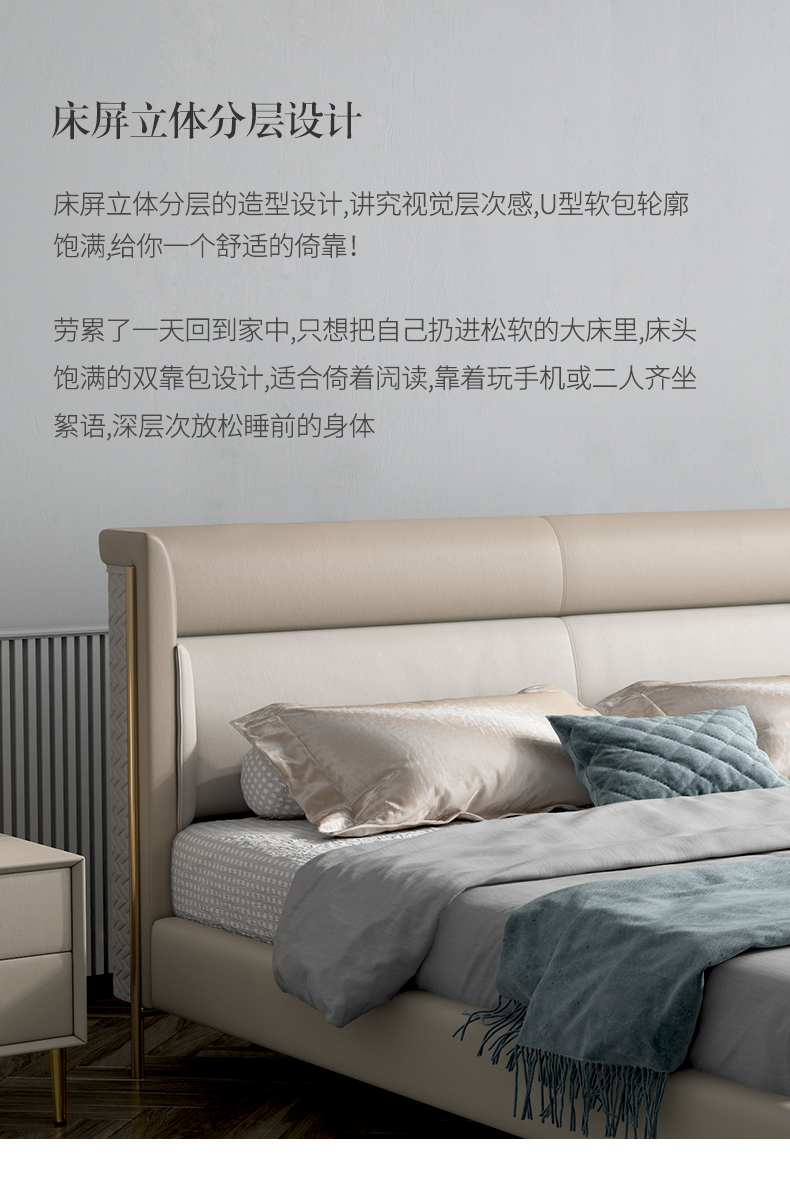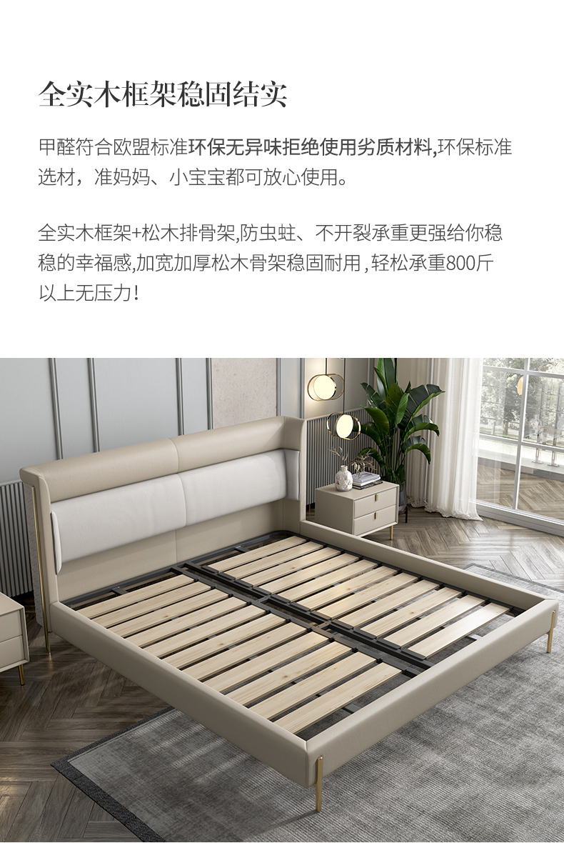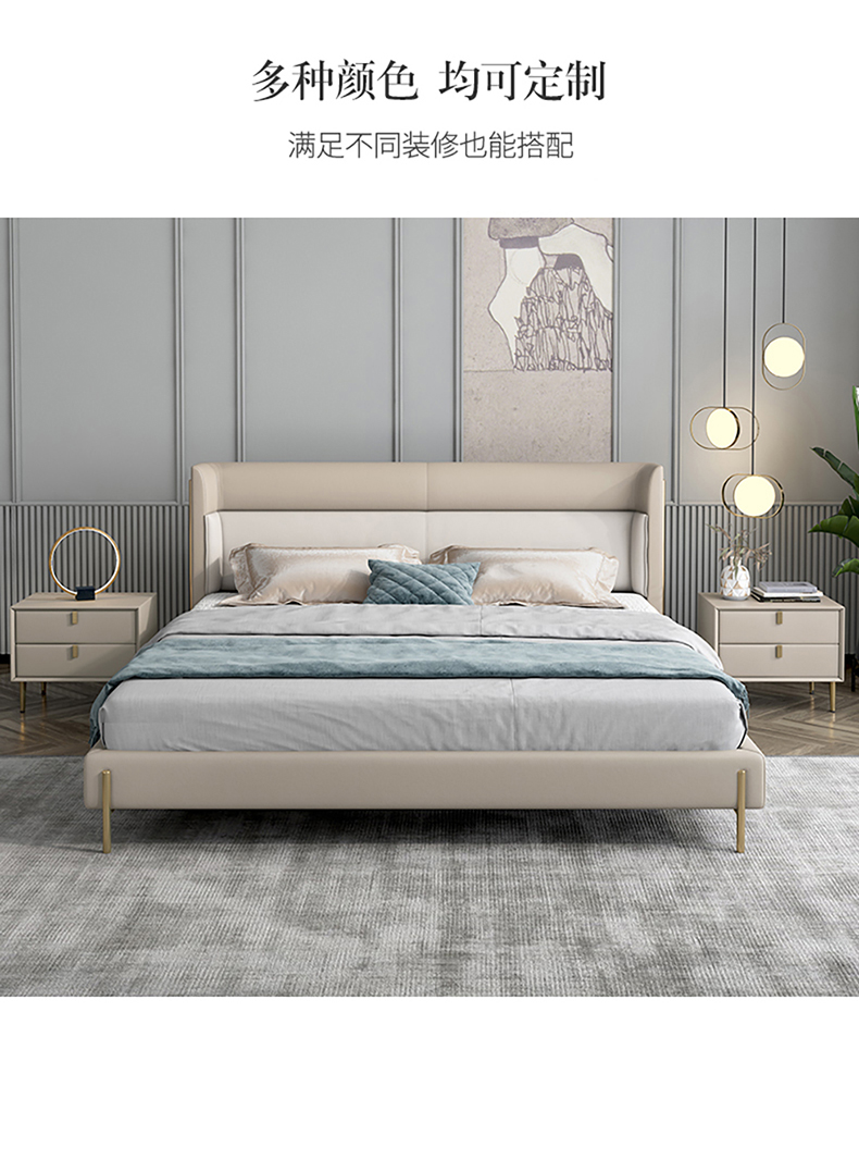 彩家居MYA-C001-BS现代轻奢实木床1.8米双人床主卧大气真皮