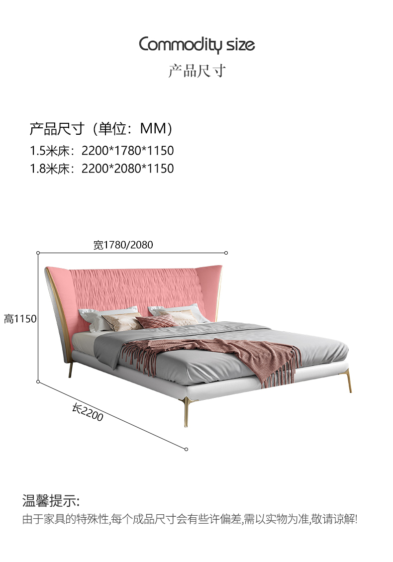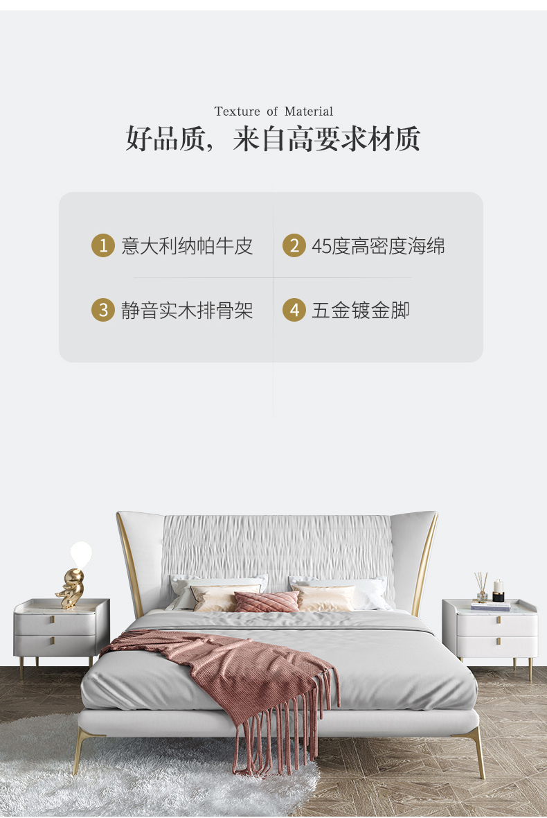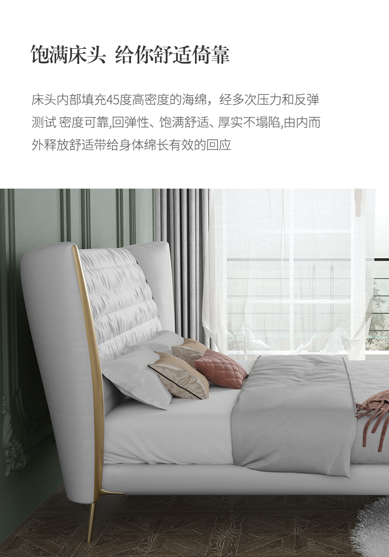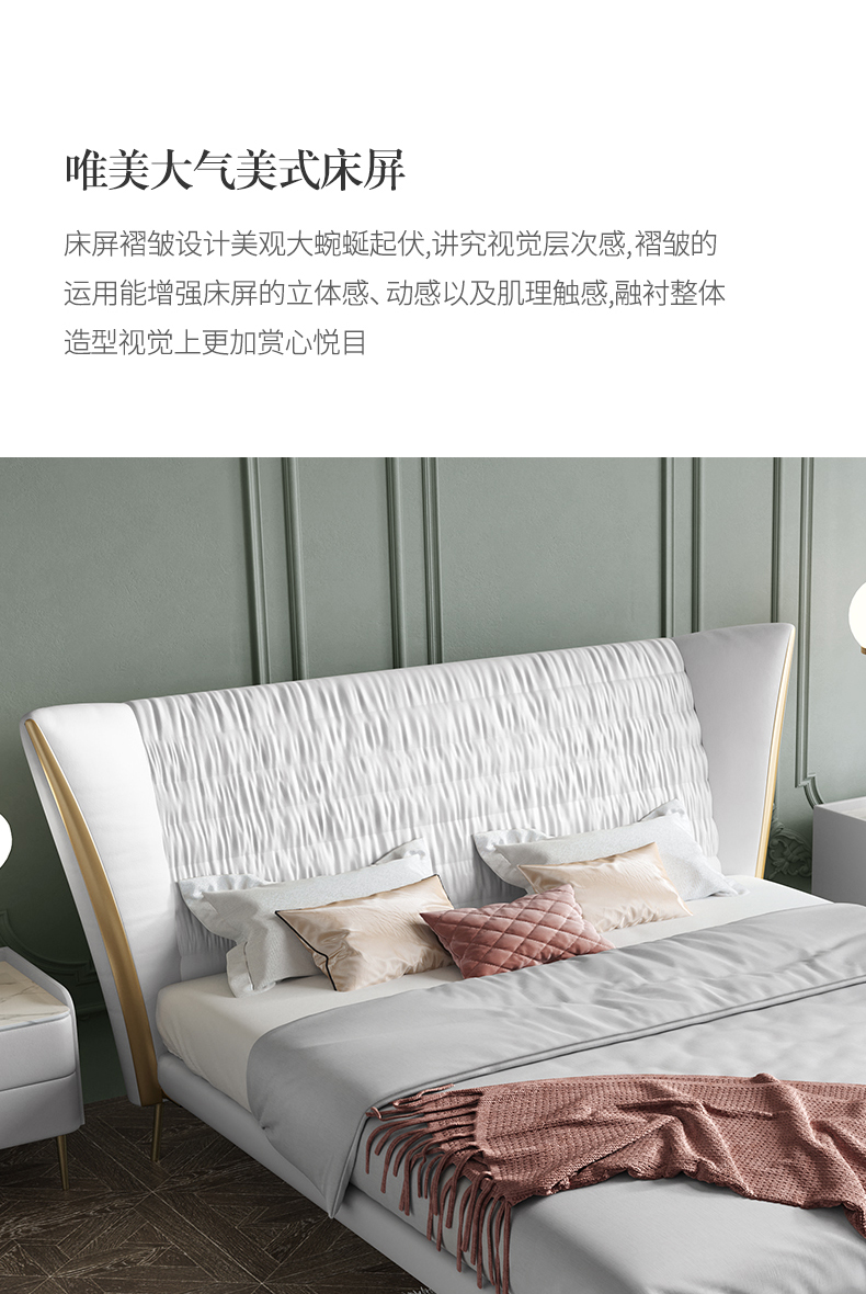 彩家居MYA-C026-BS双人真皮床主卧轻奢现代1.8米