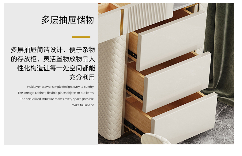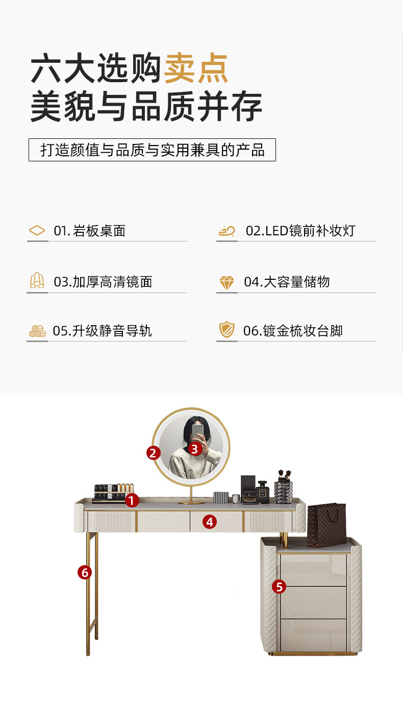 彩家居MYD-308现代家用卧室梳妆台可收纳轻奢化妆台