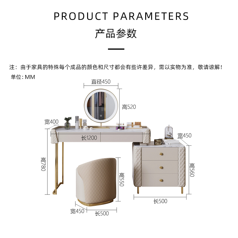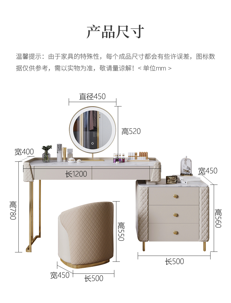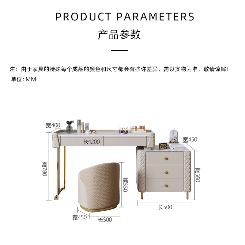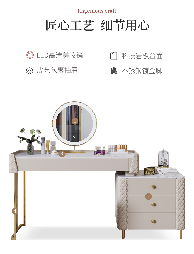 彩家居MYD-H08-BS轻奢梳妆台收纳柜一体卧室化妆桌创意化妆台