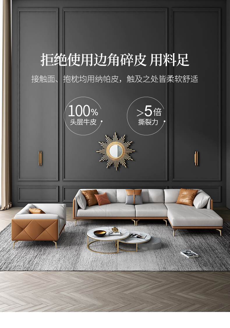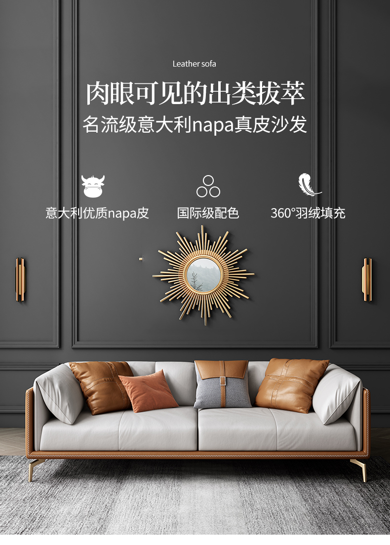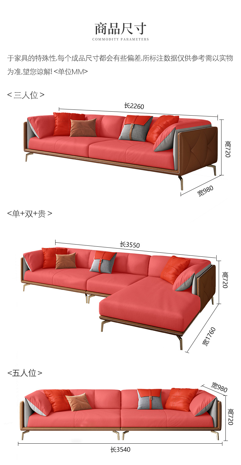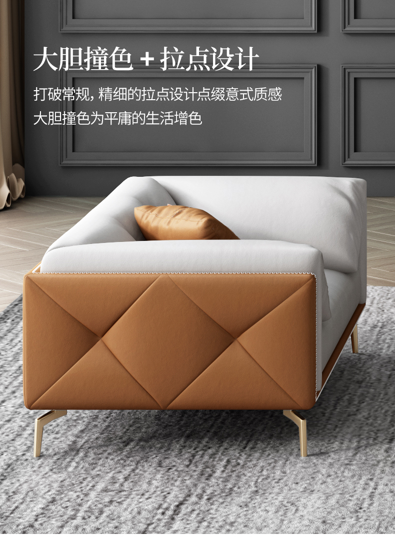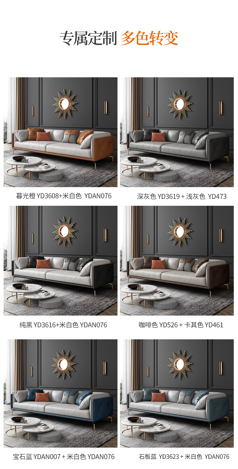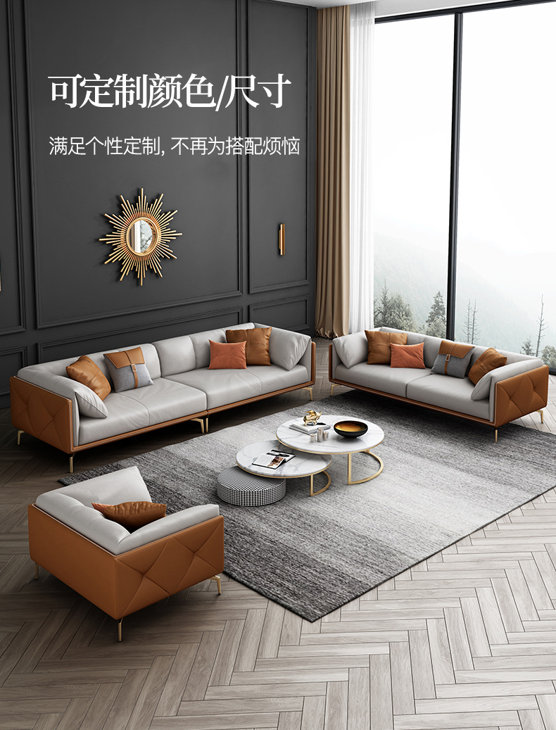 彩家居MYF-S91S-BS轻奢真皮双人皮沙发大小户型现代家具客厅沙发组合套装