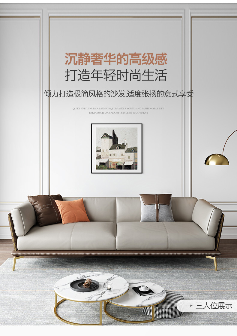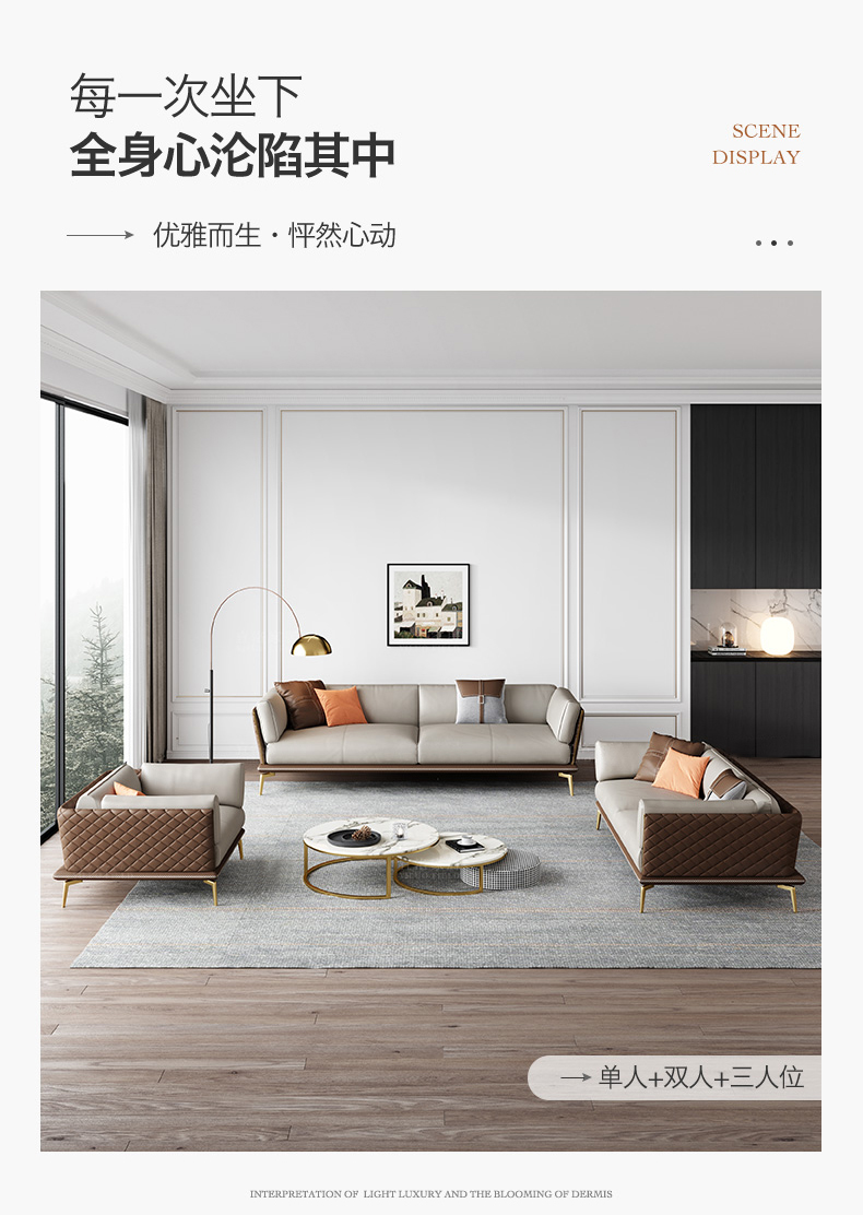 彩家居MYF-S104-BS真皮沙发轻奢风皮艺沙发客厅现代简约超纤皮沙发