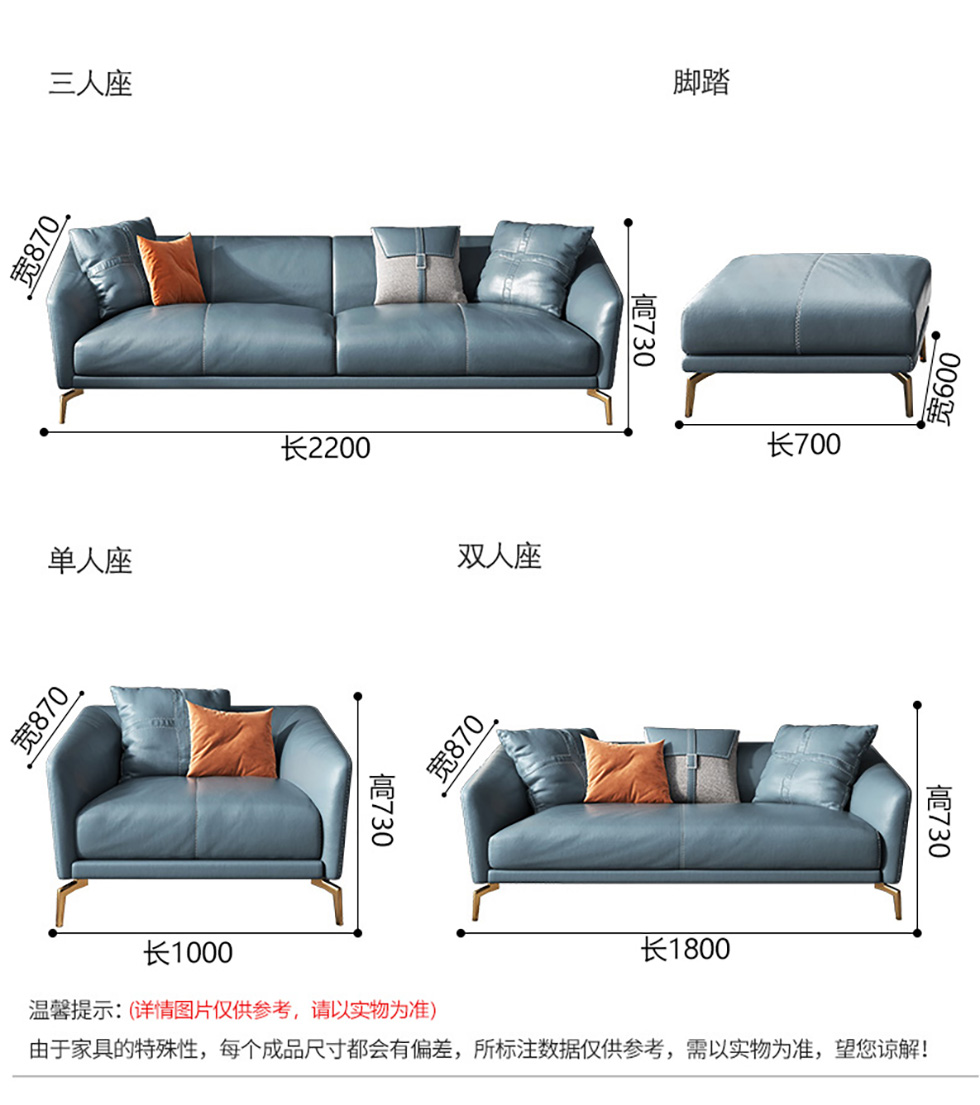 彩家居MYF-S27S-BS轻奢真皮/超纤皮/布艺沙发直排大小户型客厅双人三人四人五人位简约现代