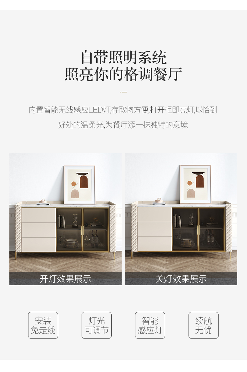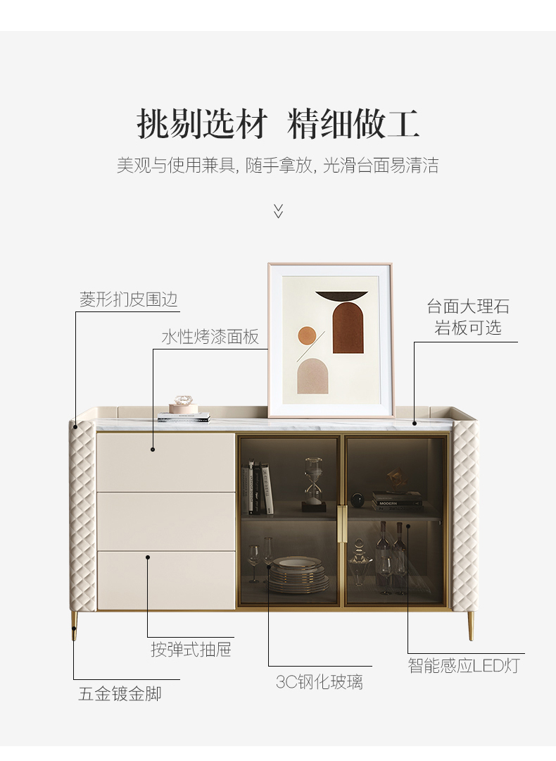 彩家居MYD-G491A-BS餐边柜现代大气家用储物柜轻奢靠墙茶水柜置物柜