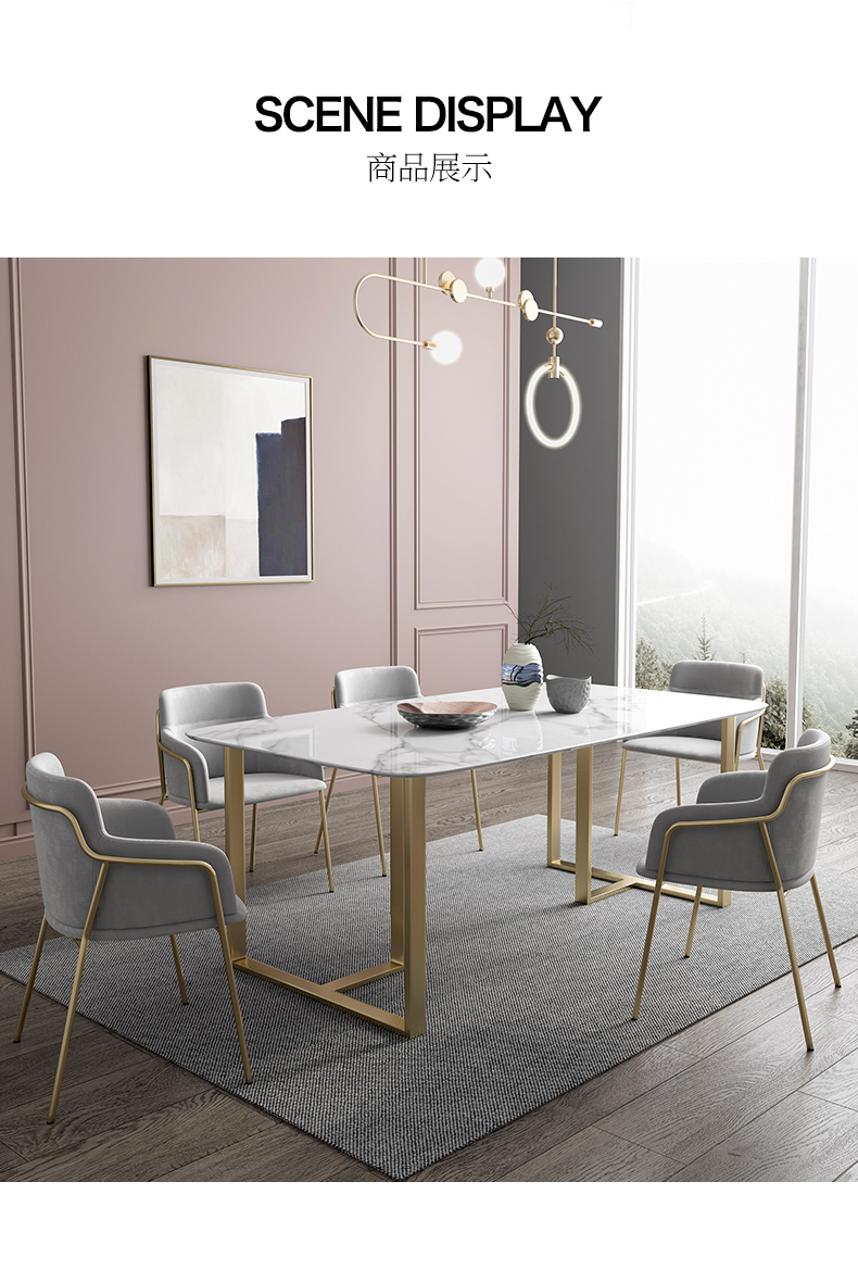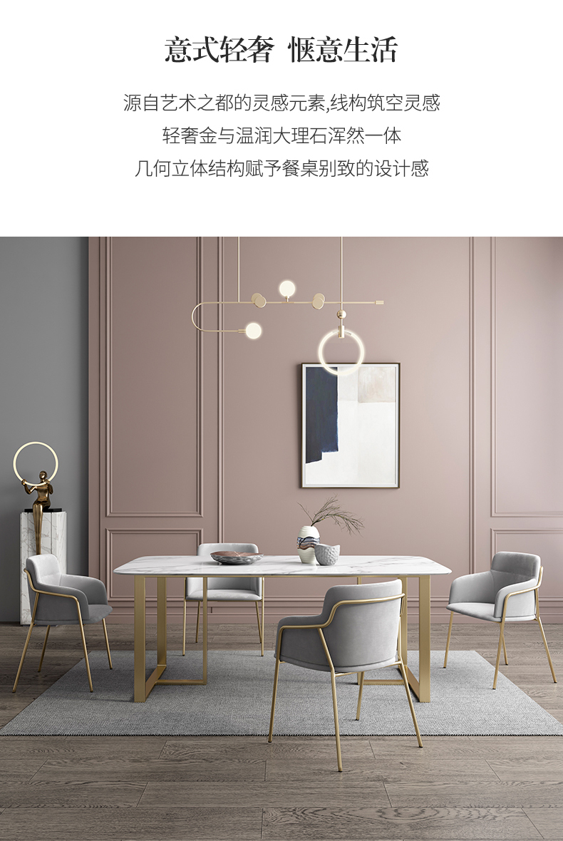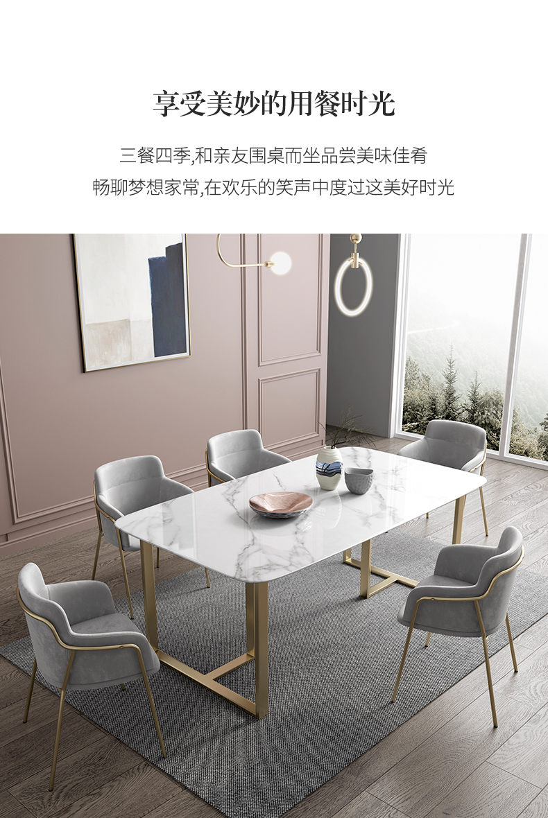 彩家居MYD-FZ492-BS岩板餐桌长方形家用现代简约餐桌