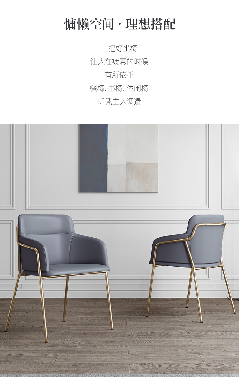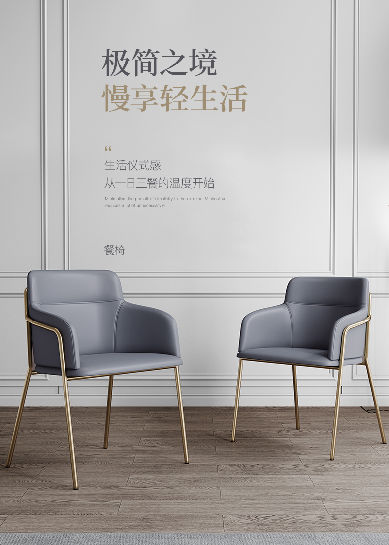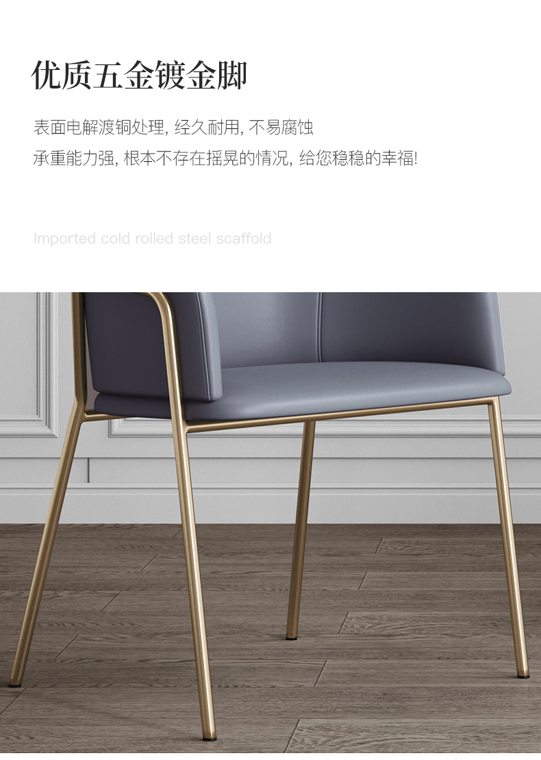 彩家居MYD-CY2148A-BS轻奢餐椅家用靠背双扶手餐椅