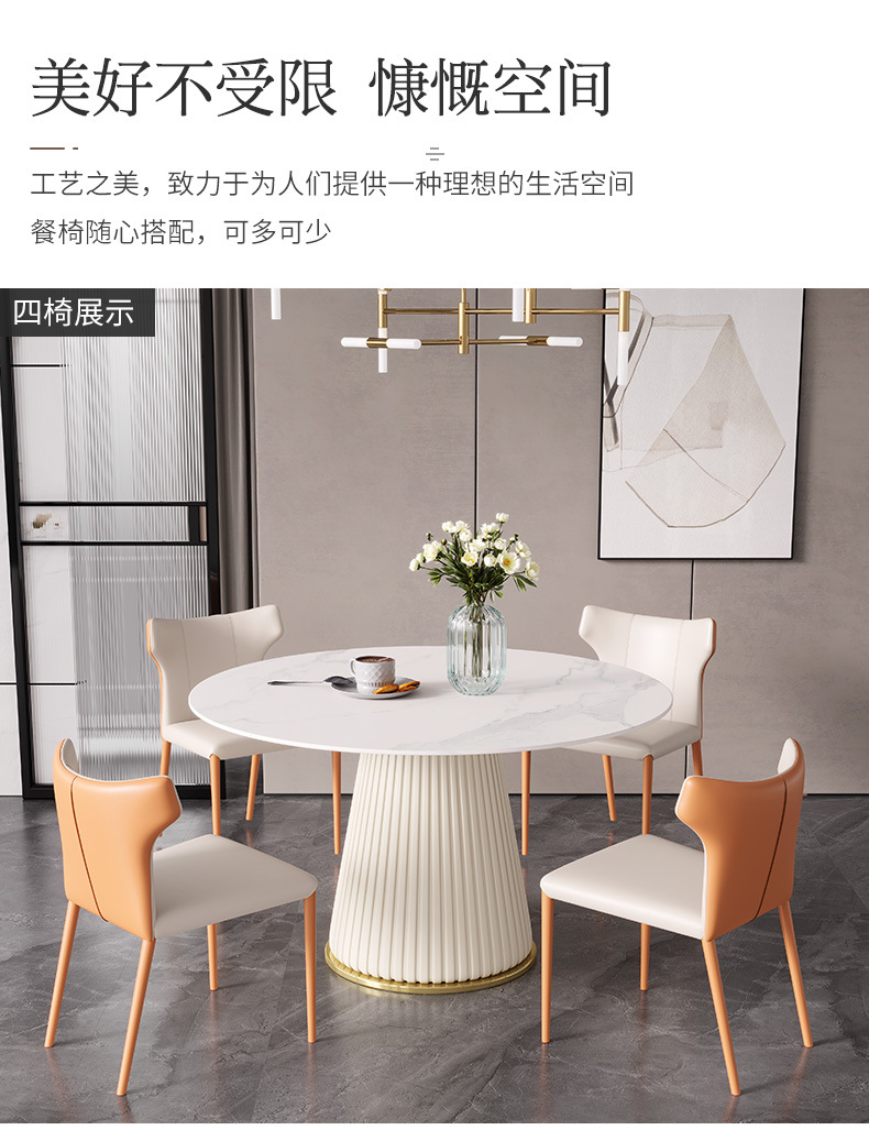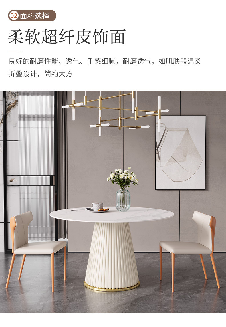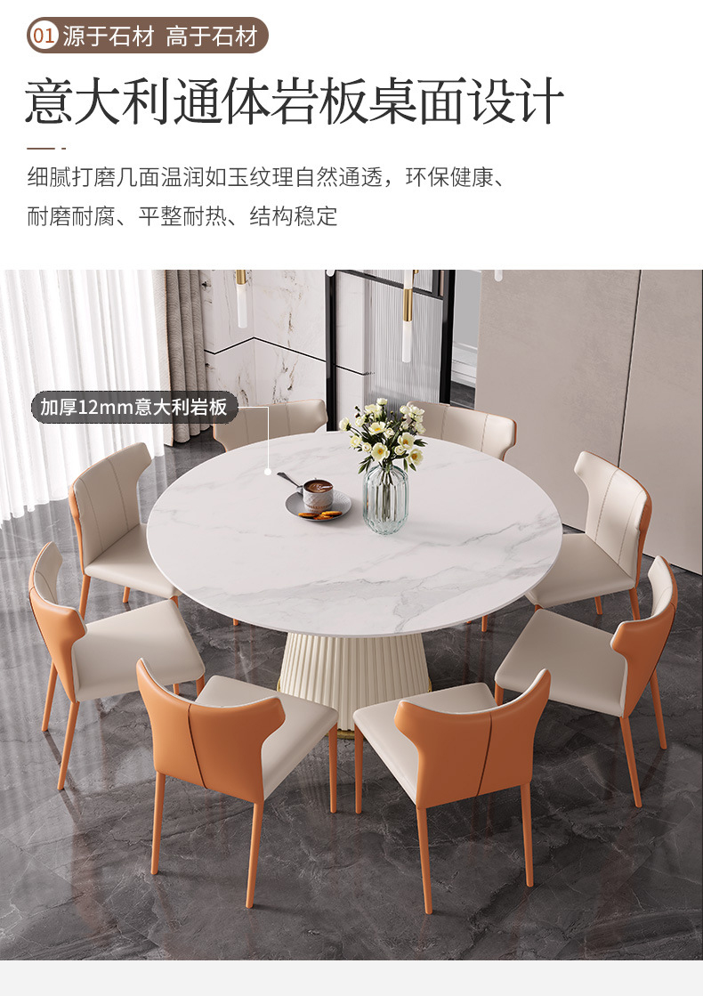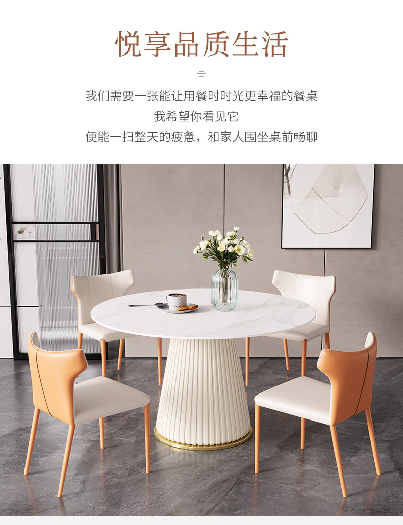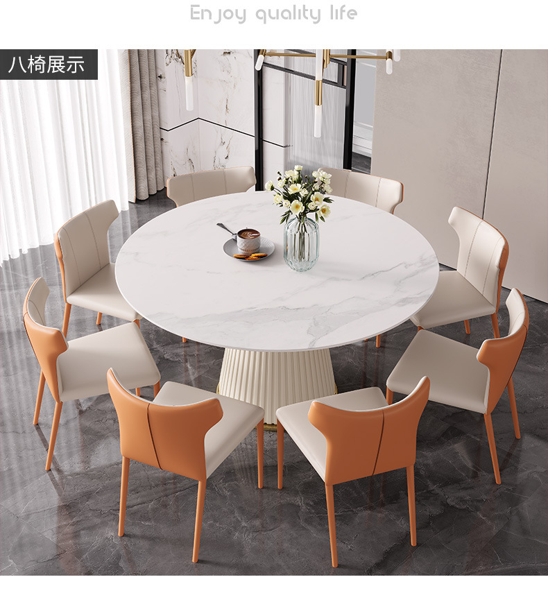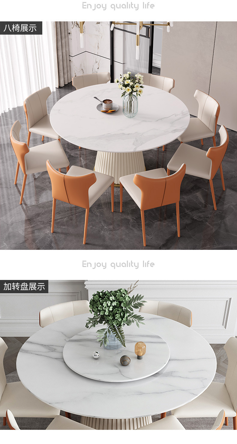 彩家居MYD-F2154-BS大理石超纤皮餐桌现代简约圆形餐桌带转盘轻奢饭桌家用