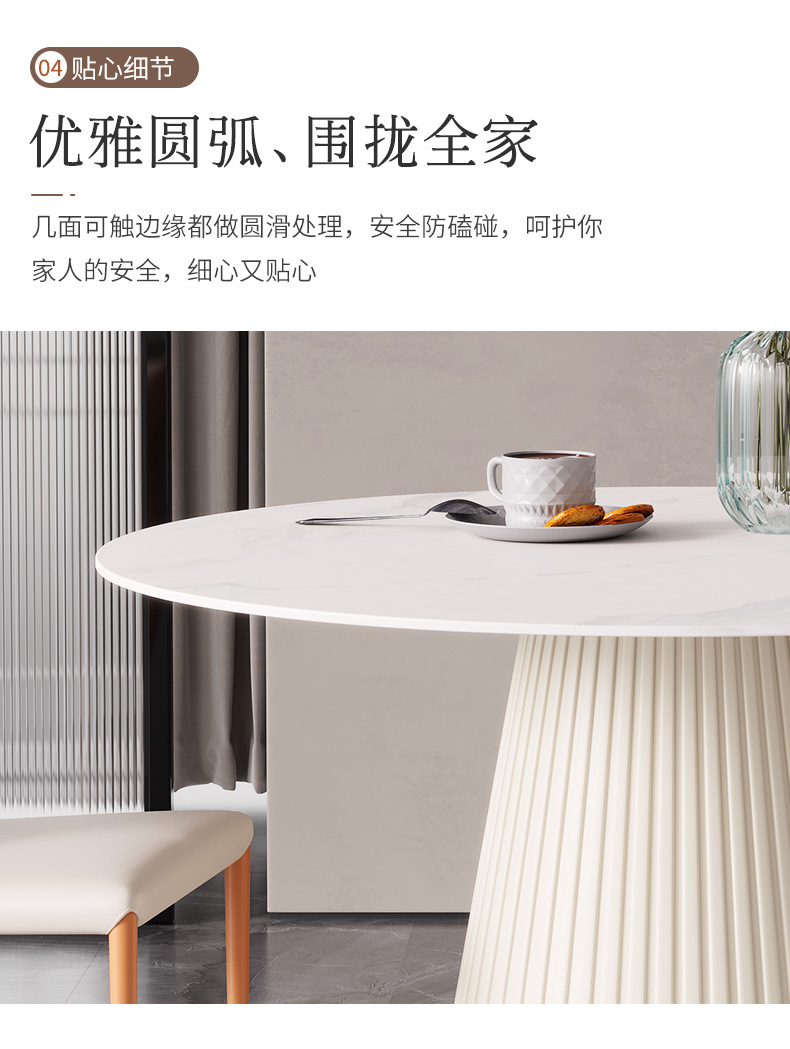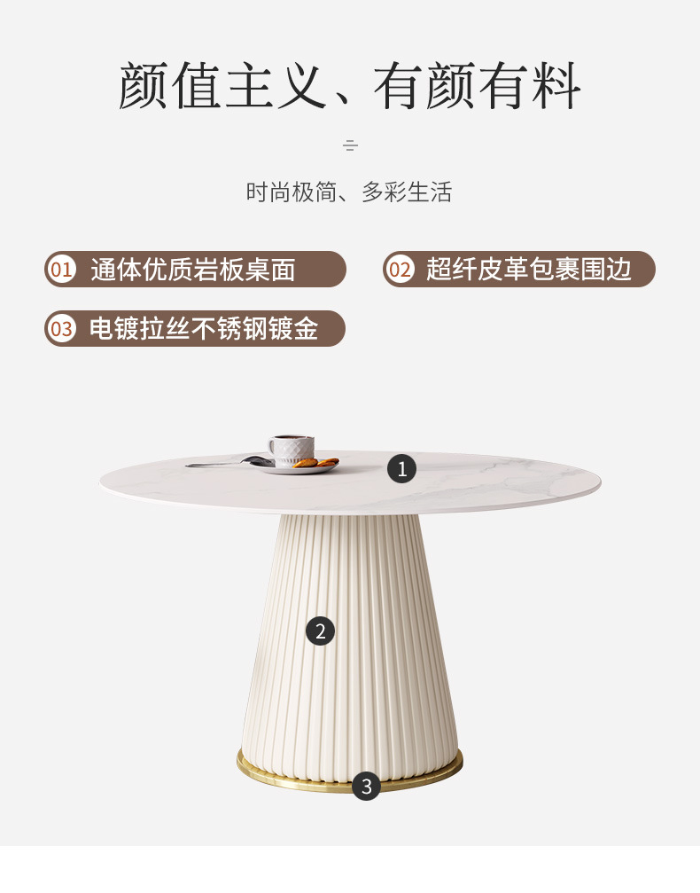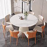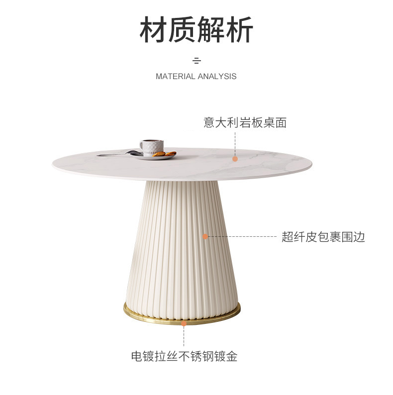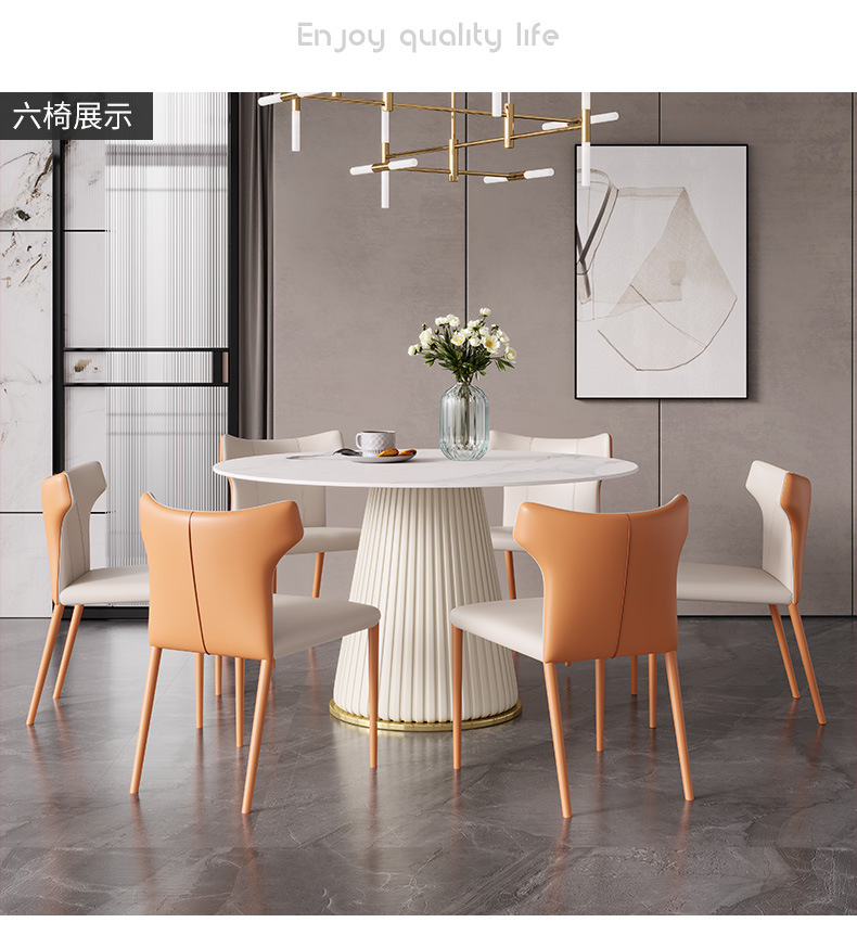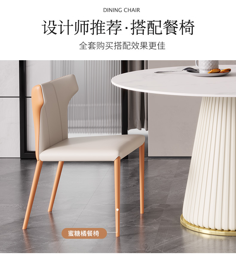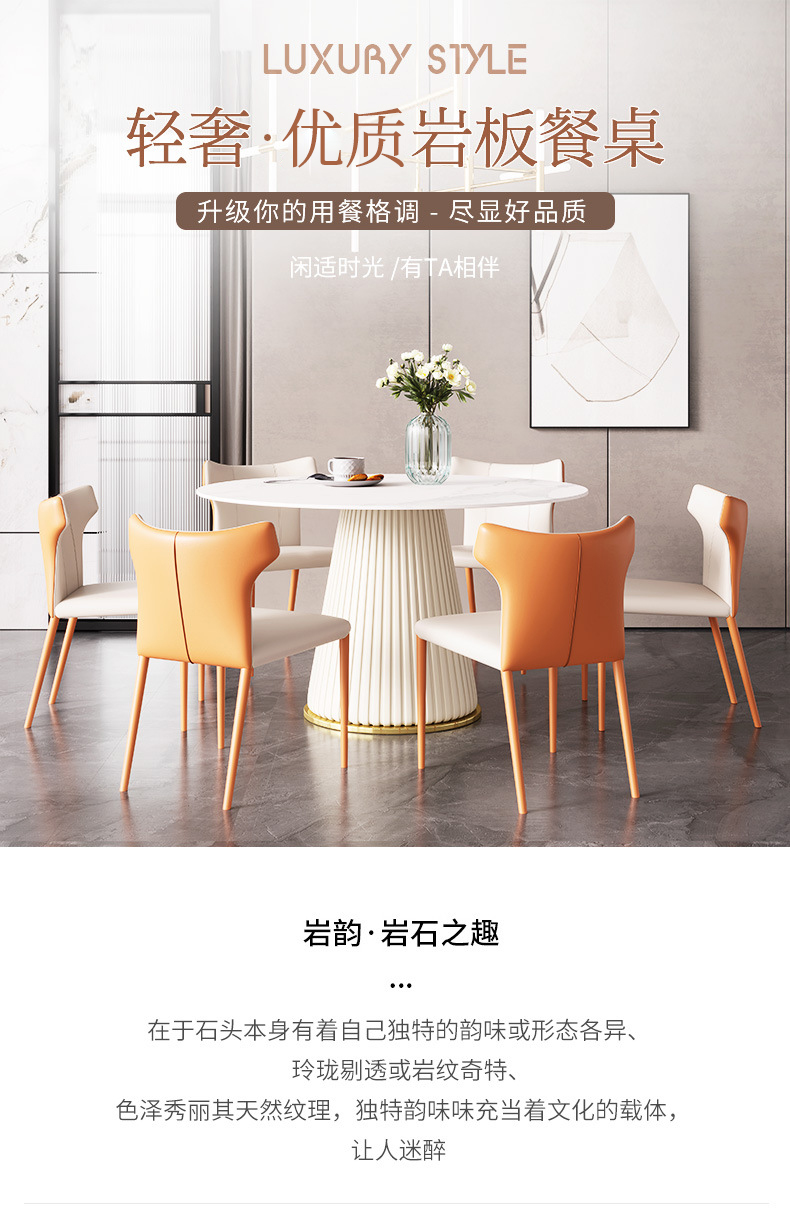 彩家居MYD-F2154-BS大理石超纤皮餐桌现代简约圆形餐桌带转盘轻奢饭桌家用