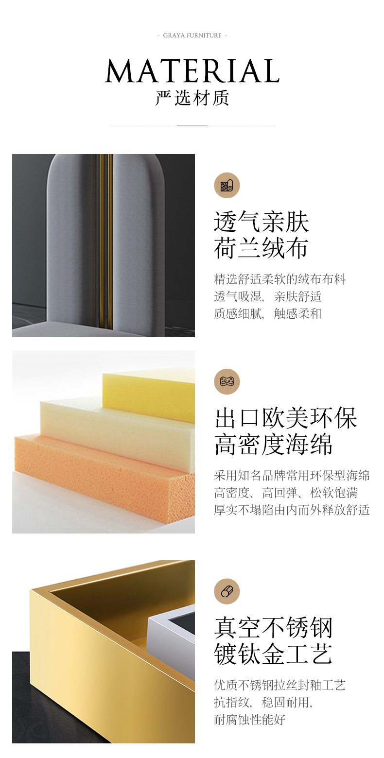 彩家居MYD-Z013A-BS优质荷兰绒布高回弹海绵实木脚不锈钢拉丝轻奢餐椅