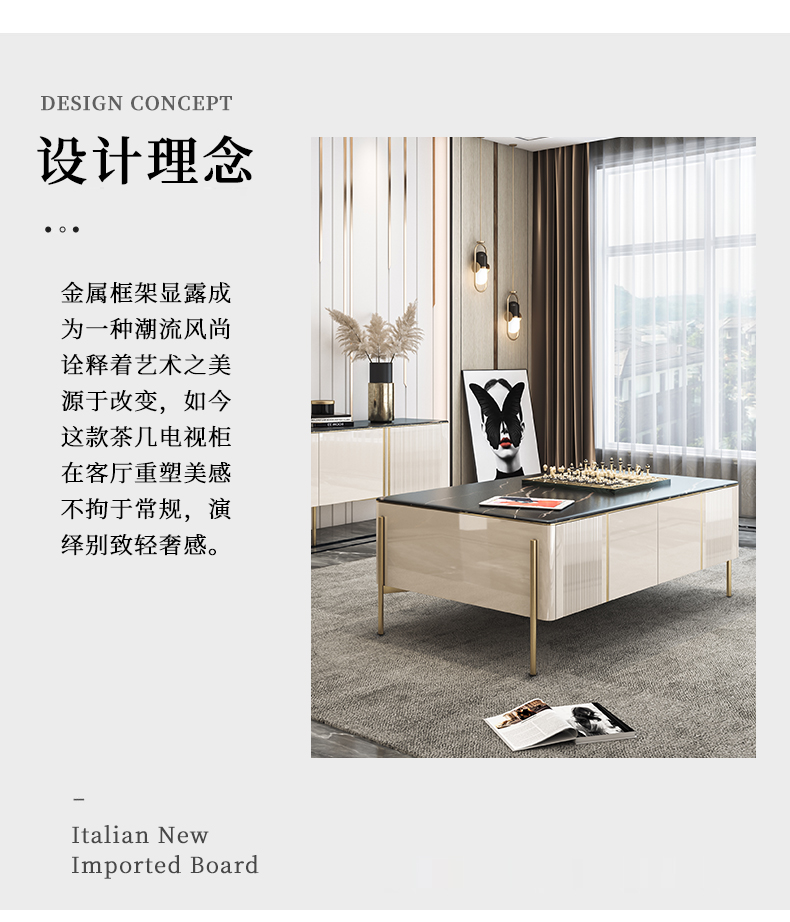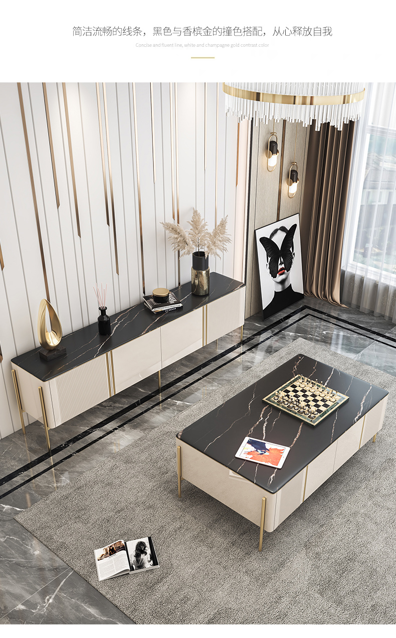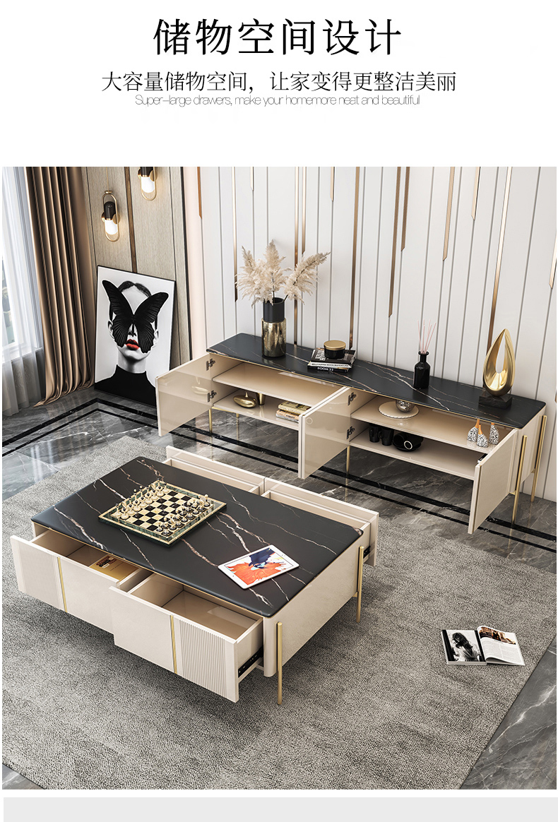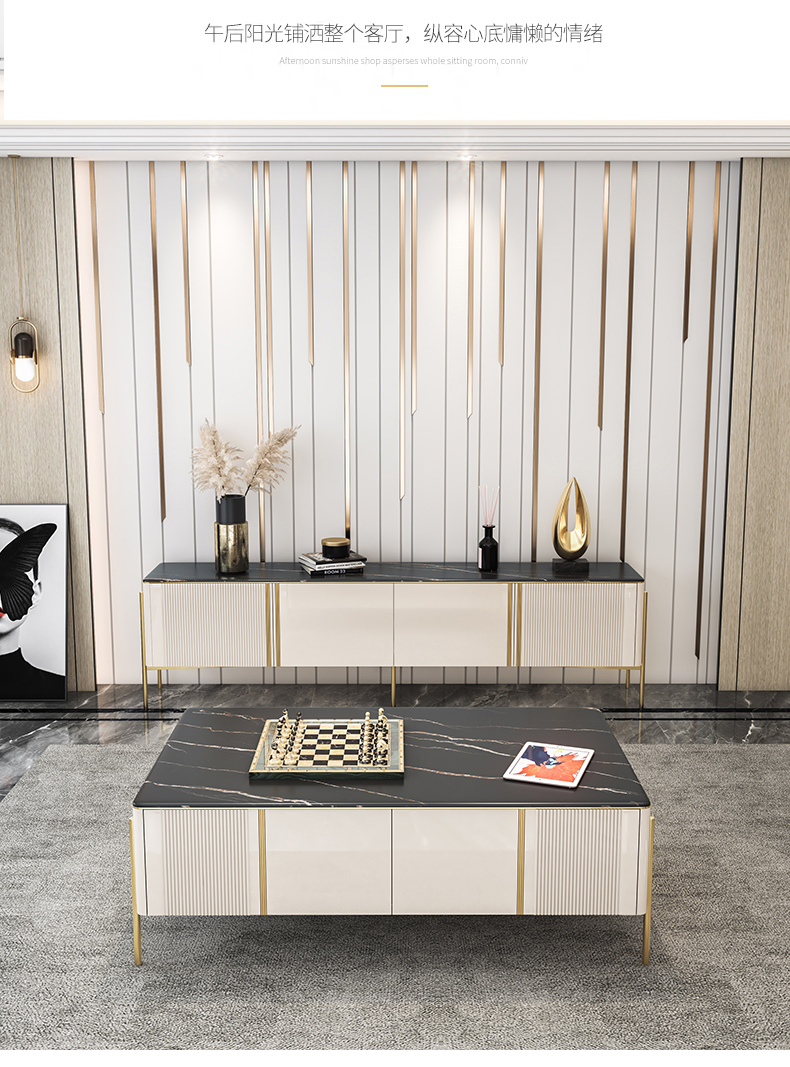 彩家居MYD-D202A-BS岩板茶几电视柜组合家用轻奢现代简约