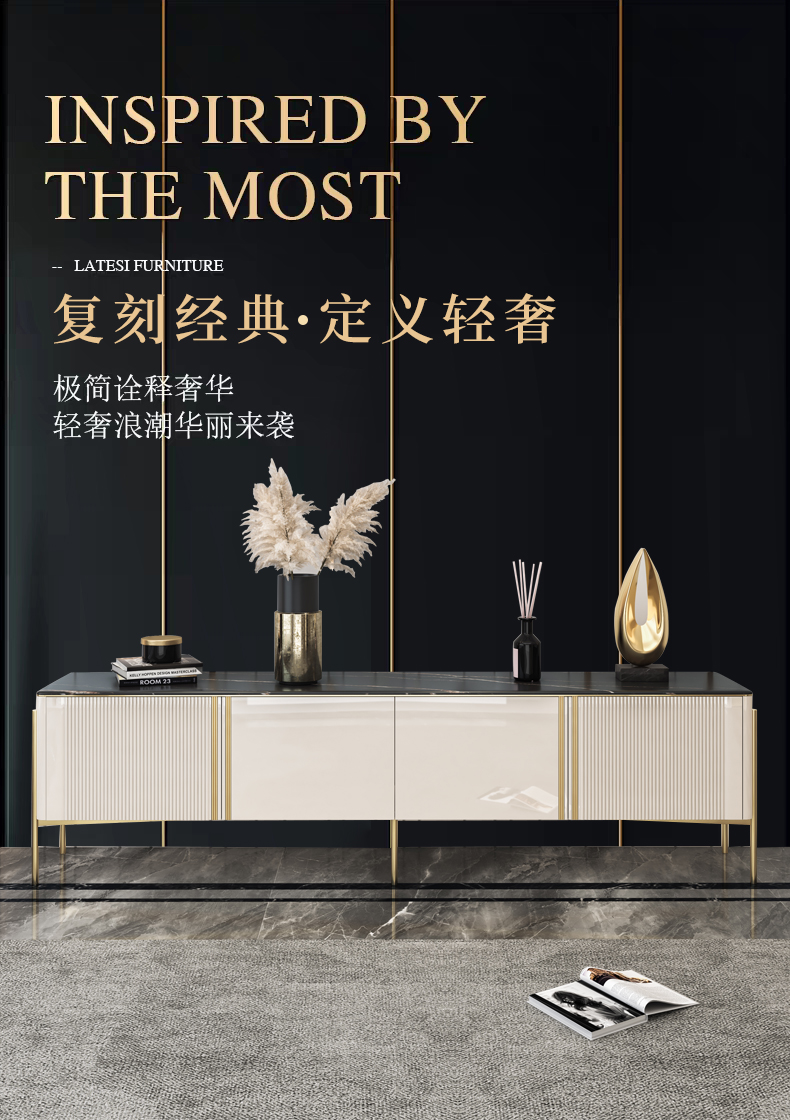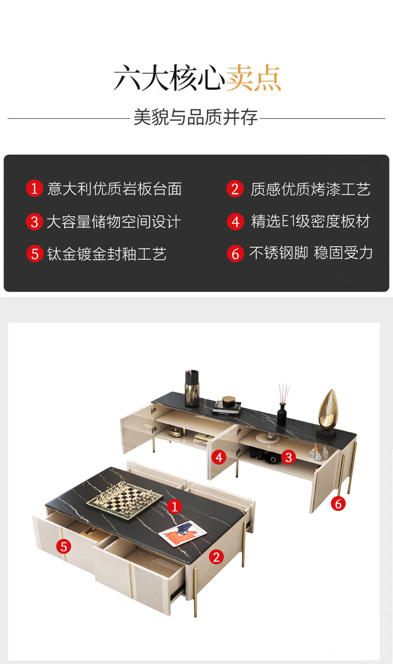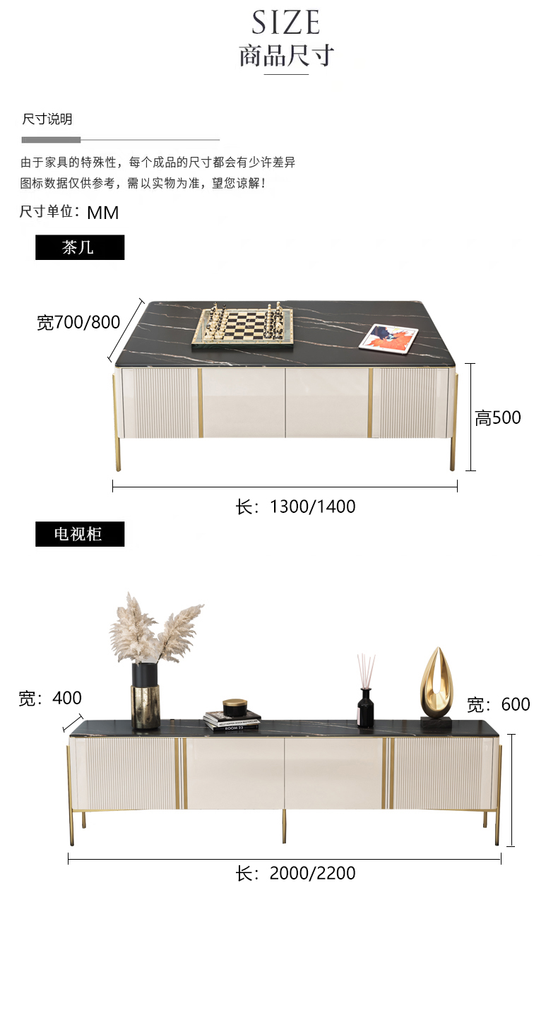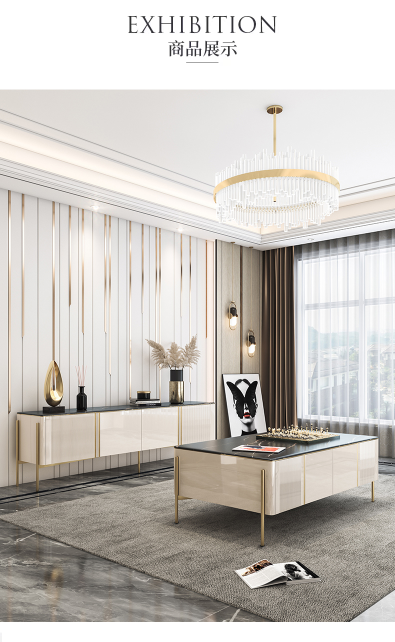 彩家居MYD-D202A-BS岩板茶几电视柜组合家用轻奢现代简约